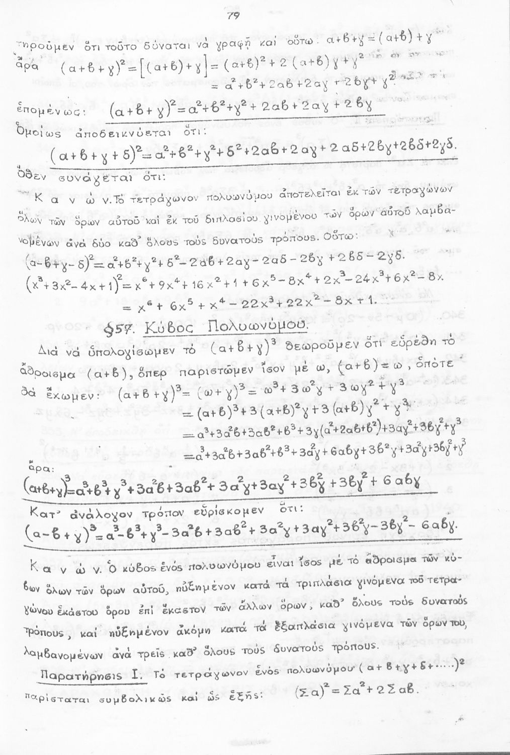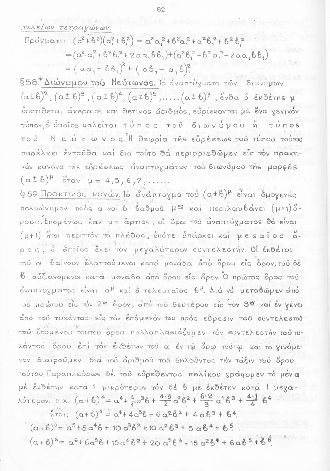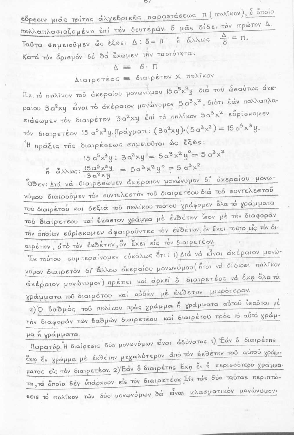 Μαθητικό βοήθημα Άλγεβρας για τους μαθητές των πρακτικών Λυκείων και τους υποψήφιους σχολών του Κράτους. Το βιβλίο περιέχει τις βασικές αλγεβρικές πράξεις, εξισώσεις πρώτου βαθμού, δεύτερου βαθμού και γραφικές