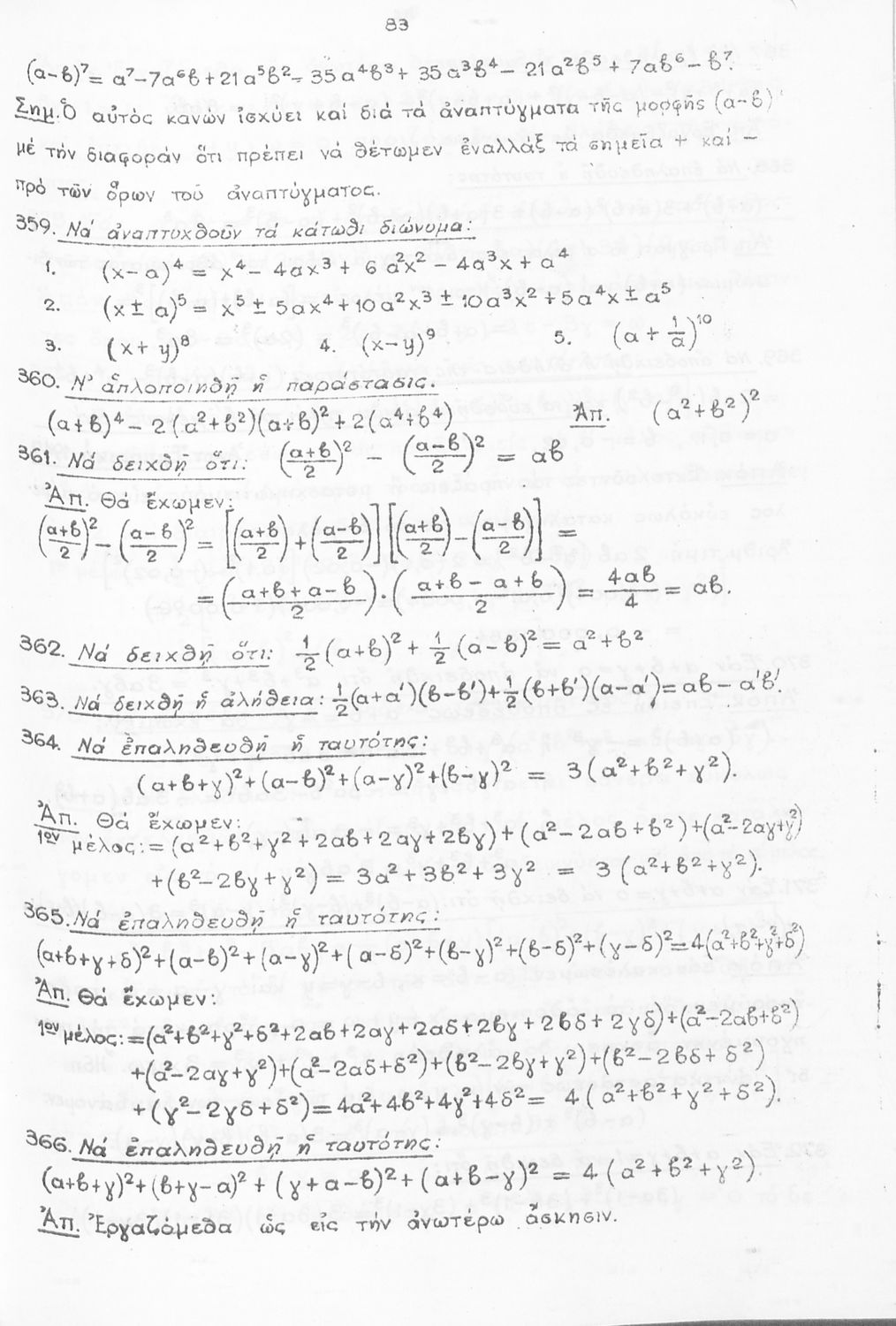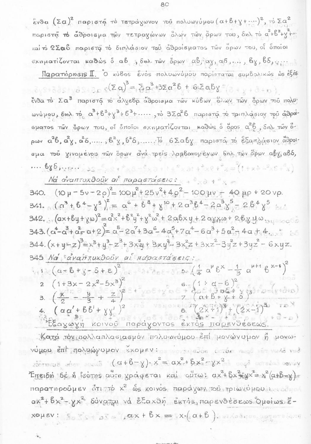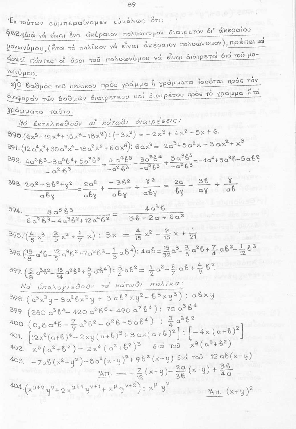 Μαθητικό βοήθημα για τα Κλασσικά Γυμνάσια και Πρακτικά Λύκεια που περιέχει θεωρία της άλγεβρας και ασκήσεις για εμπέδωση. Λανθασμένη αρίθμηση σελίδων.