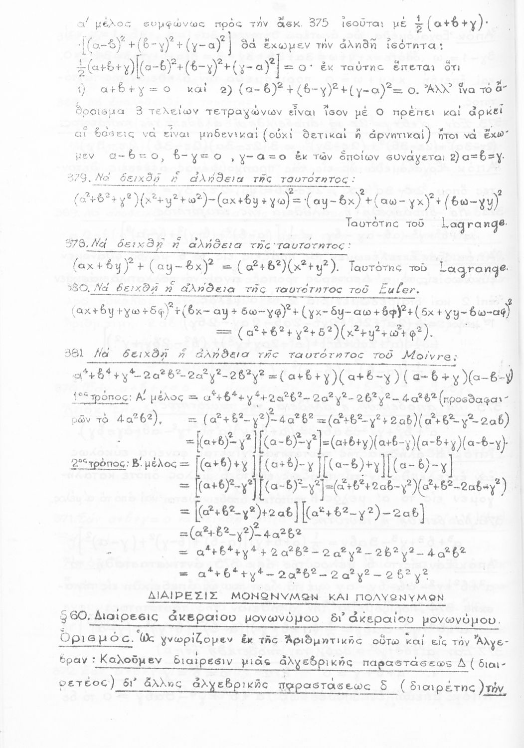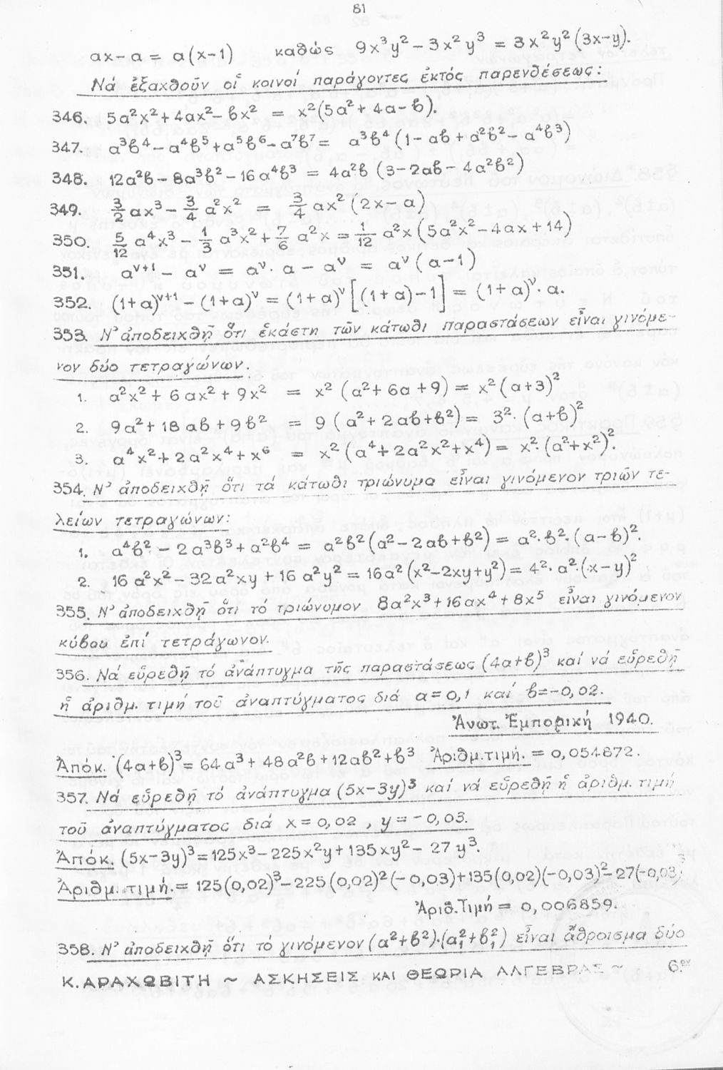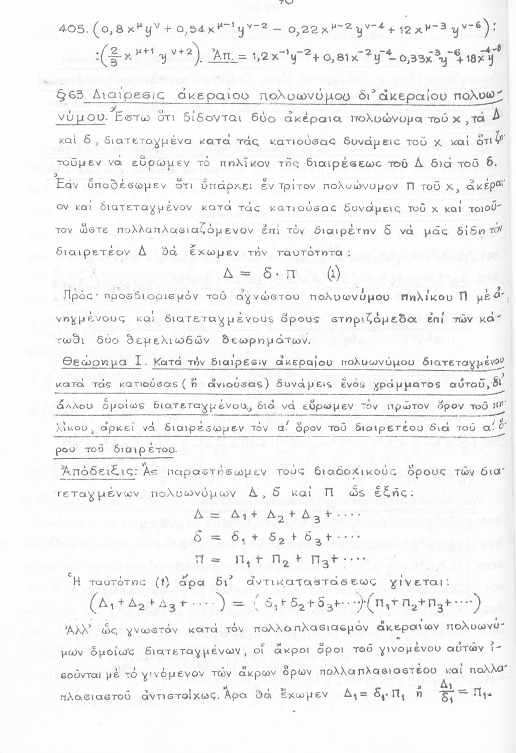 Ασκήσεις λελυμέναι και θεωρία άλγεβρας τόμος πρώτος προς χρήσιν των μαθητών των Γυμνασίων, πρακτικών λυκείων και των υποψηφίων των ανωτάτων σχολών του κράτους