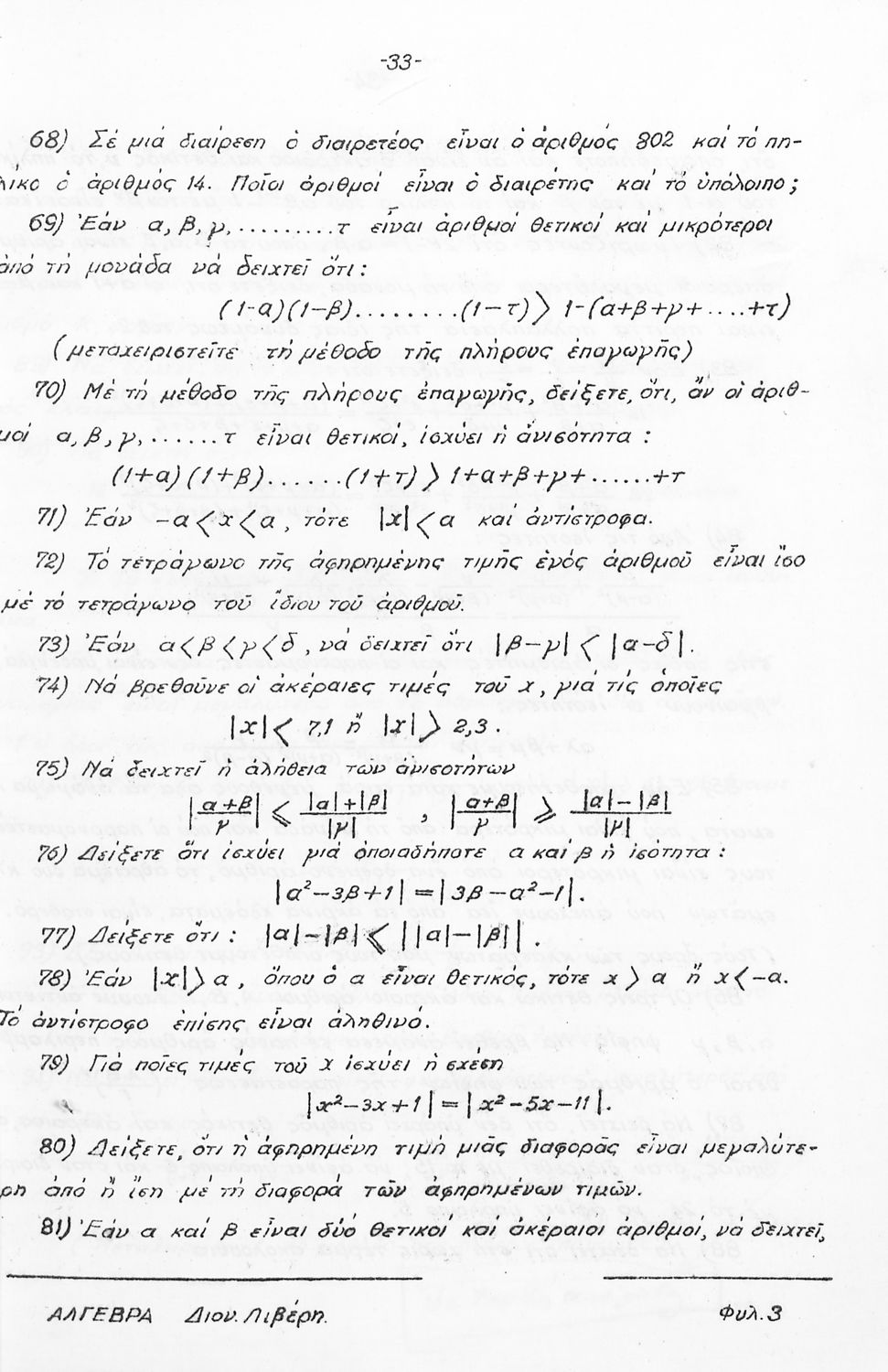Κωδικός αναγνώρισης: 03-20632661 Τίτλος: Μαθήματα Άλγεβρας για τους υποψήφιους του Ε. Μ. Πολυτεχνείου Συγγραφέας: Δ. Ι. Λιβέρης Μέγεθος και υπόστρωμα: Παιδαγωγικό βοήθημα, μαλακό εξώφυλλο, 224 σελίδες. |