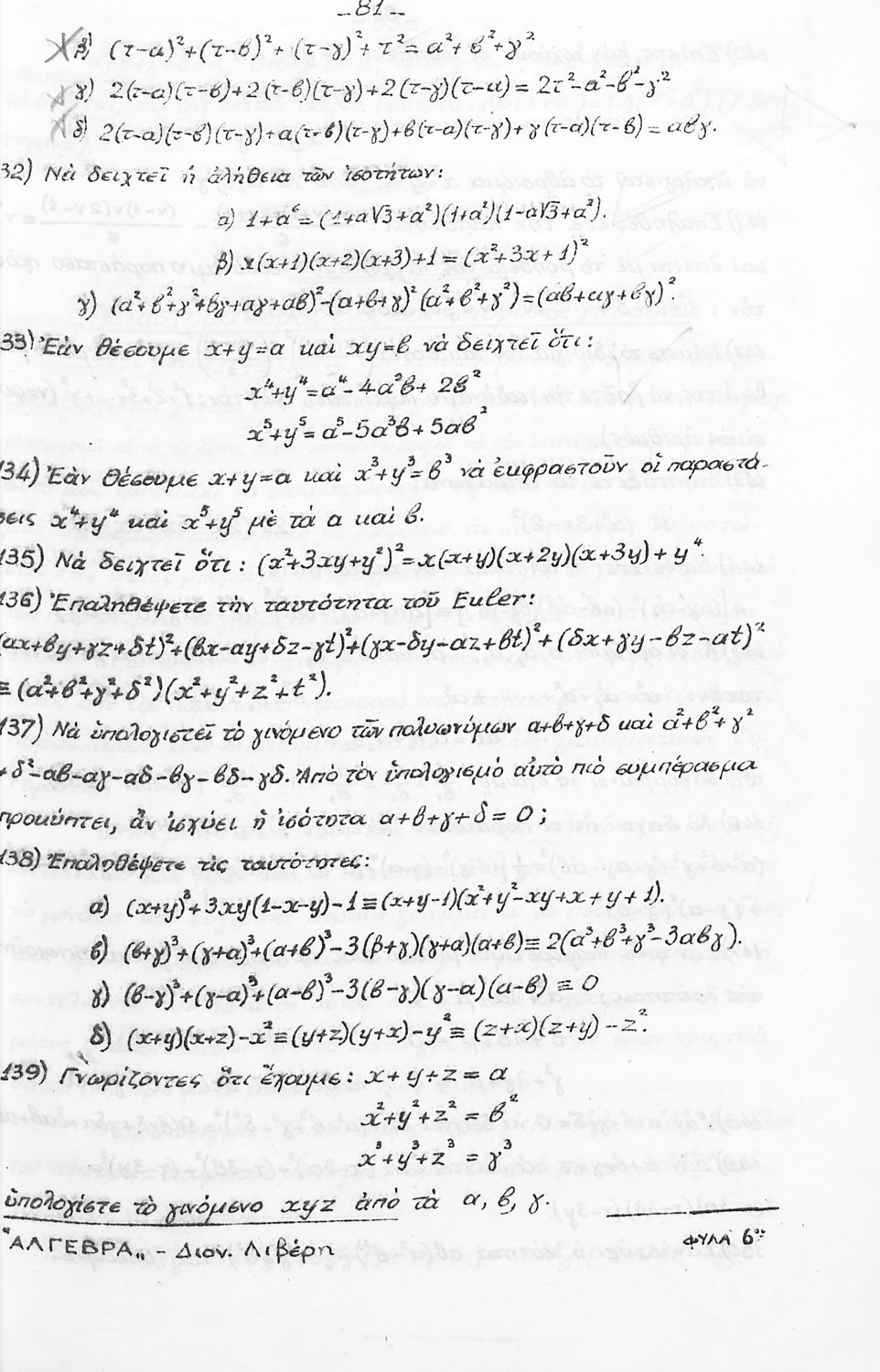 Κωδικός αναγνώρισης: 03-20632661 Τίτλος: Μαθήματα Άλγεβρας για τους υποψήφιους του Ε. Μ. Πολυτεχνείου Συγγραφέας: Δ. Ι. Λιβέρης Μέγεθος και υπόστρωμα: Παιδαγωγικό βοήθημα, μαλακό εξώφυλλο, 224 σελίδες. |