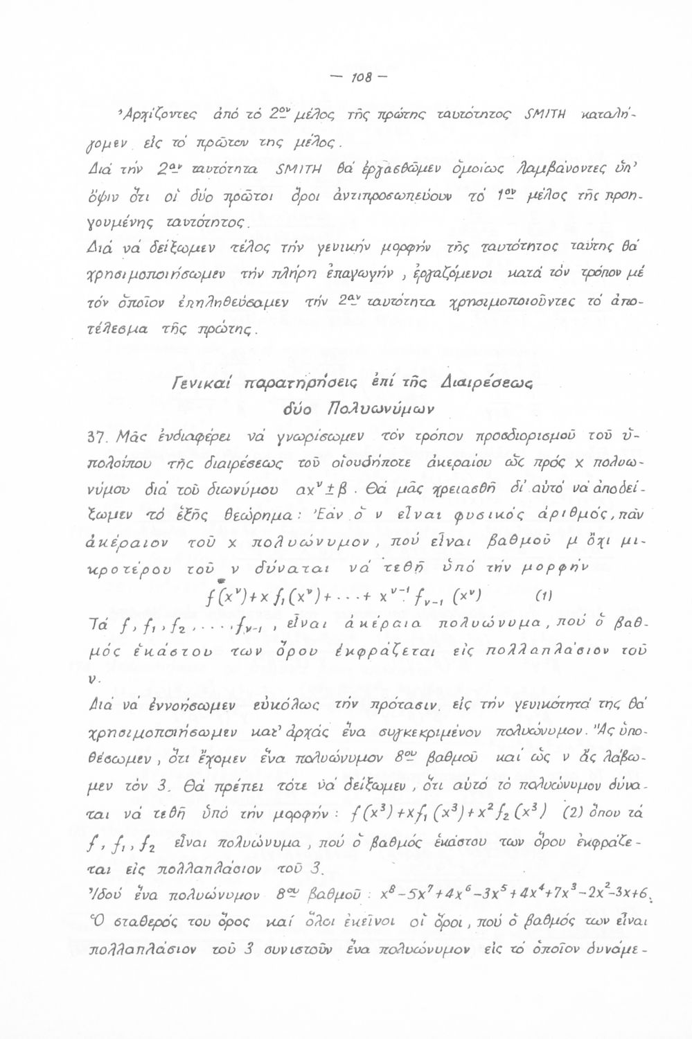 Σχολικό εγχειρίδιο Μαθηματικών Γυμνασίου που είναι χωρισμένο σε θεωρήματα, παραδείγματα και ασκήσεις και περιλαμβάνει στοιχεία Ανώτερης Άλγεβρας και Μαθηματικής Ανάλυσης.