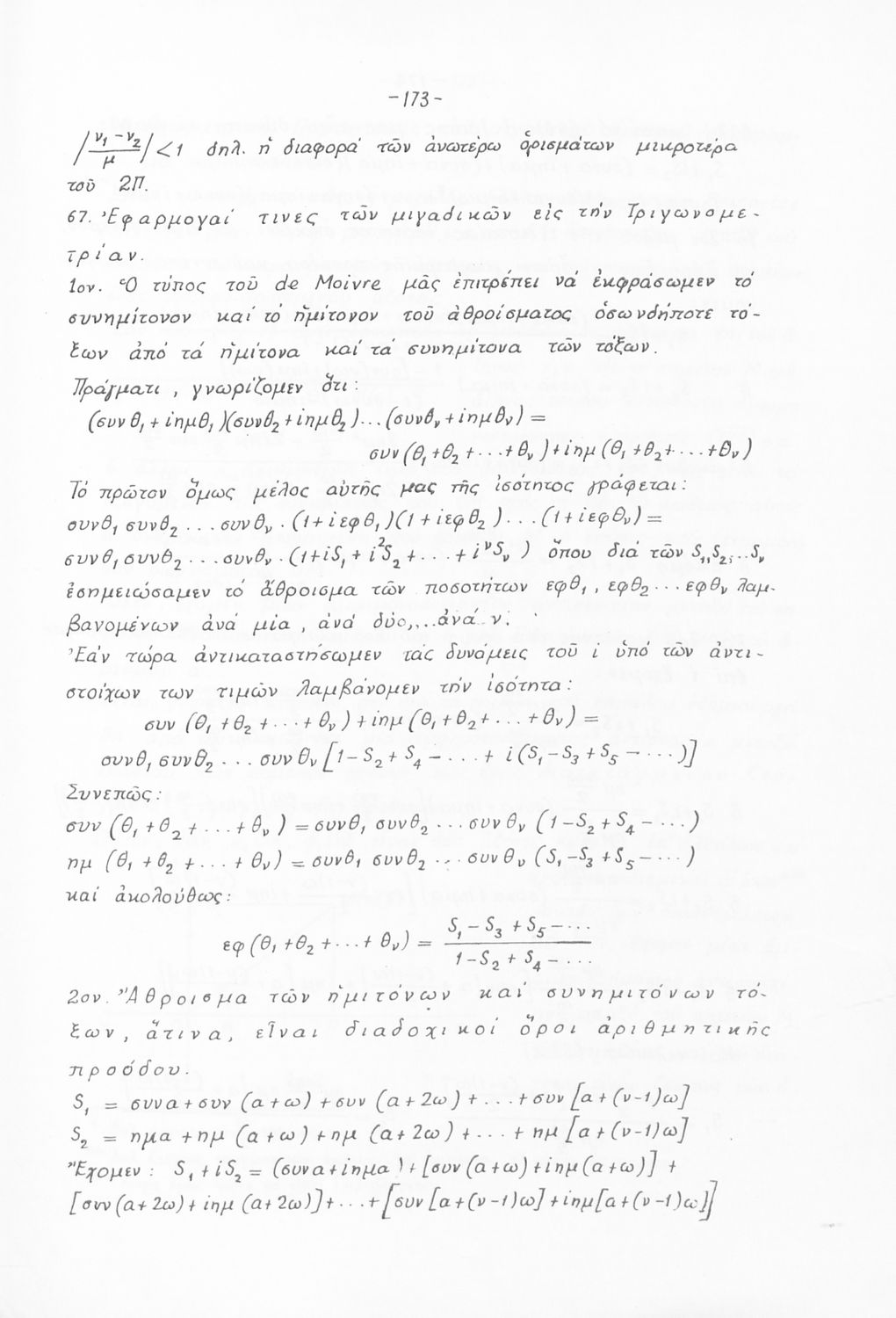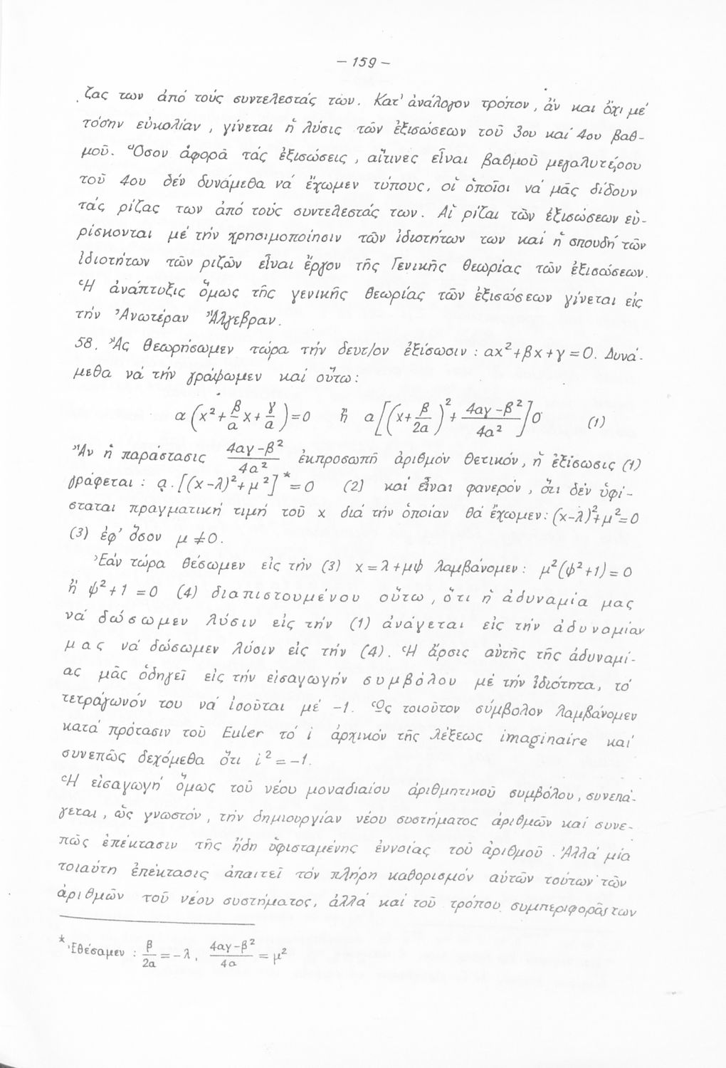 Σχολικό εγχειρίδιο Μαθηματικών Γυμνασίου που είναι χωρισμένο σε θεωρήματα, παραδείγματα και ασκήσεις και περιλαμβάνει στοιχεία Ανώτερης Άλγεβρας και Μαθηματικής Ανάλυσης.