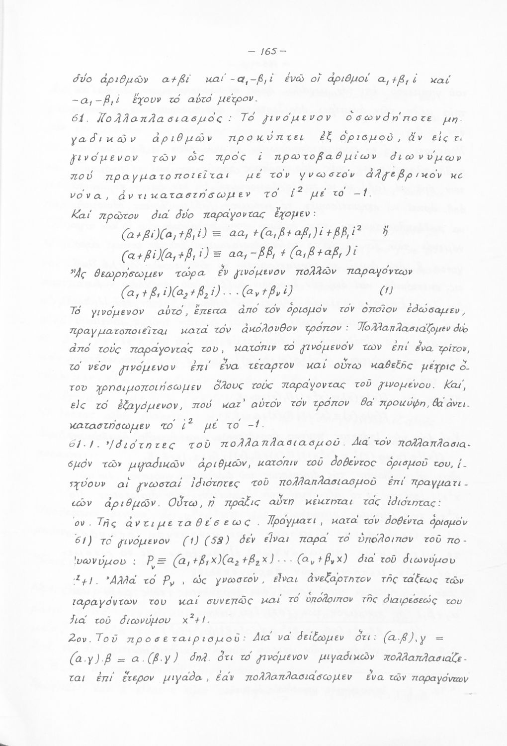 Παιδαγωγικό βοήθημα Μαθηματικών για την Δευτεροβάθμια Εκπαίδευση. Το βιβλίο είναι παιδαγωγικό βοήθημα και αποτελεί επιμορφωτικό υλικό για τους εκπαιδευτικούς. Είναι χωρισμένο σε τρία μέρη. Αρχίζει με τους πραγματικούς αριθμούς, συνεχίζει στις αλγεβρικές παραστάσεις και ολοκληρώνει με τους ασύμμετρους και μιγαδικούς αριθμούς.