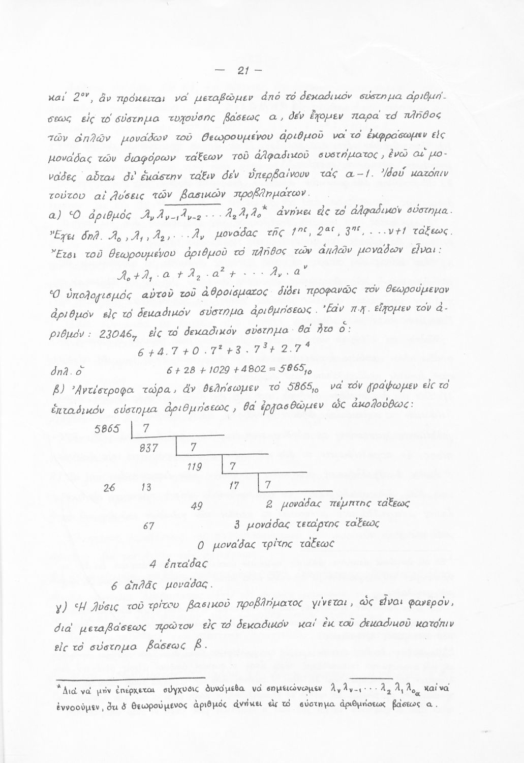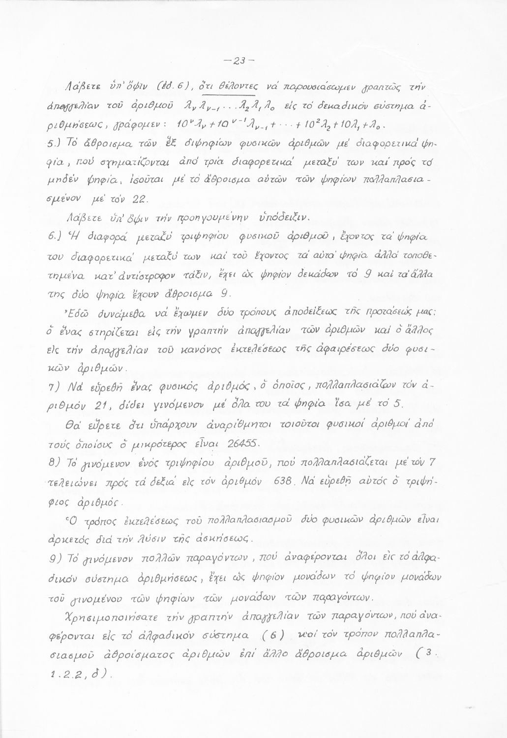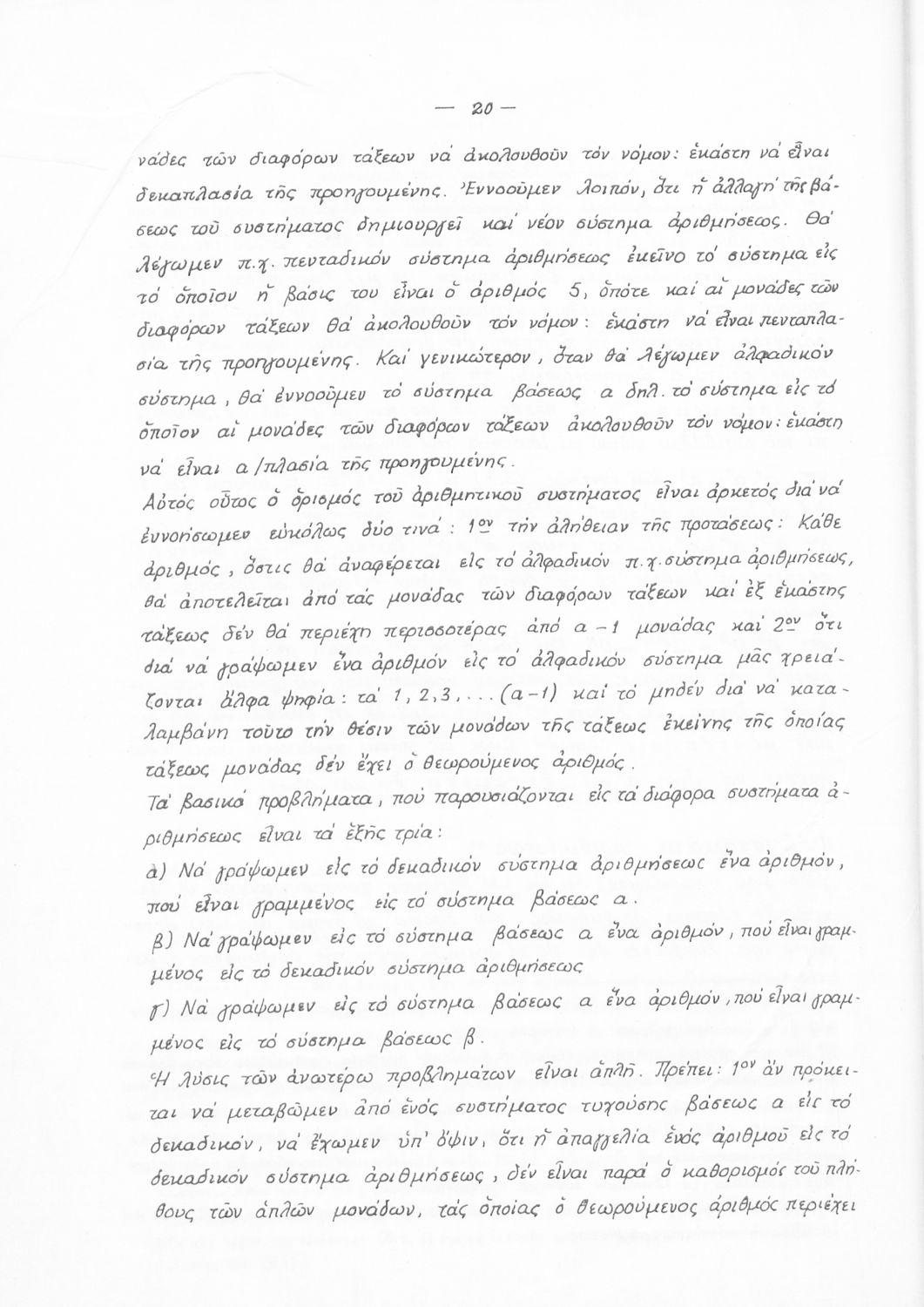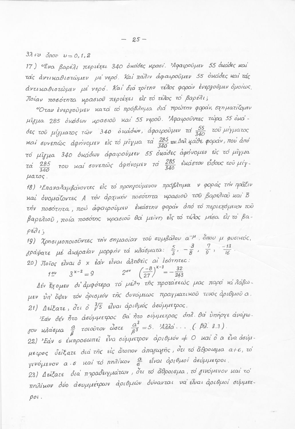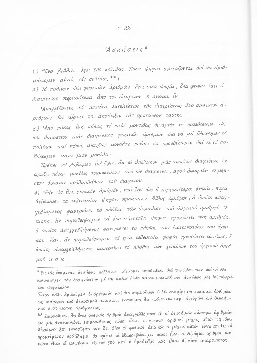 Παιδαγωγικό βοήθημα Μαθηματικών για την Δευτεροβάθμια Εκπαίδευση. Το βιβλίο είναι παιδαγωγικό βοήθημα και αποτελεί επιμορφωτικό υλικό για τους εκπαιδευτικούς. Είναι χωρισμένο σε τρία μέρη. Αρχίζει με τους πραγματικούς αριθμούς, συνεχίζει στις αλγεβρικές παραστάσεις και ολοκληρώνει με τους ασύμμετρους και μιγαδικούς αριθμούς.