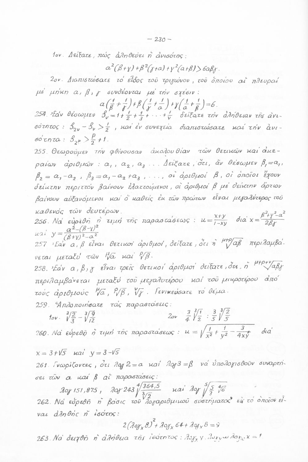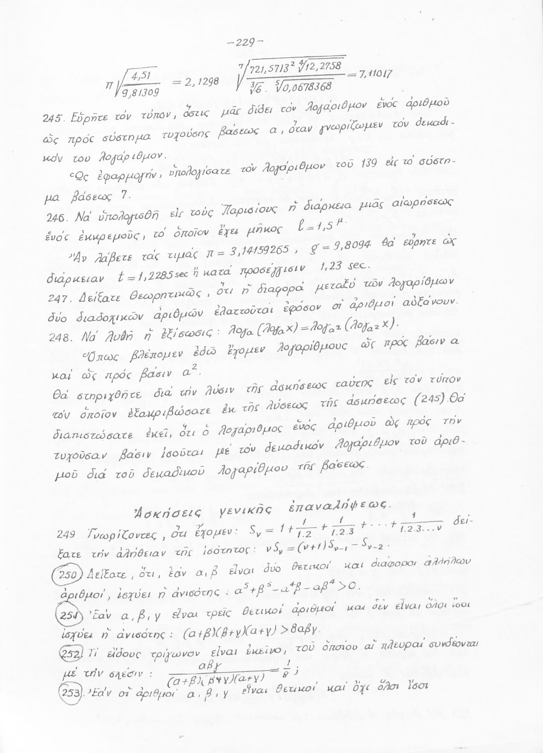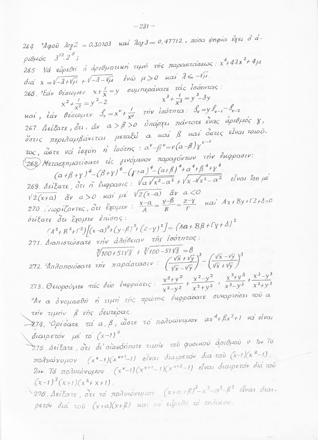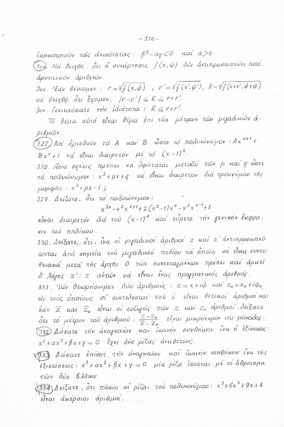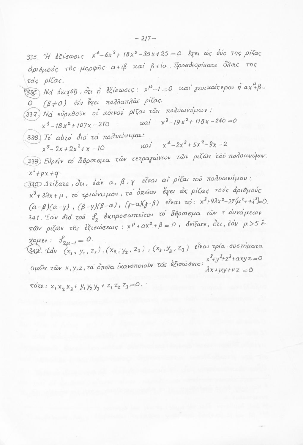 Σχολικό εγχειρίδιο Μαθηματικών Γυμνασίου που είναι χωρισμένο σε θεωρήματα, παραδείγματα και ασκήσεις και περιλαμβάνει στοιχεία Ανώτερης Άλγεβρας και Μαθηματικής Ανάλυσης.