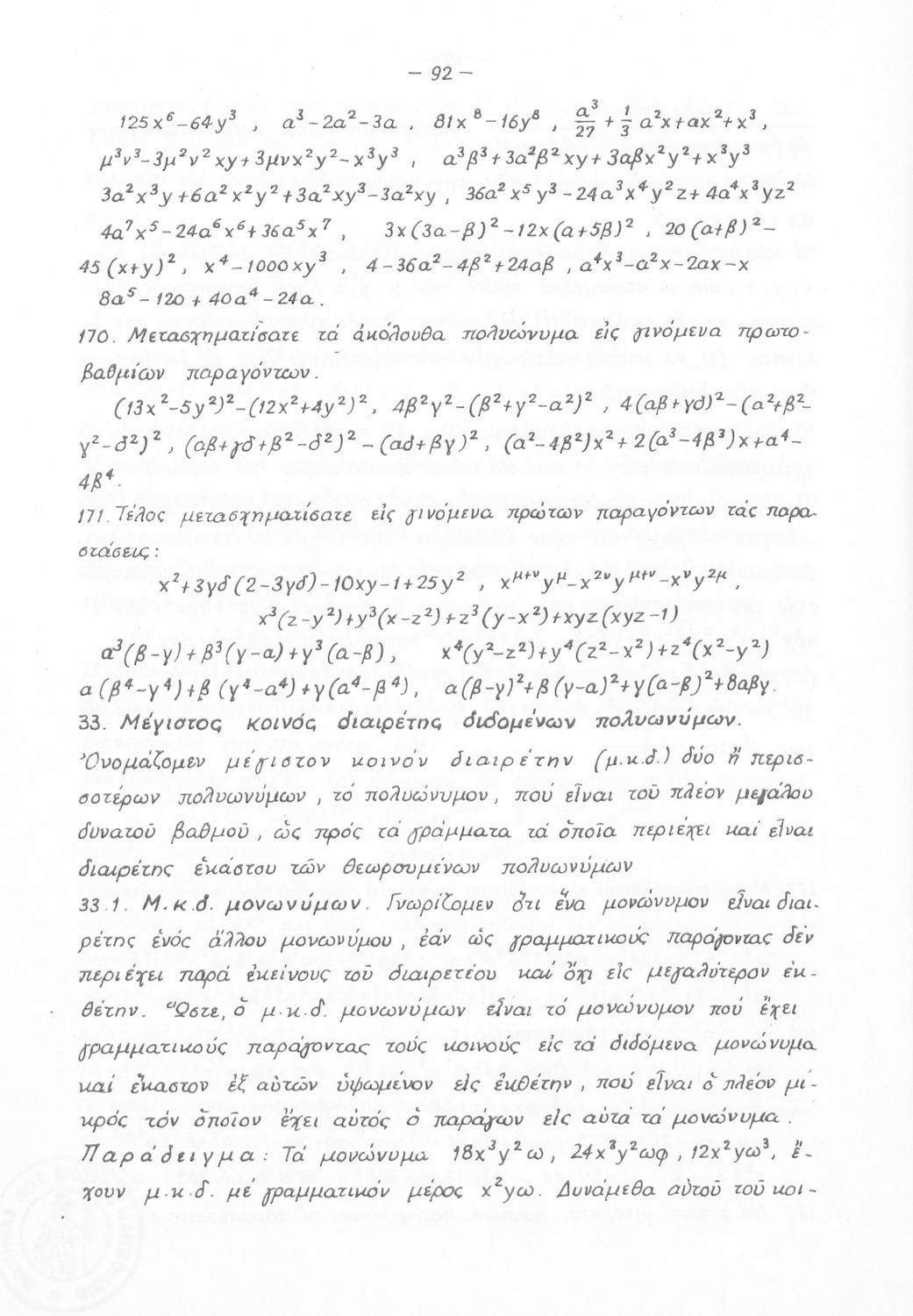 Σχολικό εγχειρίδιο Μαθηματικών Γυμνασίου που είναι χωρισμένο σε θεωρήματα, παραδείγματα και ασκήσεις και περιλαμβάνει στοιχεία Ανώτερης Άλγεβρας και Μαθηματικής Ανάλυσης.