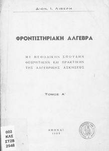Κωδικός αναγνώρισης: 03-20632662 Τίτλος: Φροντιστηριακή Άλγεβρα με μεθοδική σπουδήν θεωρητικήν σπουδήν θεωρητικήν και πρακτικήν της αλγεβρικής ασκήσεως Συγγραφέας: Διονύσης Ι. Λιβέρης Μέγεθος και υπόστρωμα: Παιδαγωγικό βοήθημα, μαλακό εξώφυλλο, 236 σελίδες. |