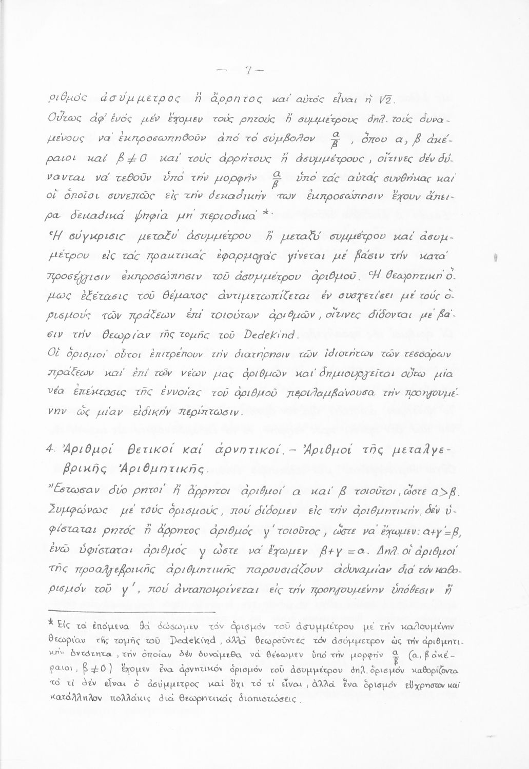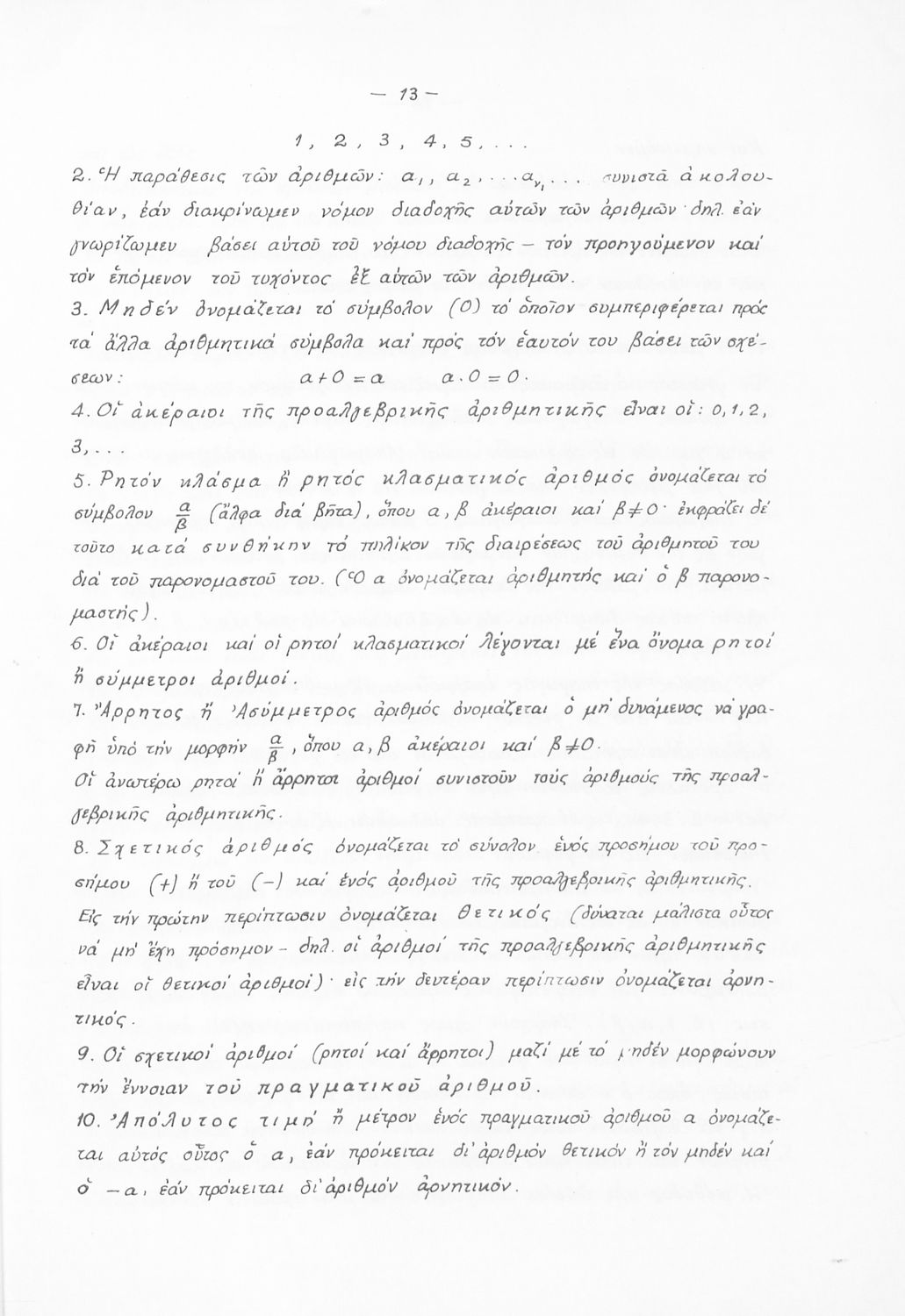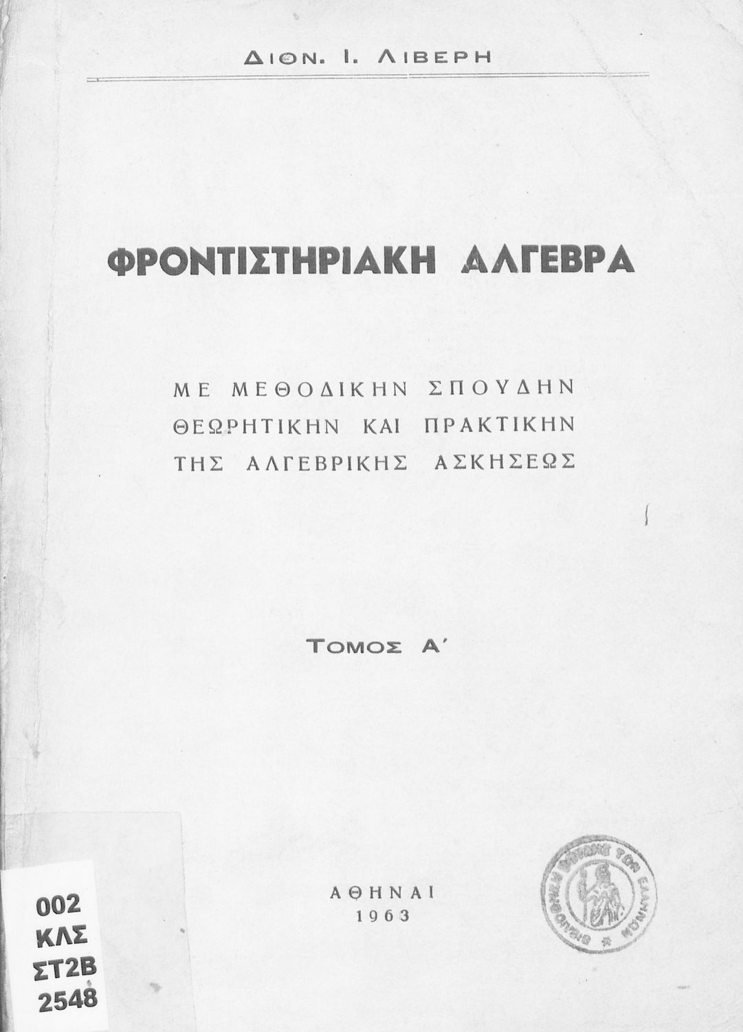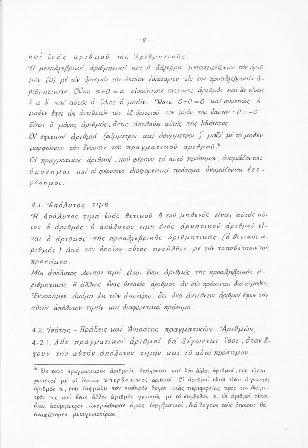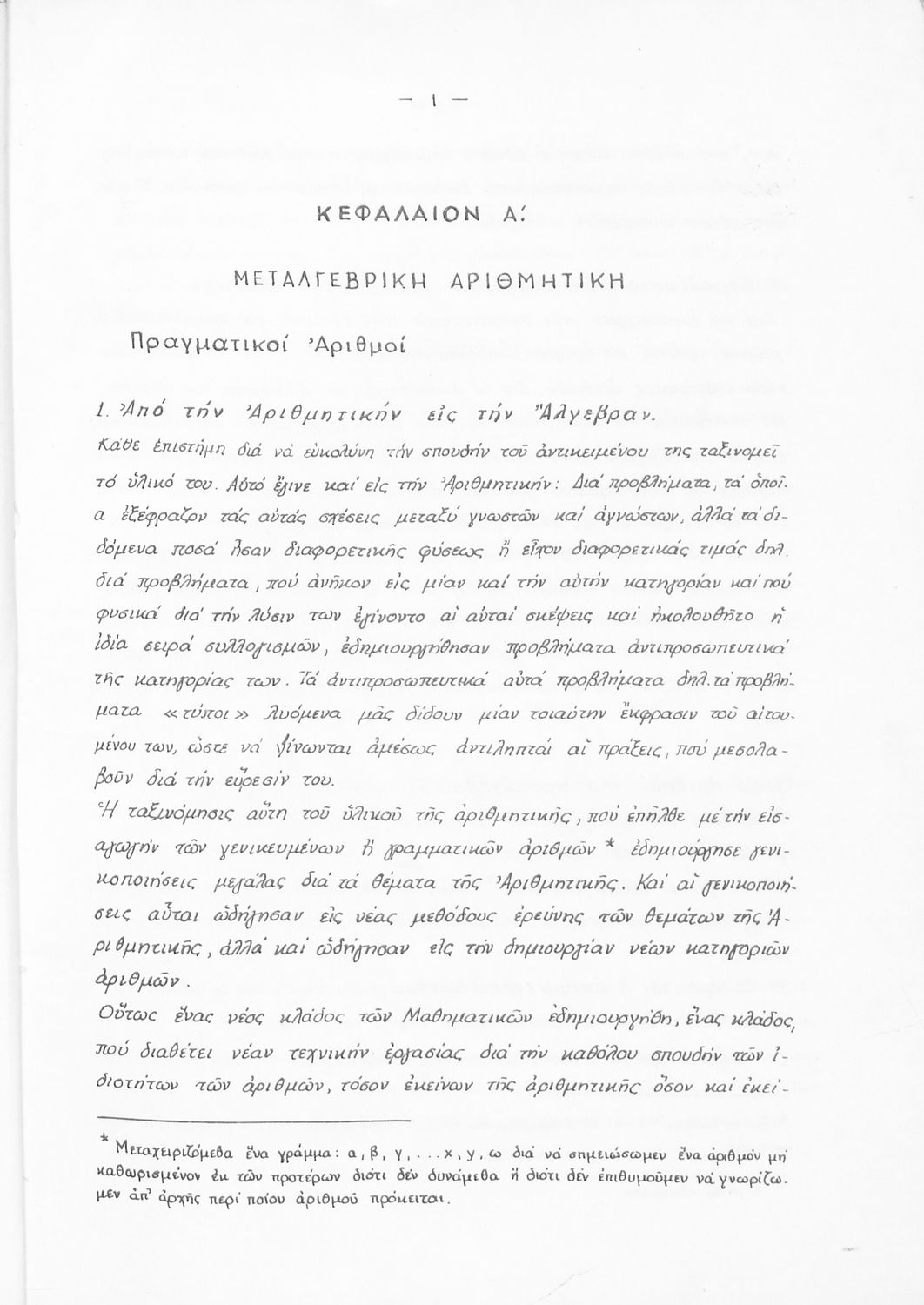 Παιδαγωγικό βοήθημα Μαθηματικών για την Δευτεροβάθμια Εκπαίδευση. Το βιβλίο είναι παιδαγωγικό βοήθημα και αποτελεί επιμορφωτικό υλικό για τους εκπαιδευτικούς. Είναι χωρισμένο σε τρία μέρη. Αρχίζει με τους πραγματικούς αριθμούς, συνεχίζει στις αλγεβρικές παραστάσεις και ολοκληρώνει με τους ασύμμετρους και μιγαδικούς αριθμούς.