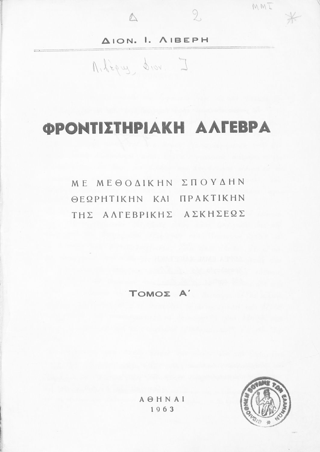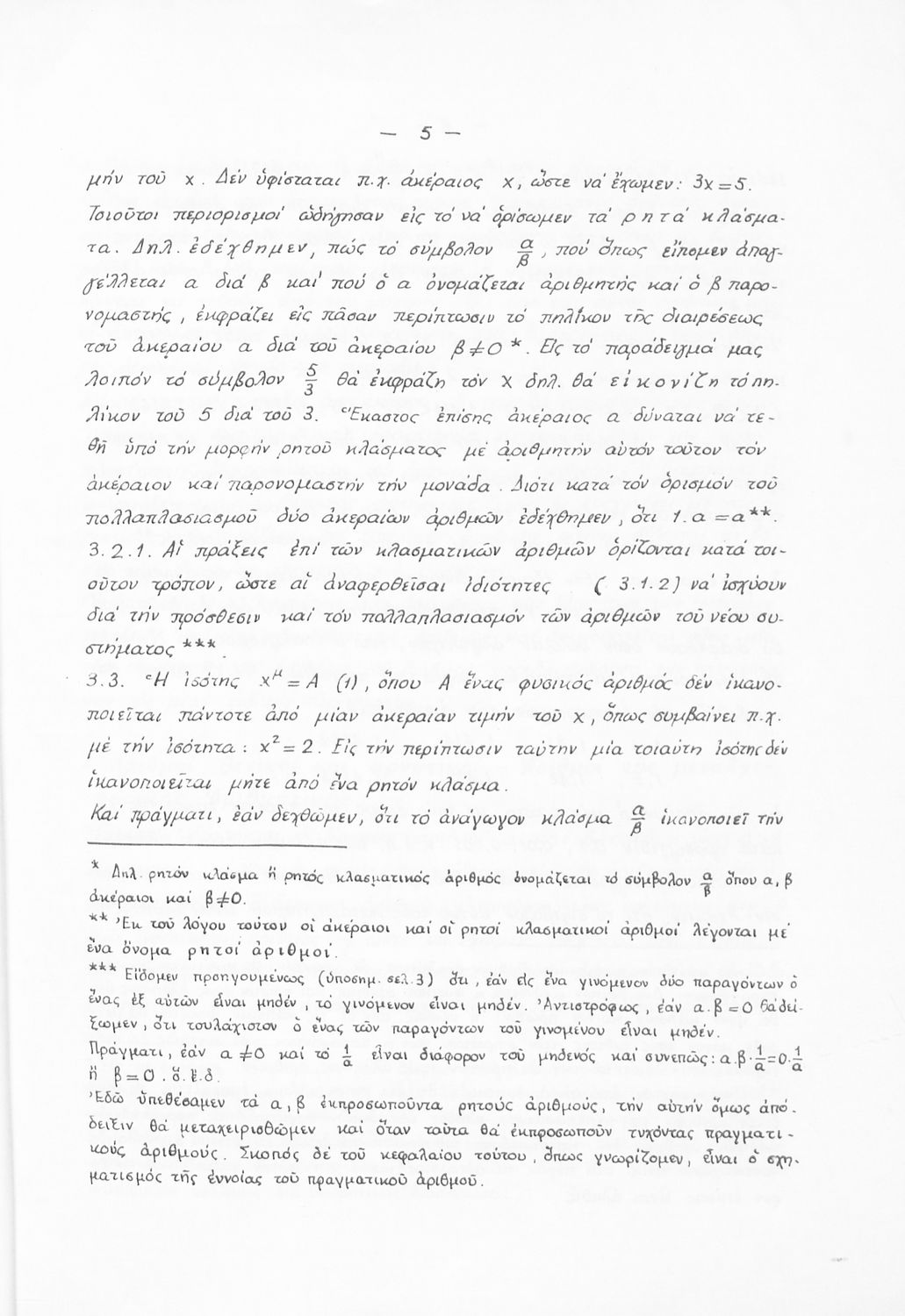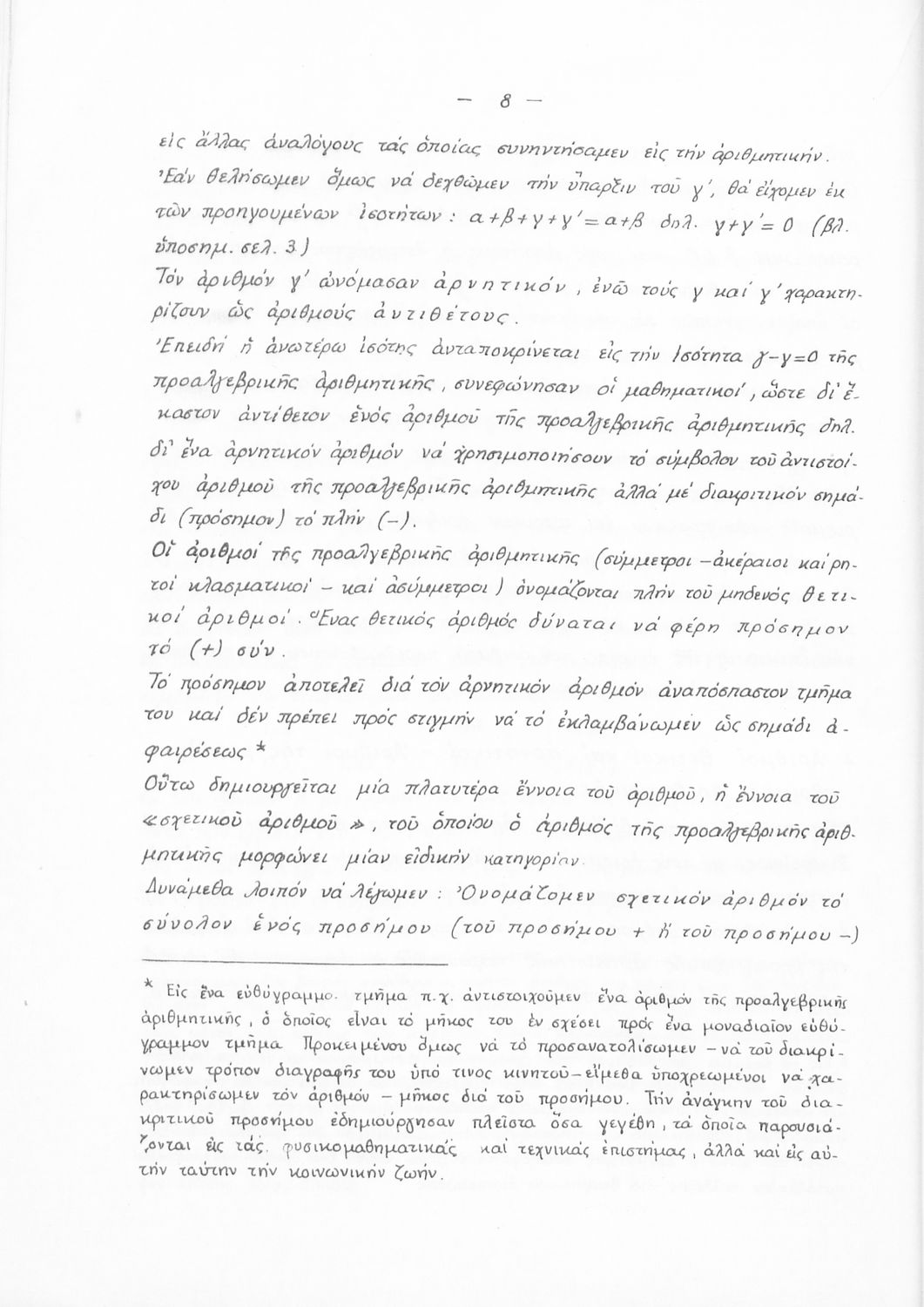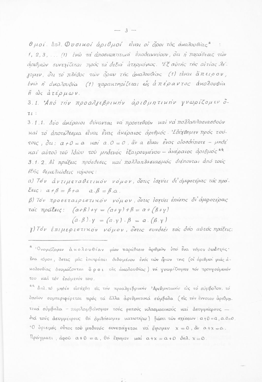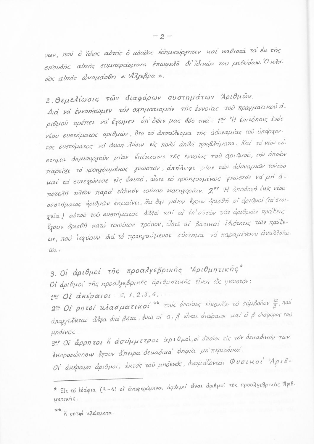 Παιδαγωγικό βοήθημα Μαθηματικών για την Δευτεροβάθμια Εκπαίδευση. Το βιβλίο είναι παιδαγωγικό βοήθημα και αποτελεί επιμορφωτικό υλικό για τους εκπαιδευτικούς. Είναι χωρισμένο σε τρία μέρη. Αρχίζει με τους πραγματικούς αριθμούς, συνεχίζει στις αλγεβρικές παραστάσεις και ολοκληρώνει με τους ασύμμετρους και μιγαδικούς αριθμούς.