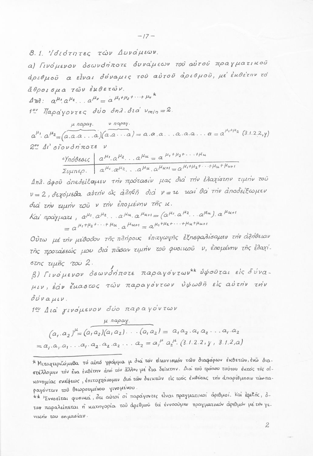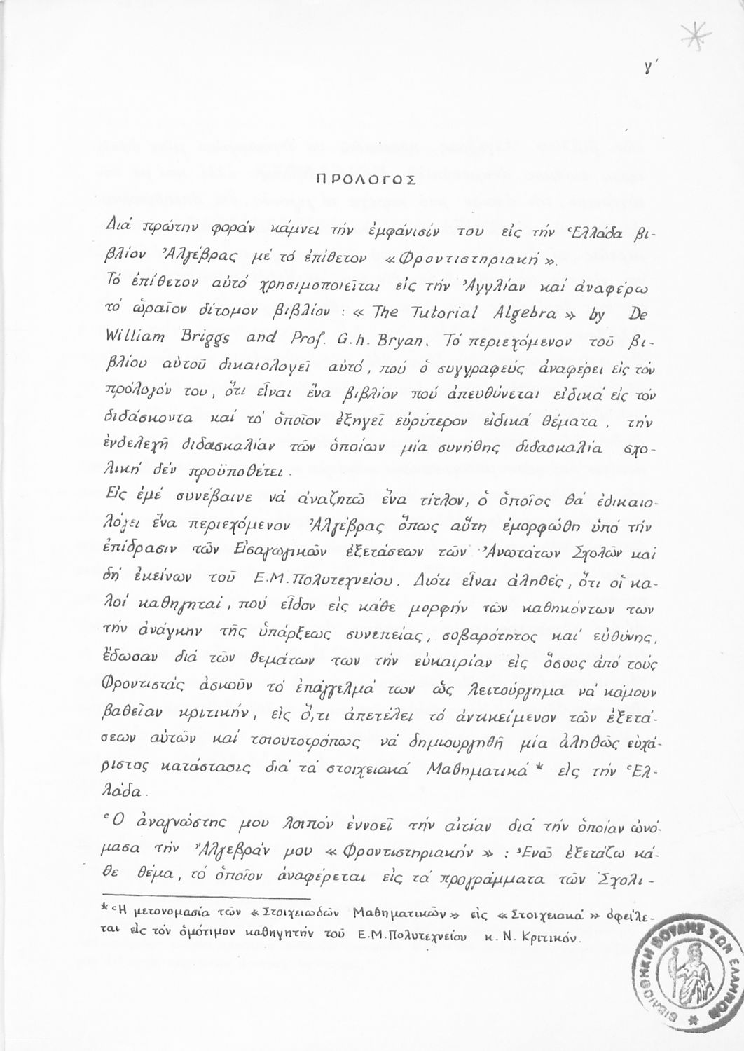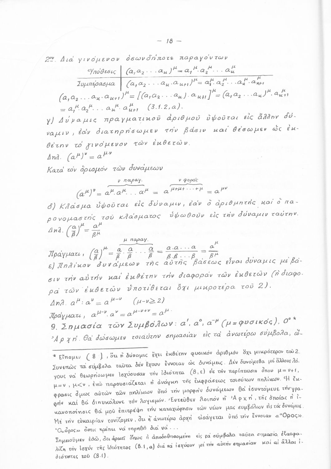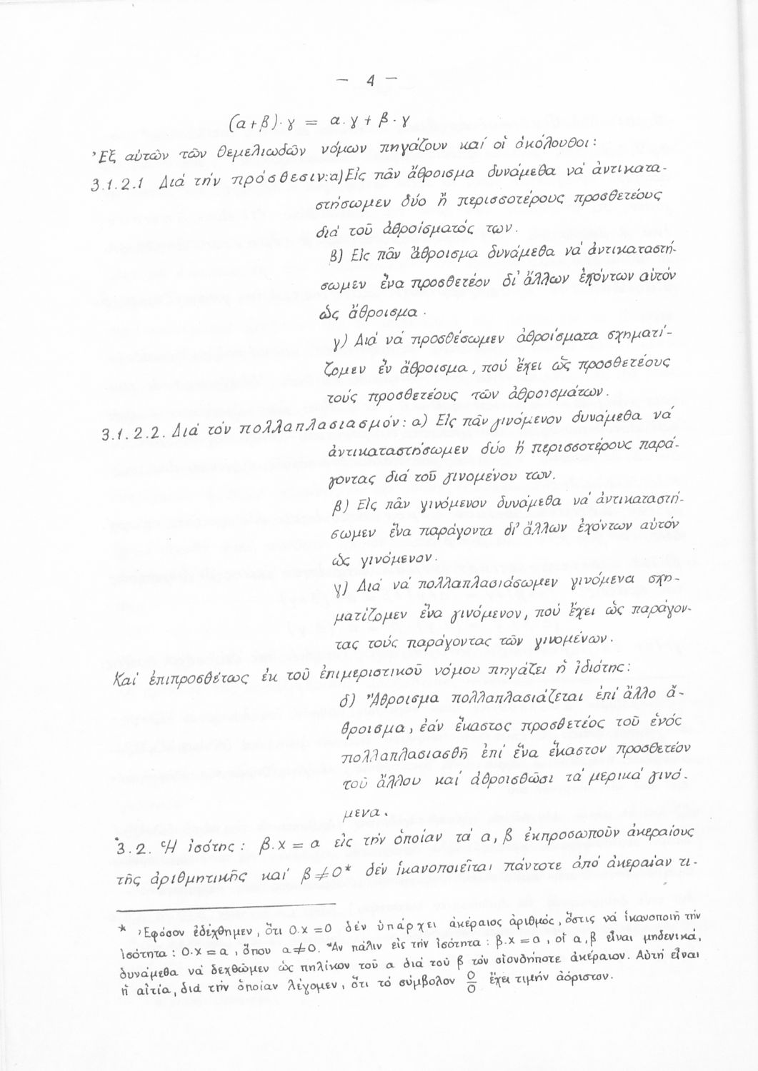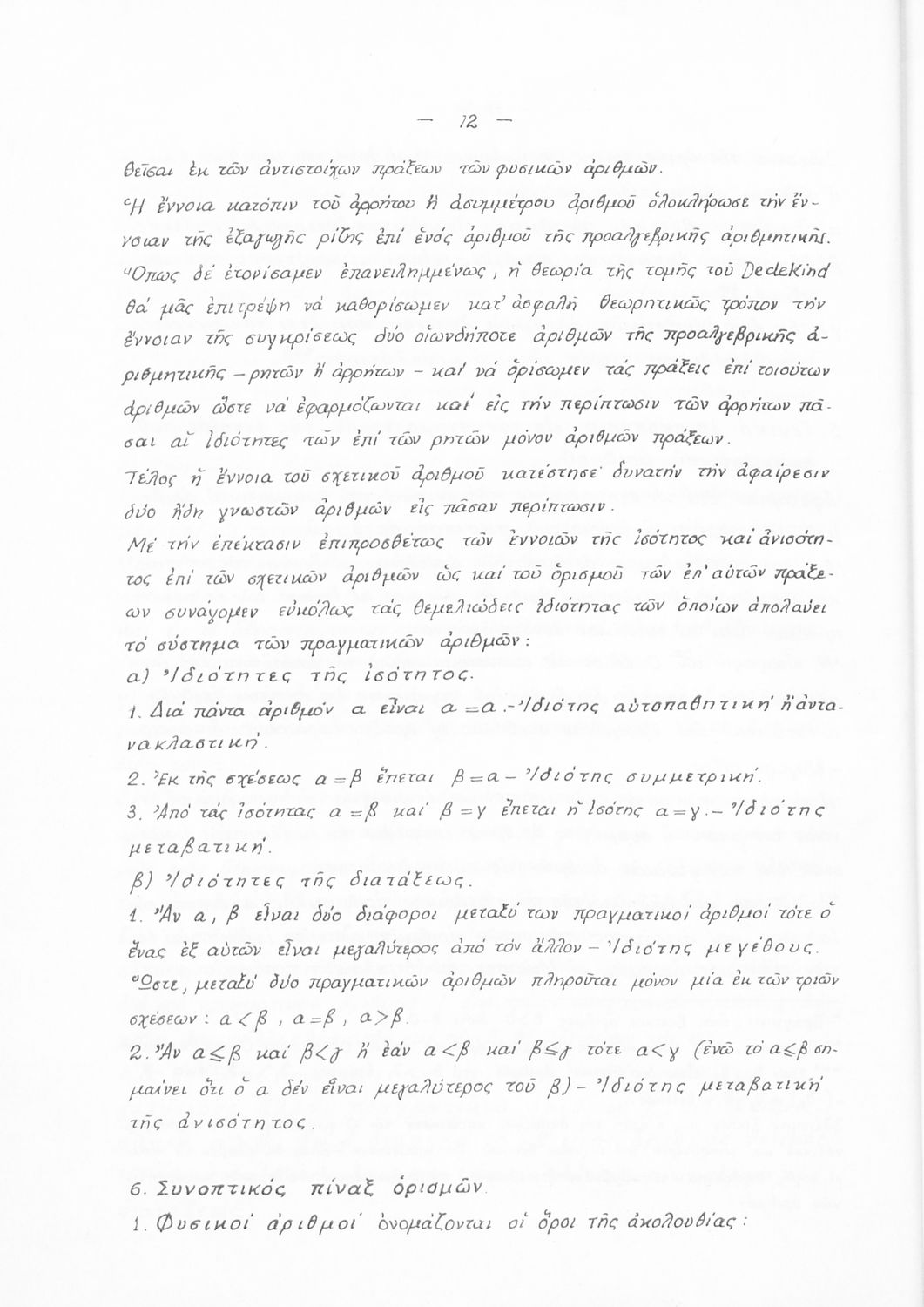 Παιδαγωγικό βοήθημα Μαθηματικών για την Δευτεροβάθμια Εκπαίδευση. Το βιβλίο είναι παιδαγωγικό βοήθημα και αποτελεί επιμορφωτικό υλικό για τους εκπαιδευτικούς. Είναι χωρισμένο σε τρία μέρη. Αρχίζει με τους πραγματικούς αριθμούς, συνεχίζει στις αλγεβρικές παραστάσεις και ολοκληρώνει με τους ασύμμετρους και μιγαδικούς αριθμούς.