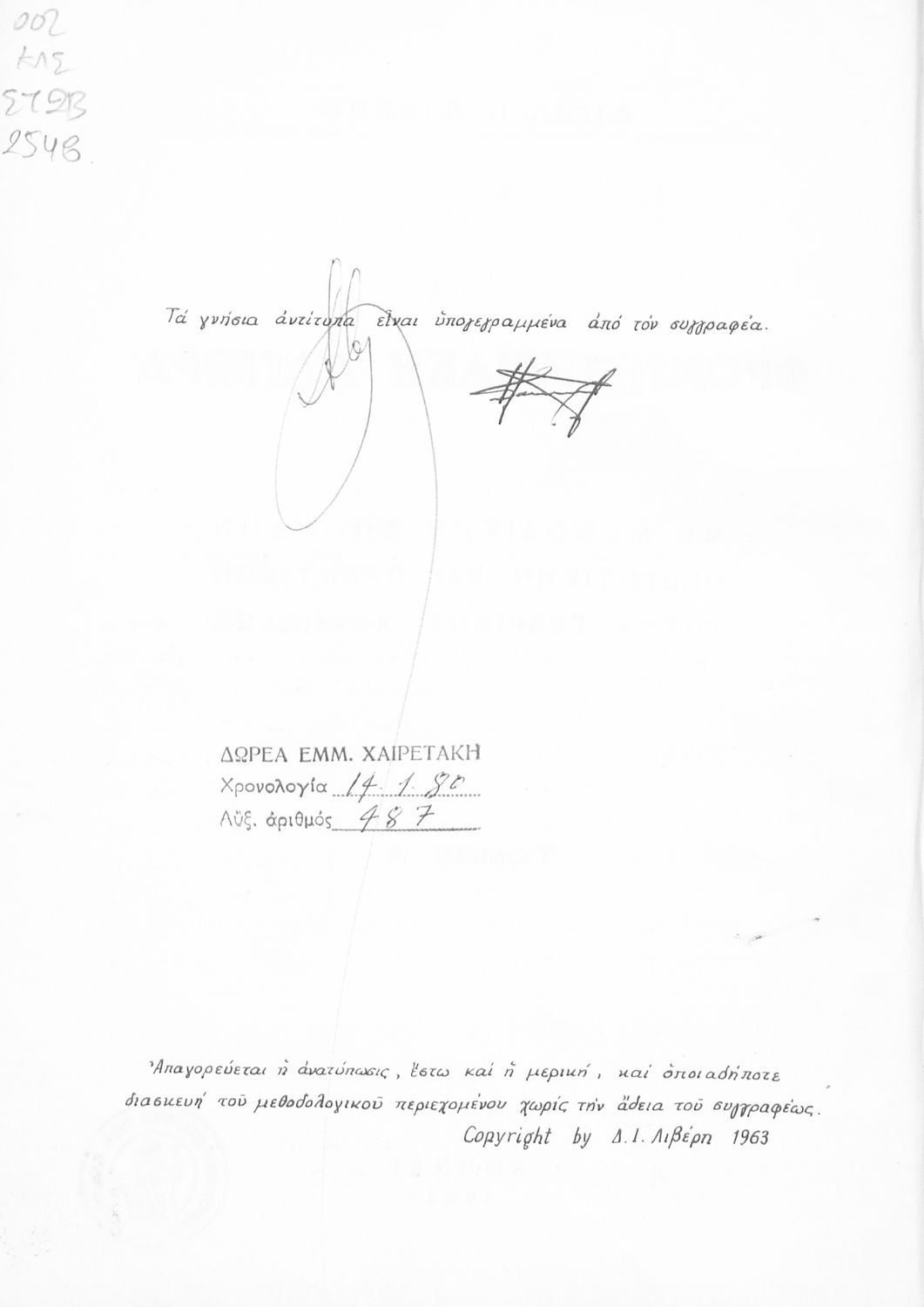 Έτος έκδοσης: 1963 Τόπος έκδοσης: Αθήνα |
