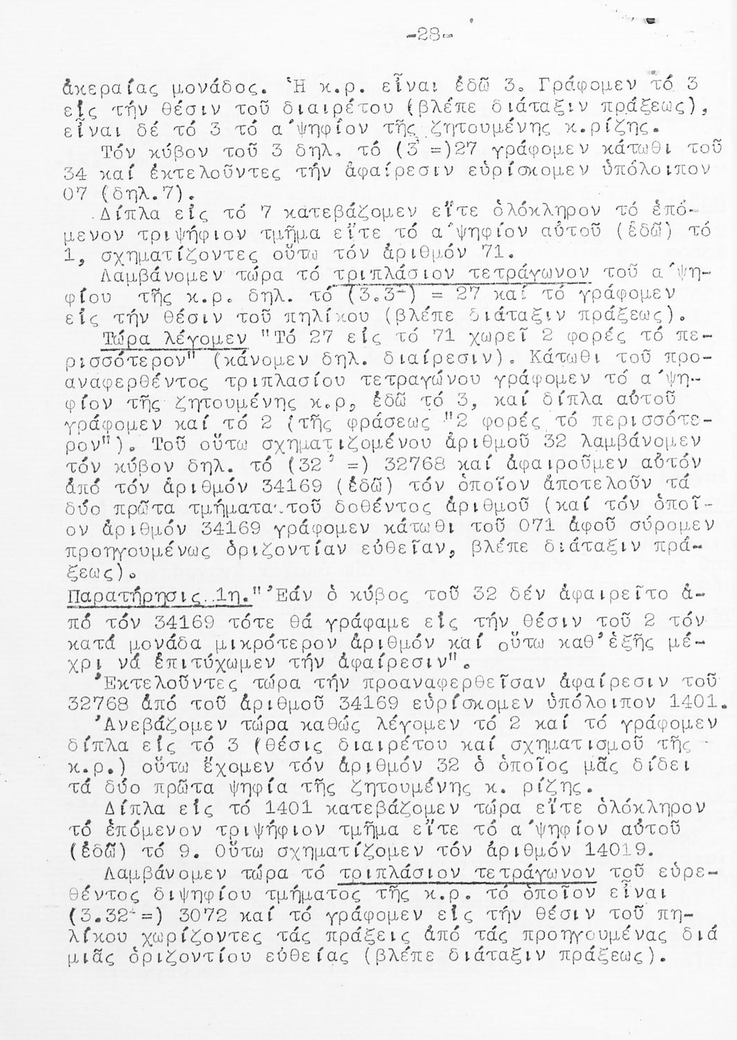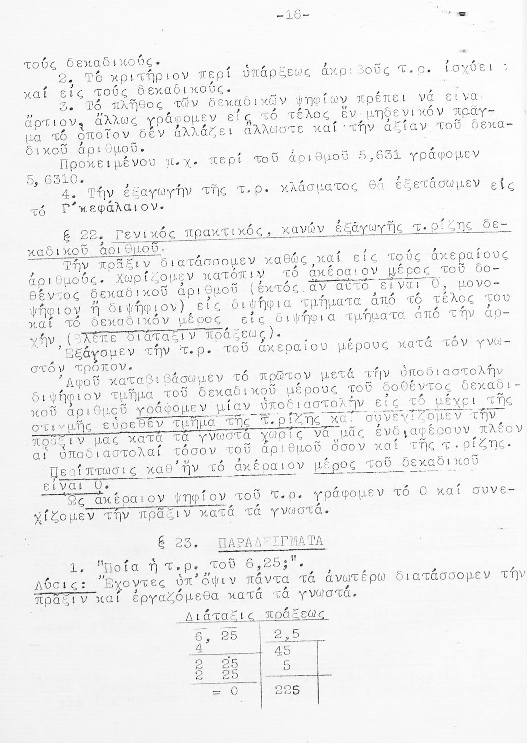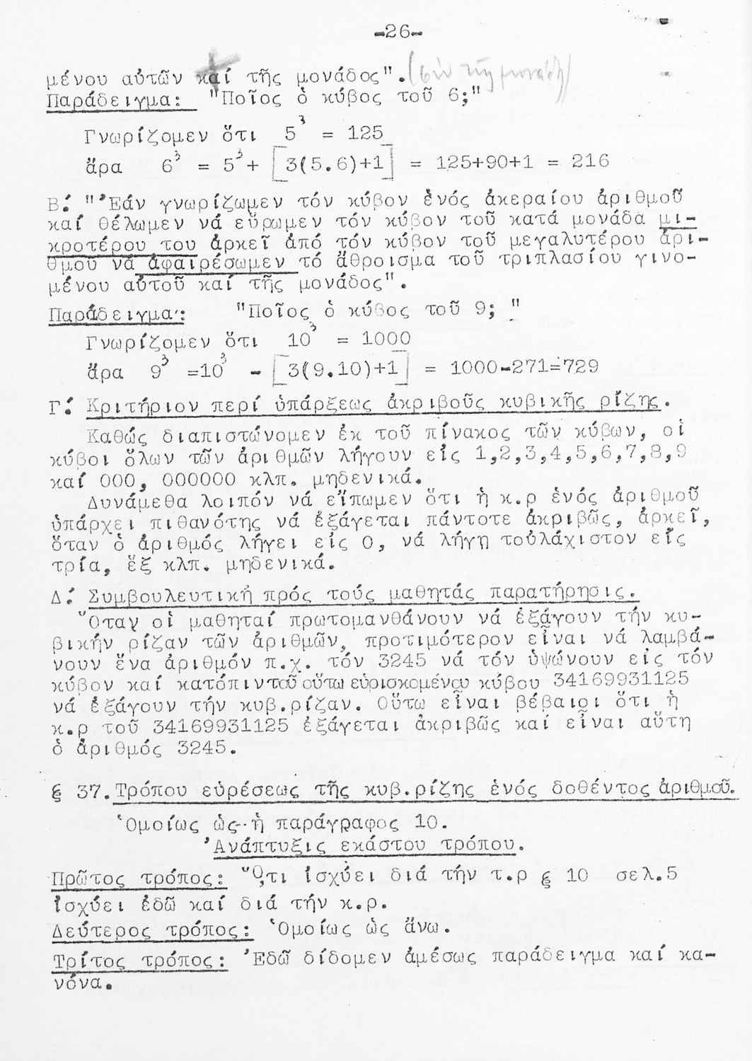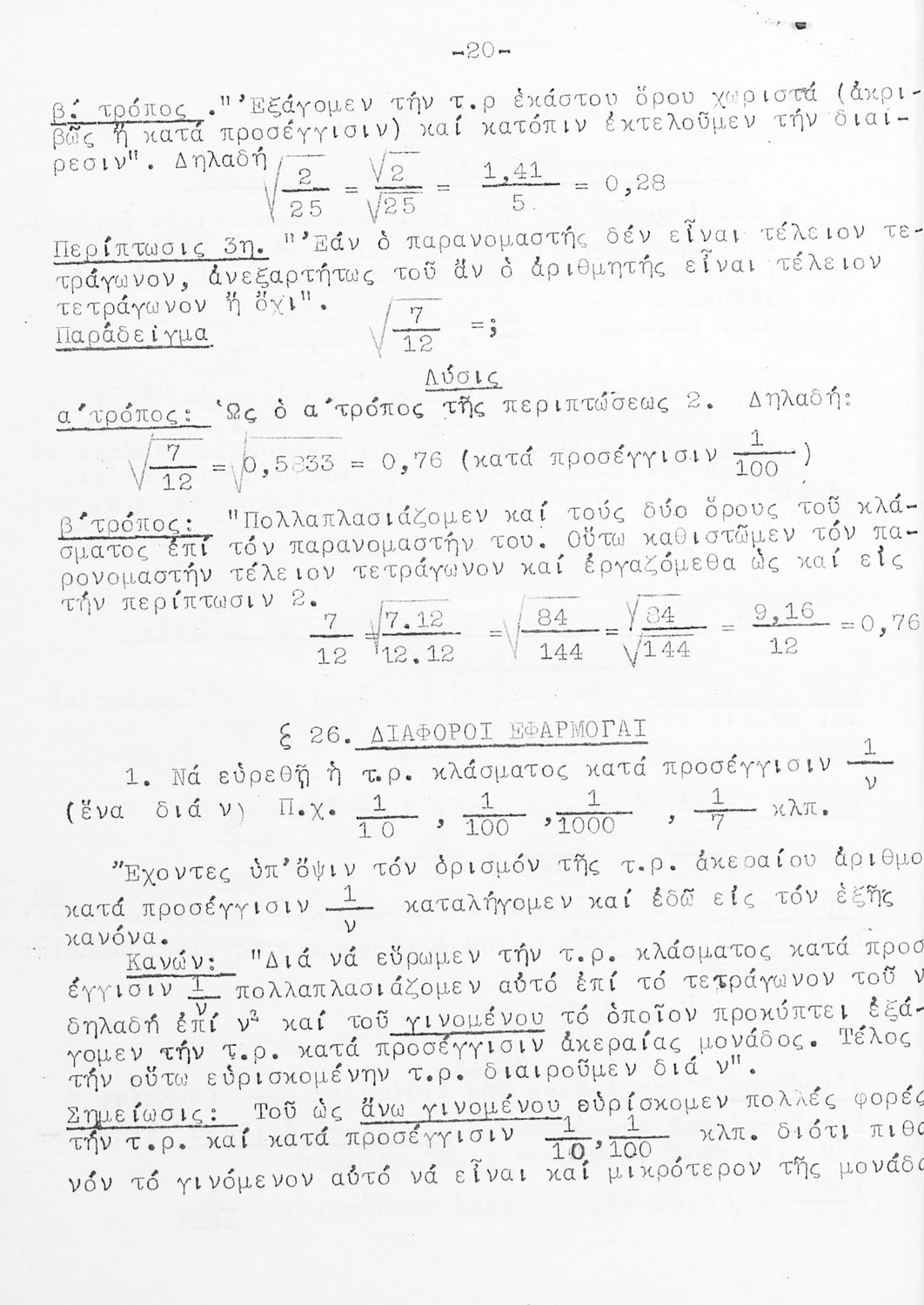 Μαθητικό βοήθημα Μαθηματικών για τους μαθητές των Γυμνασίων και των Εμπορικών και Τεχνικών Σχολών καθώς και δια τους Υποψηφίους των Ανωτάτων Σχολών. Το βιβλίο πραγματεύεται την έννοια της τετραγωνικής ρίζας και της κυβικής ρίζας των αριθμών, δεκαδικών, κλασματικών, ακέραιων.