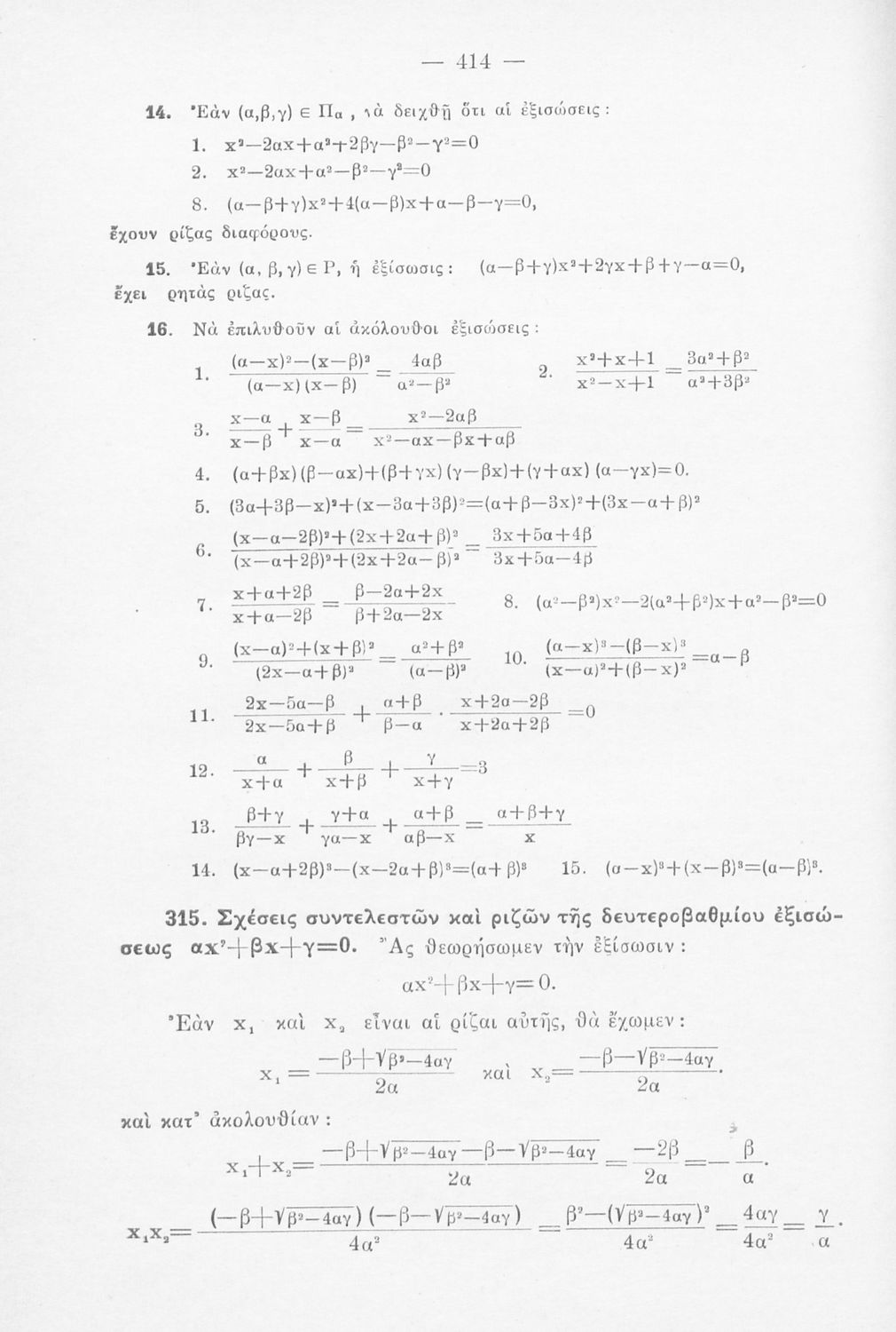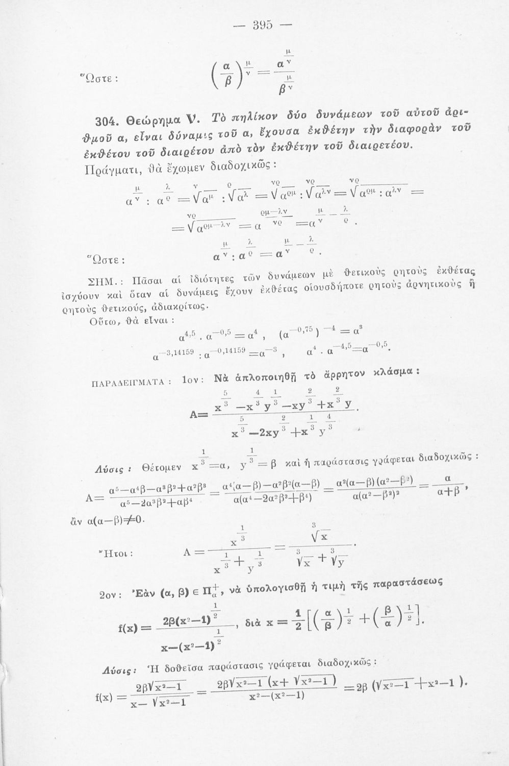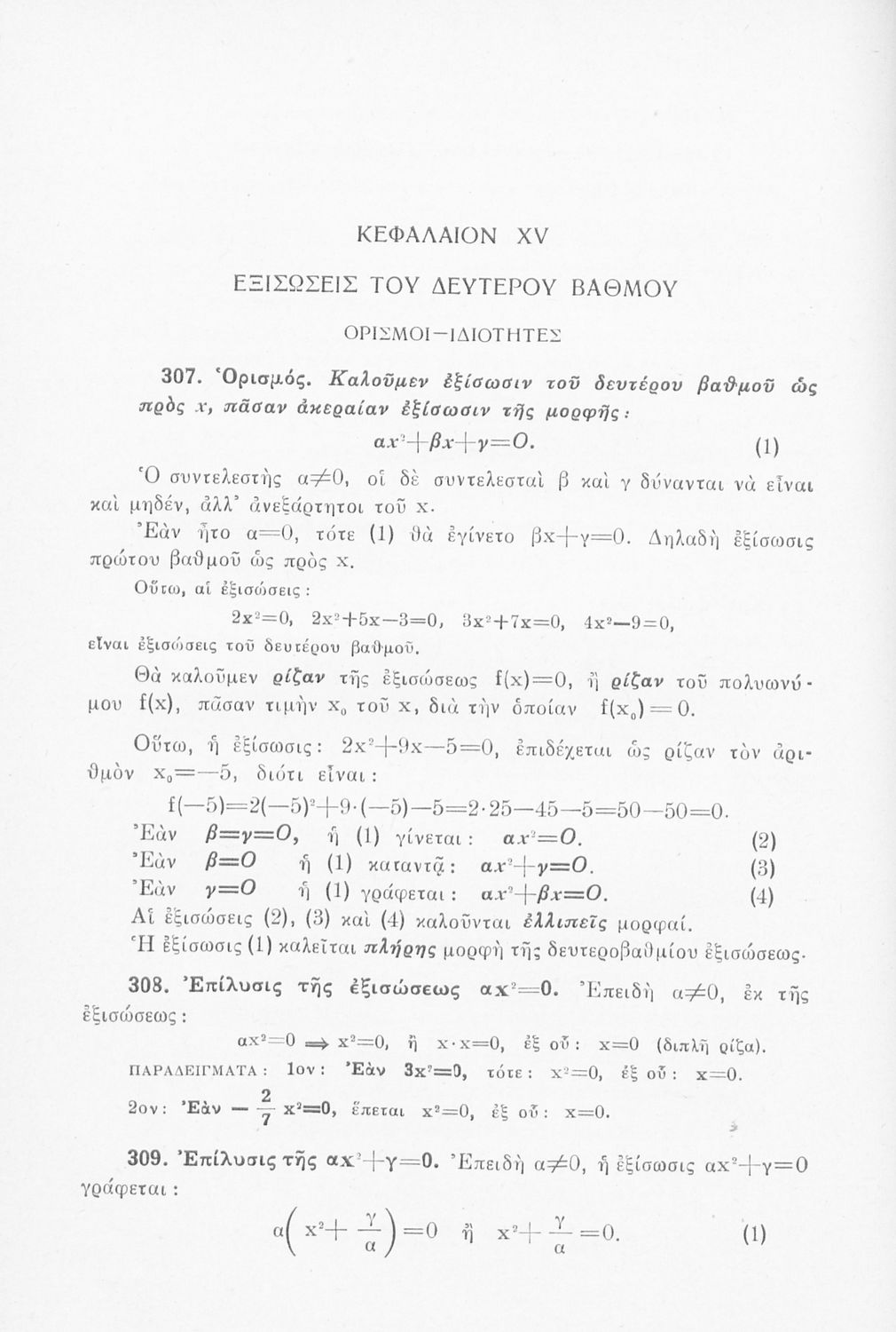 Άλγεβρα και στοιχεία εκ της θεωρίας των συνόλων δια τα λύκεια, τόμος δεύτερος