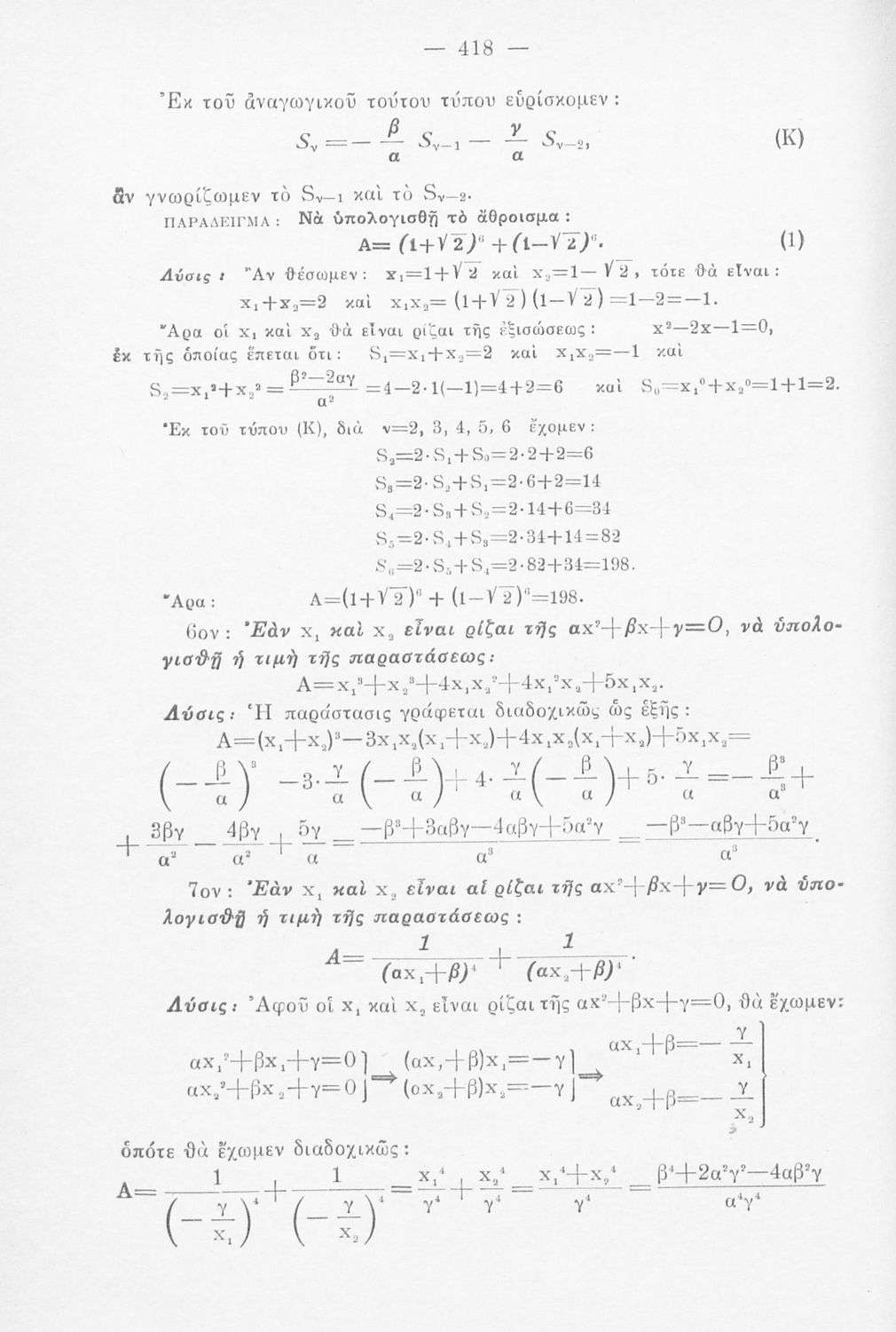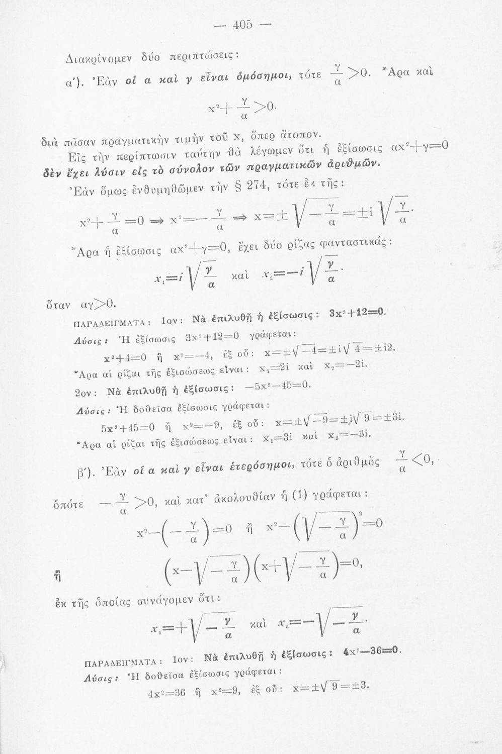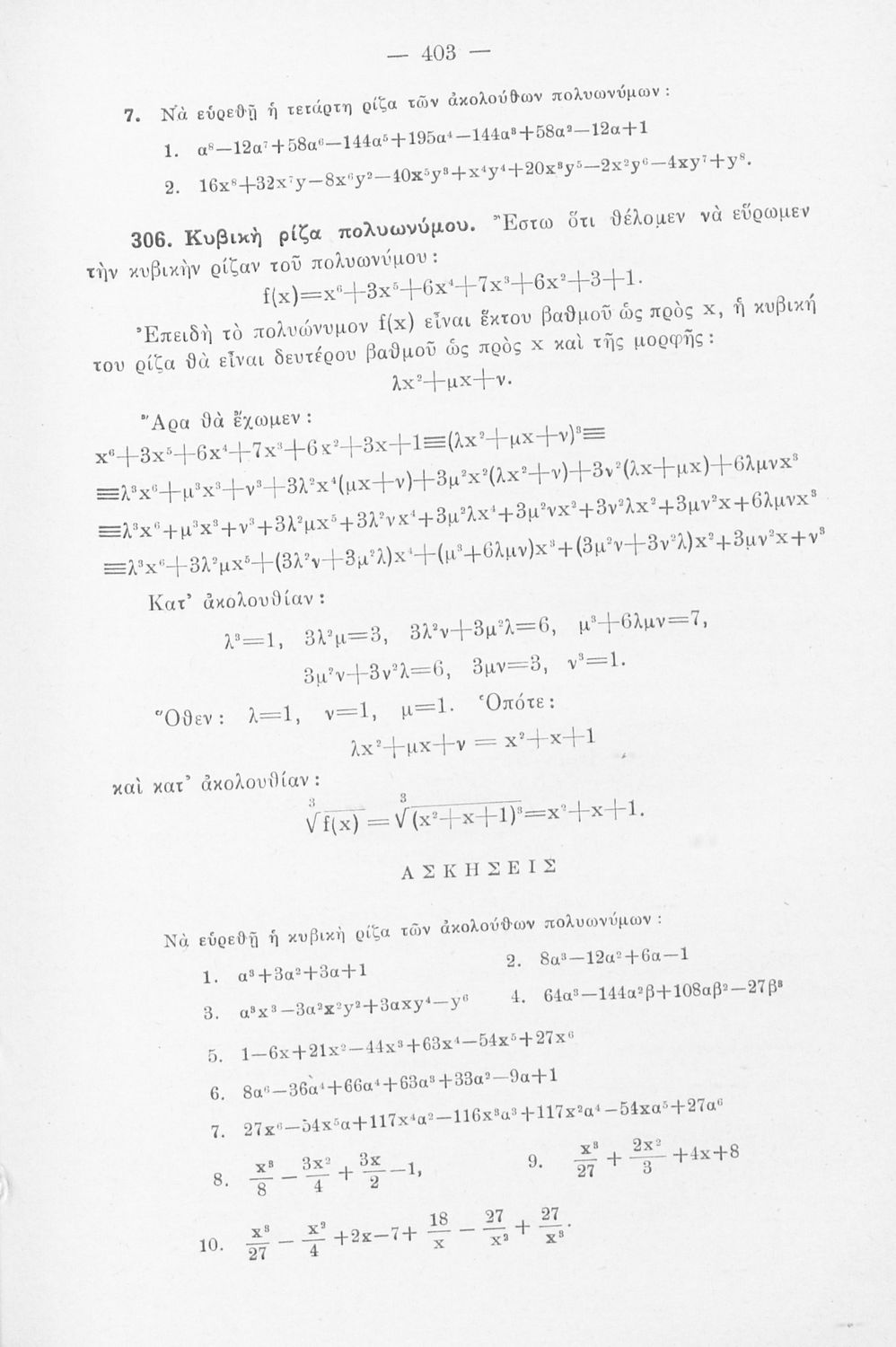 Άλγεβρα και στοιχεία εκ της θεωρίας των συνόλων δια τα λύκεια, τόμος δεύτερος
