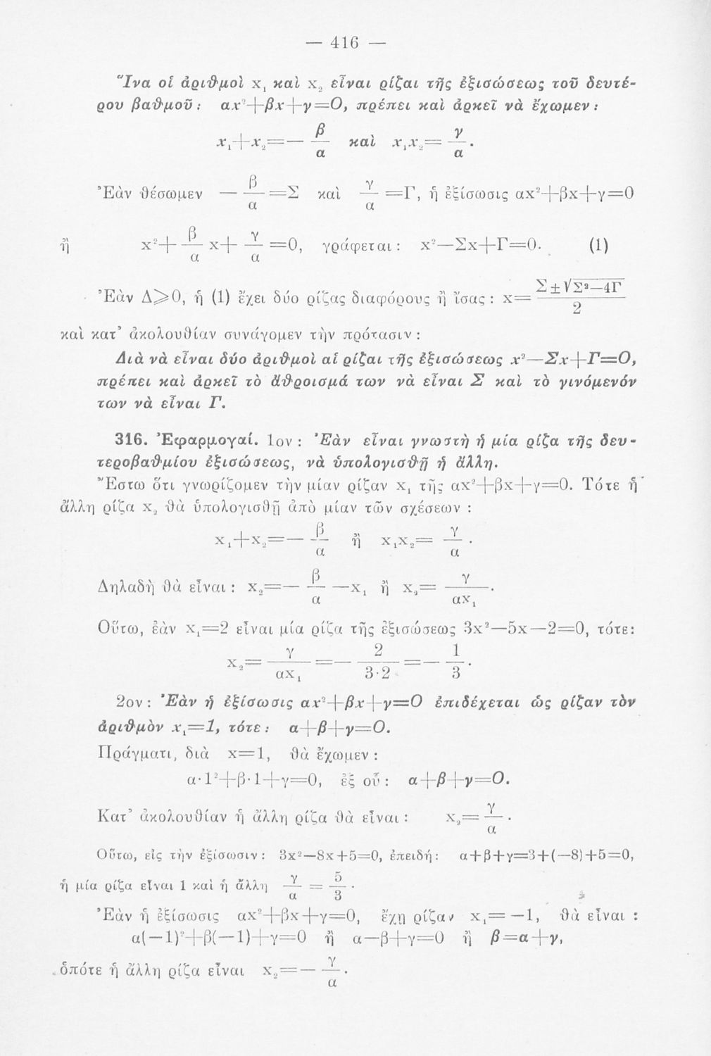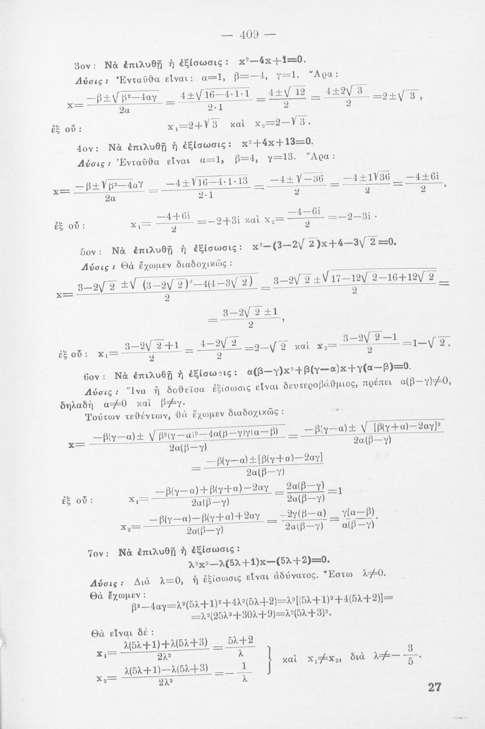 Τίτλος: Άλγεβρα και στοιχεία εκ της θεωρίας των συνόλων δια τα λύκεια, τόμος δεύτερος