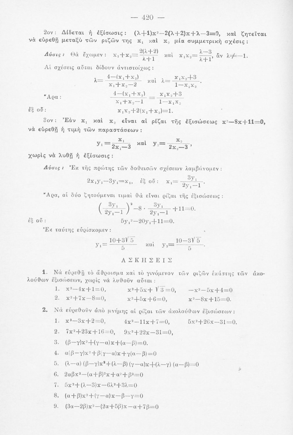 Άλγεβρα και στοιχεία εκ της θεωρίας των συνόλων δια τα λύκεια, τόμος δεύτερος