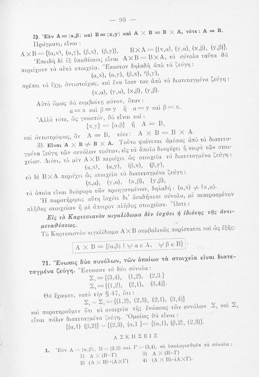 Άλγεβρα και στοιχεία εκ της θεωρίας των συνόλων δια τα λύκεια, τόμος δεύτερος