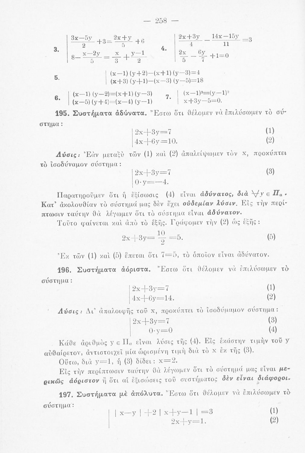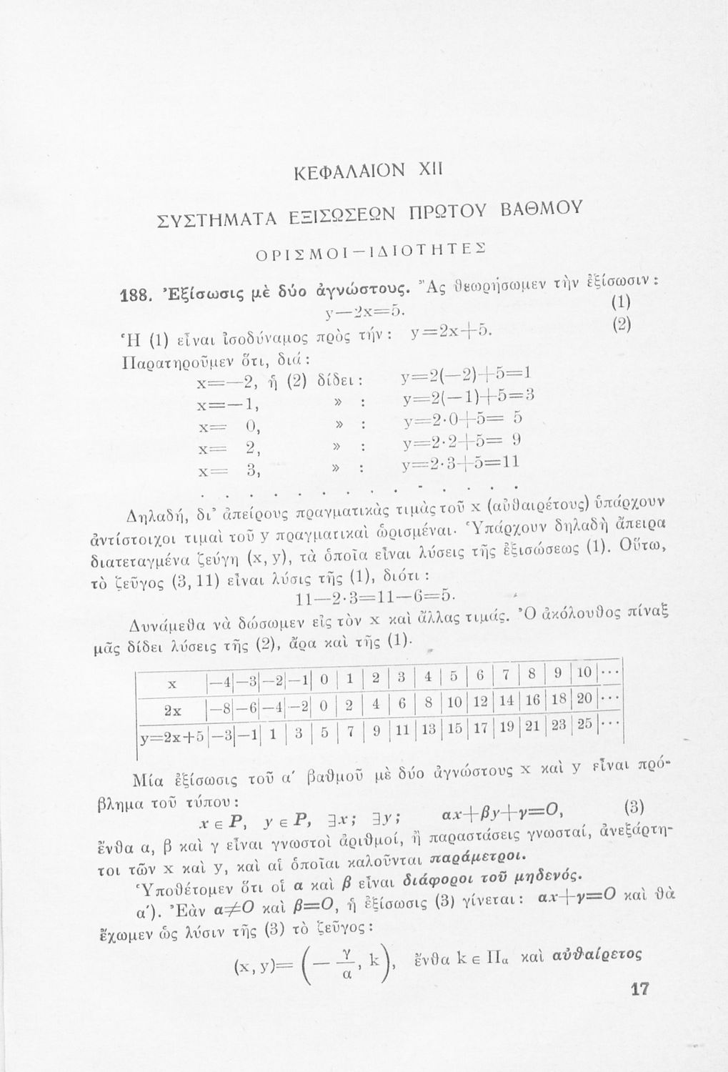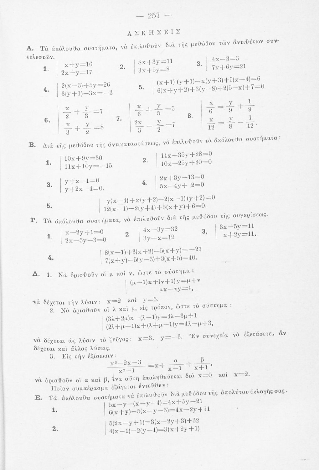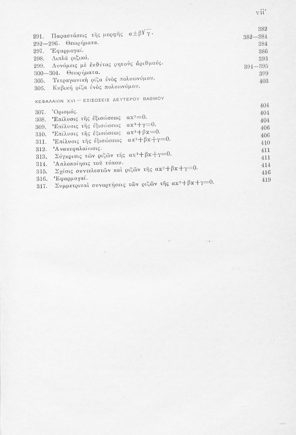 Βαθμίδα εκπαίδευσης: Δευτεροβάθμια Τάξη: Λύκειο Μάθημα: Μαθηματικά Γλώσσα: Καθαρεύουσα Παρουσίαση περιεχομένου: Σχολικό εγχειρίδιο για τις τάξεις του Λυκείου για το μάθημα των Μαθηματικών για το μάθημα της Άλγεβρας. Το εγχειρίδιο περιλαμβάνει τις βασικές έννοιες της επιστήμης, τις ιδιότητες συνόλων, τους πραγματικούς αριθμούς, τα διατεταγμένα ζεύγη, τις διμελείς σχέσεις, τις απεικονίσεις και τις συναρτήσεις. |
