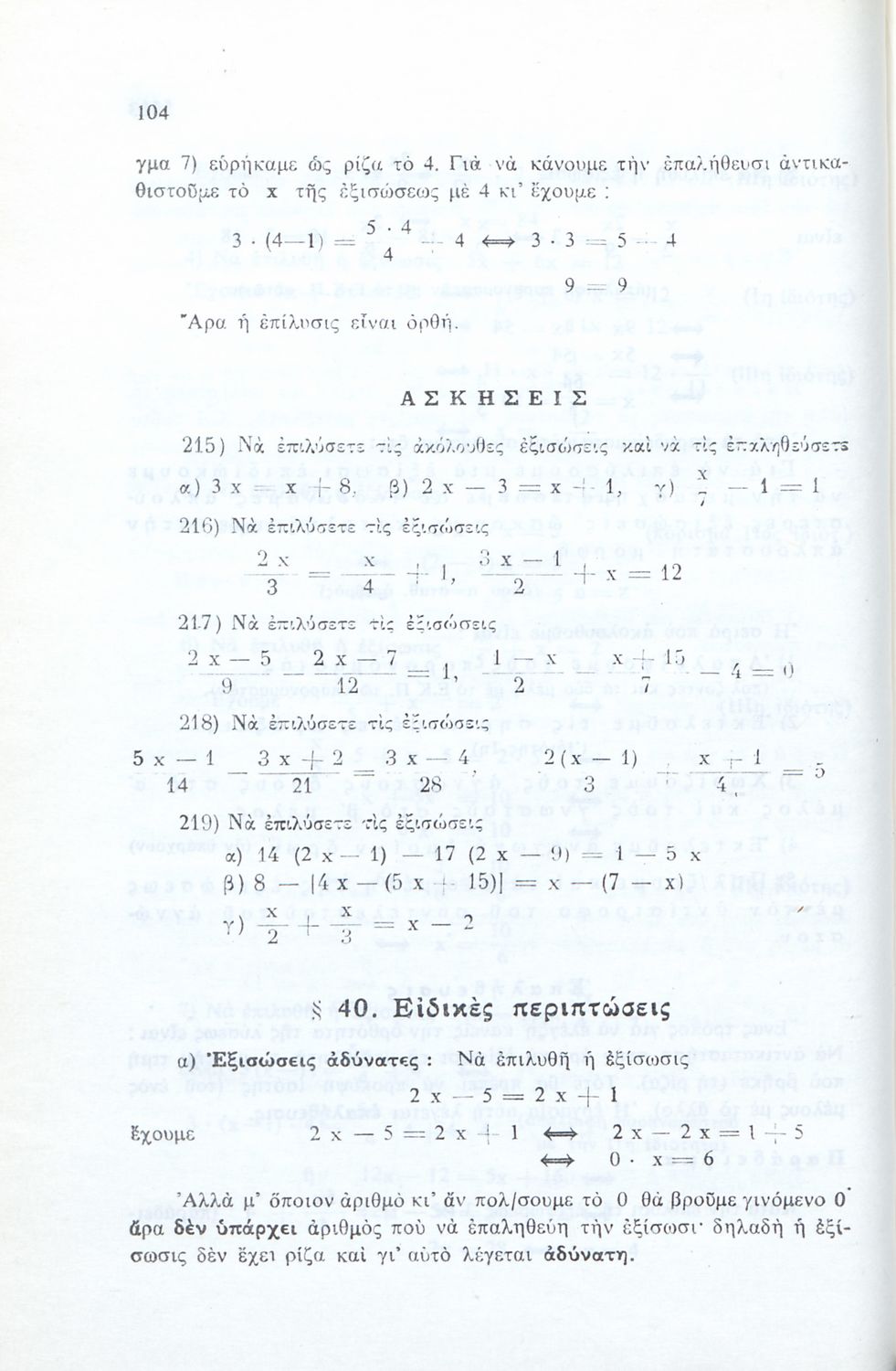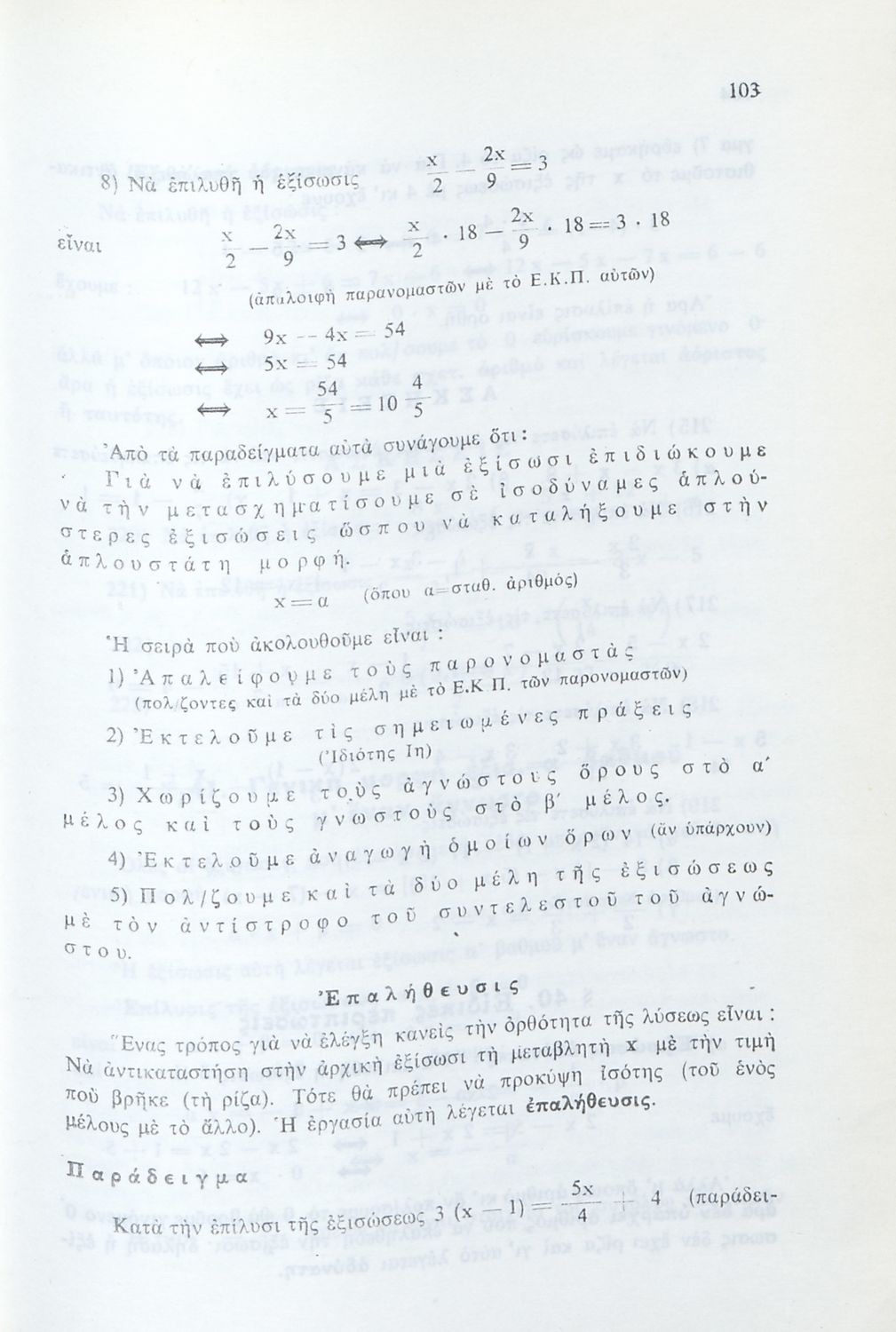 Σχολικό εγχειρίδιο Άλγεβρας για τις Δ΄ και Ε΄ Εξαταξίου Γυμνασίου χωρισμένο σε θεωρία και ασκήσεις που εστιάζει στις αλγεβρικές πράξεις και παραστάσεις, στις εξισώσεις και στις ρίζες.