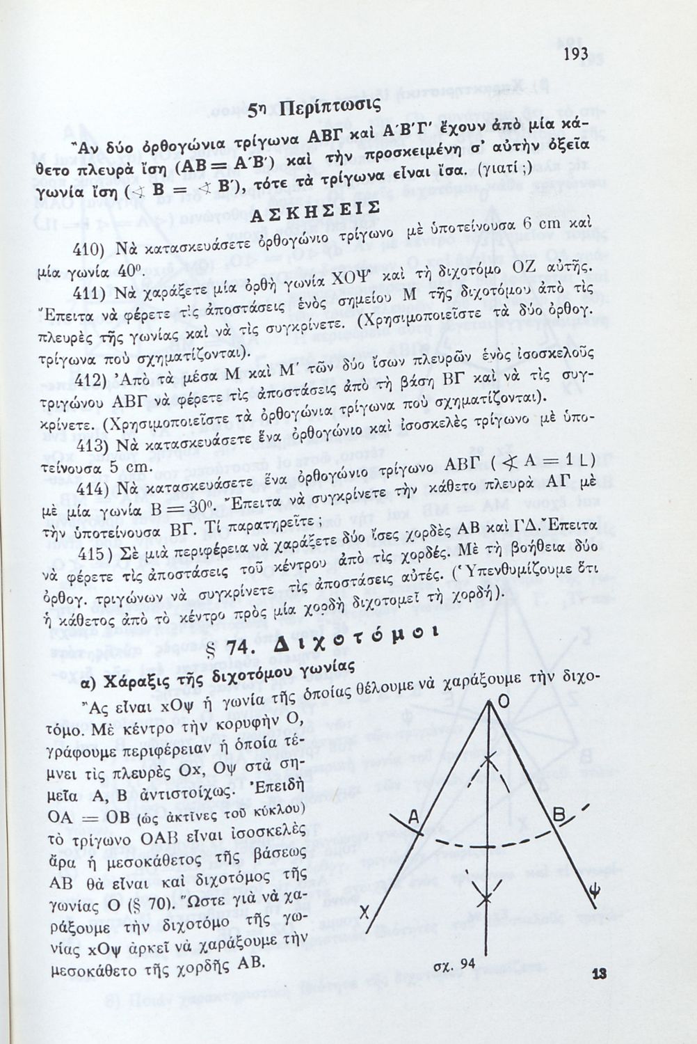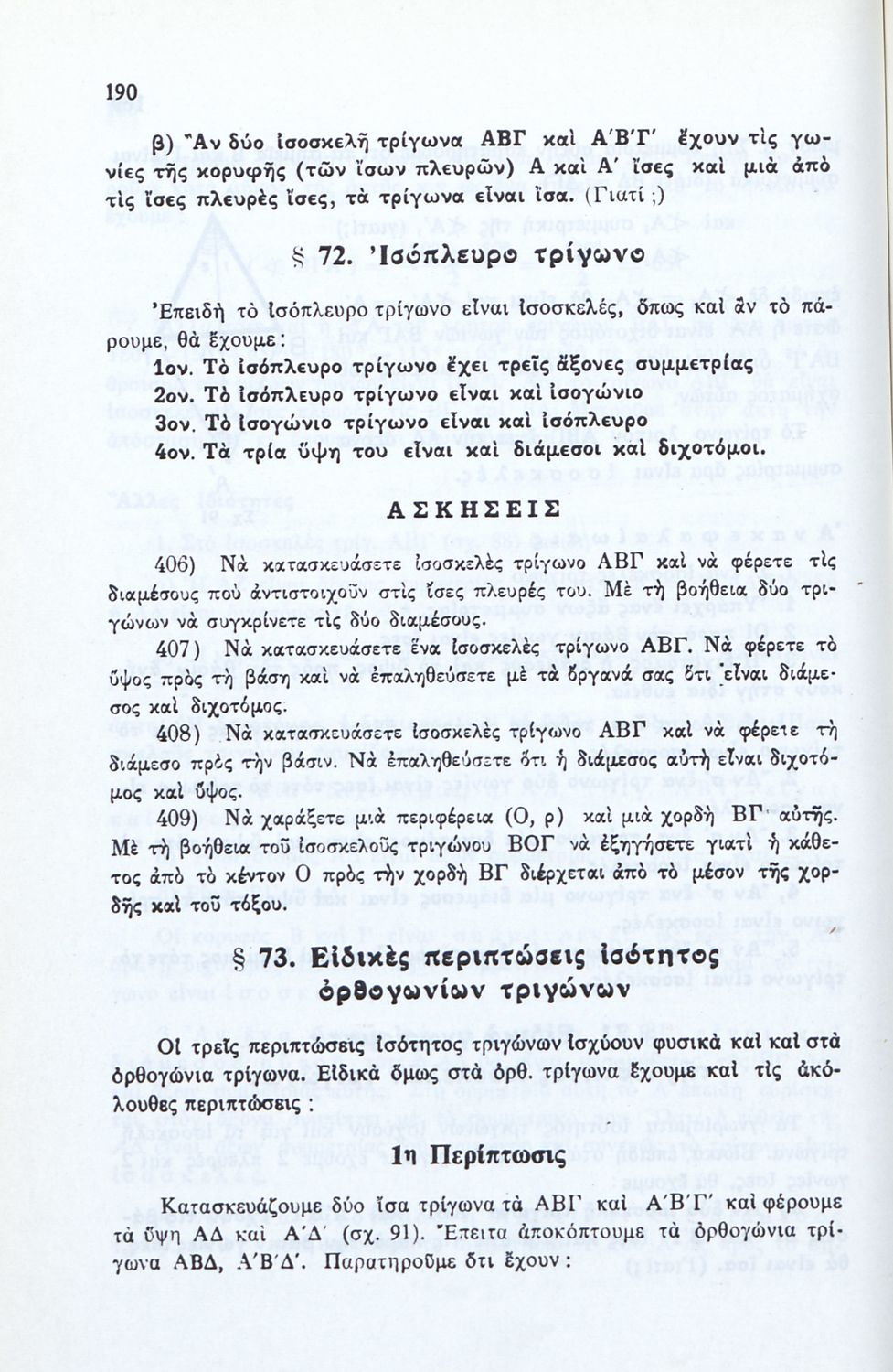 Σχολικό εγχειρίδιο Γεωμετρίας για την Α΄ και Β΄ Γυμνασίου χωρισμένο σε Επιπεδομετρία και Στερεομετρία που περιέχει θεωρία και ασκήσεις.