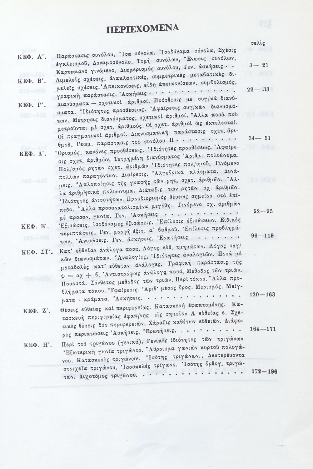 Σχολικό εγχειρίδιο Γεωμετρίας για την Α΄ και Β΄ Γυμνασίου που περιλαμβάνει θεωρία και ασκήσεις και είναι χωρισμένο σε Επιπεδομετρία και Στερεομετρία.