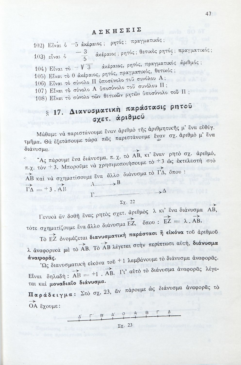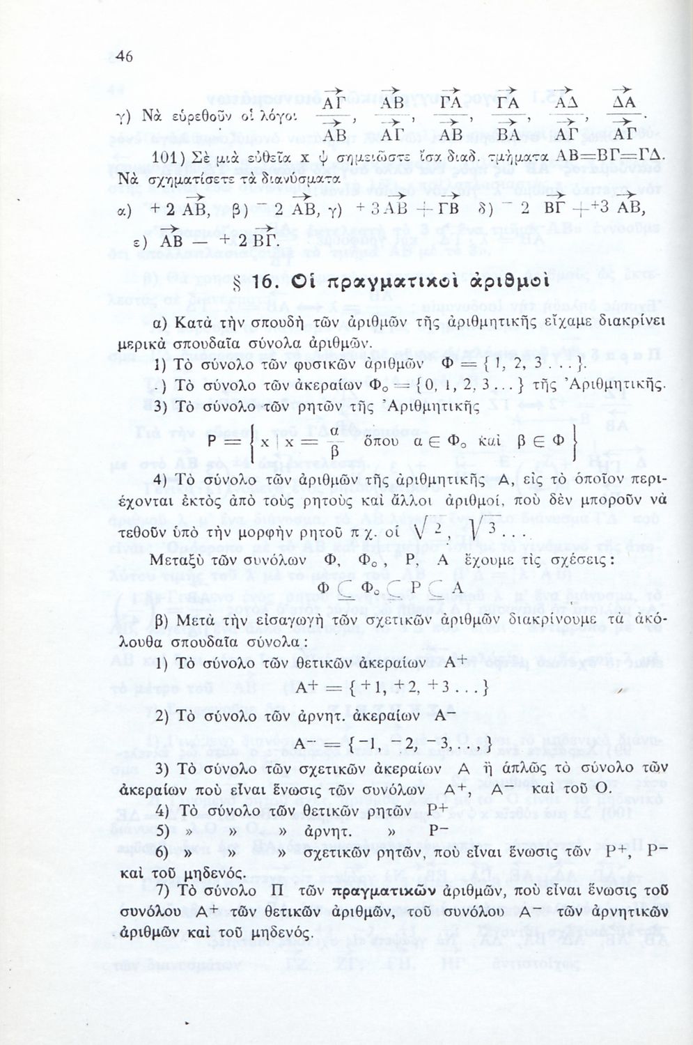 Σχολικό εγχειρίδιο Αριθμητικής για τις Α΄, Β΄, Γ΄ Γυμνασίου που είναι χωρισμένο σε ορισμούς και ασκήσεις και εστιάζει στις ιδιότητες των αριθμητικών πράξεων, τα κλάσματα και την τετραγωνική ρίζα.