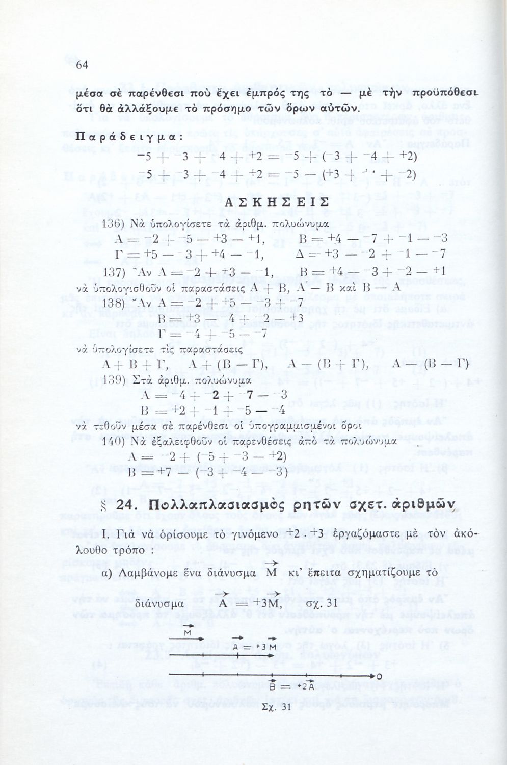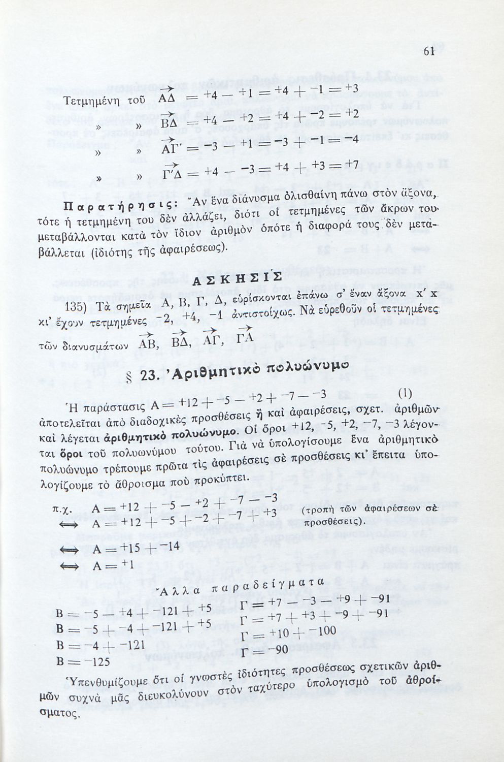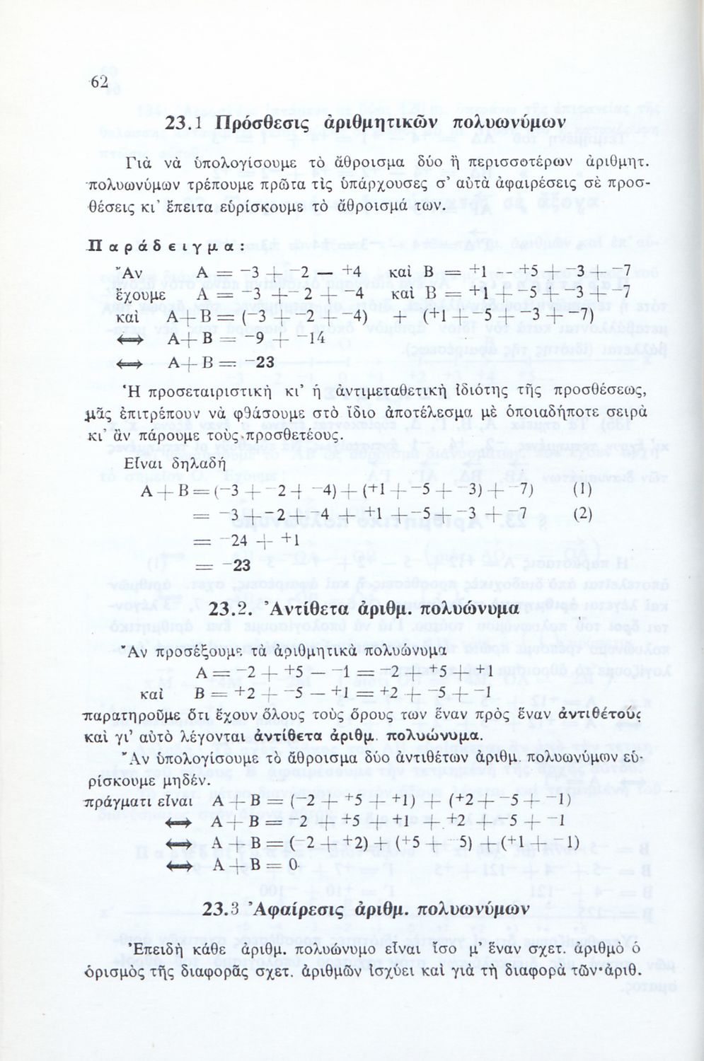 Σχολικό εγχειρίδιο Αριθμητικής για τις Α΄, Β΄, Γ΄ Γυμνασίου που είναι χωρισμένο σε ορισμούς και ασκήσεις και εστιάζει στις ιδιότητες των αριθμητικών πράξεων, τα κλάσματα και την τετραγωνική ρίζα.