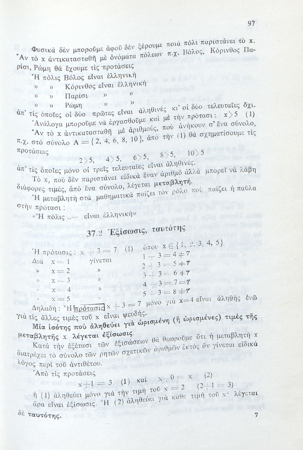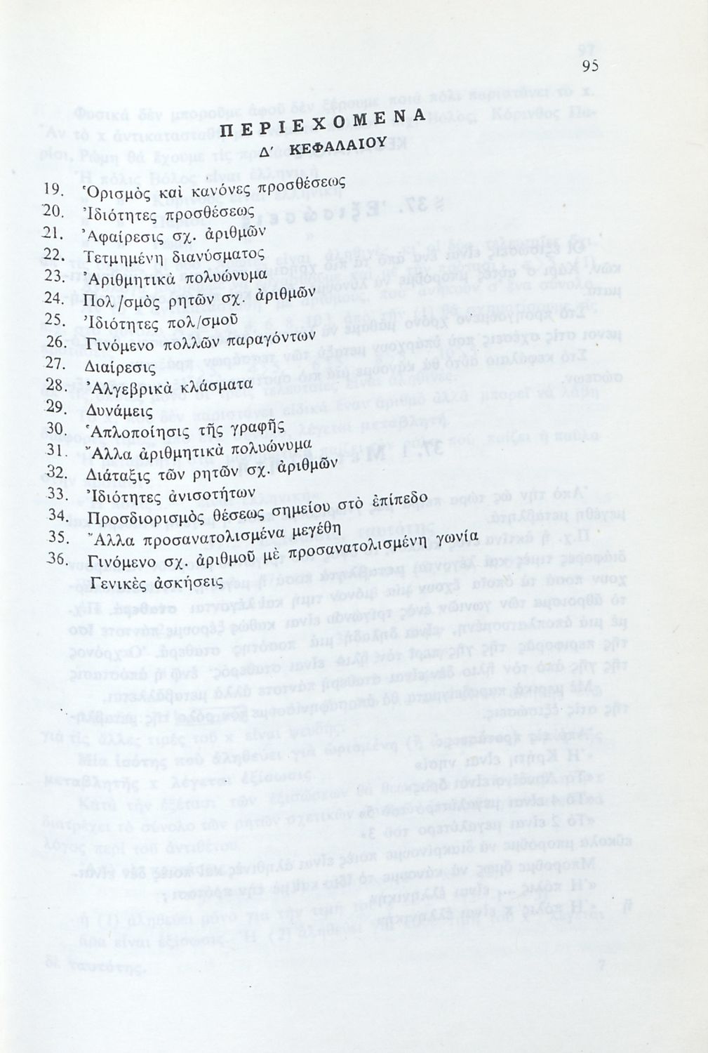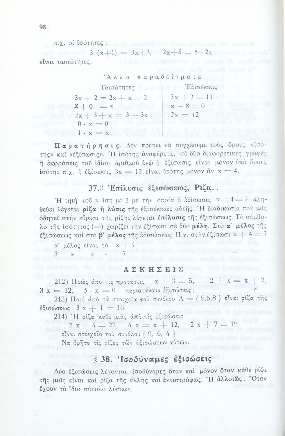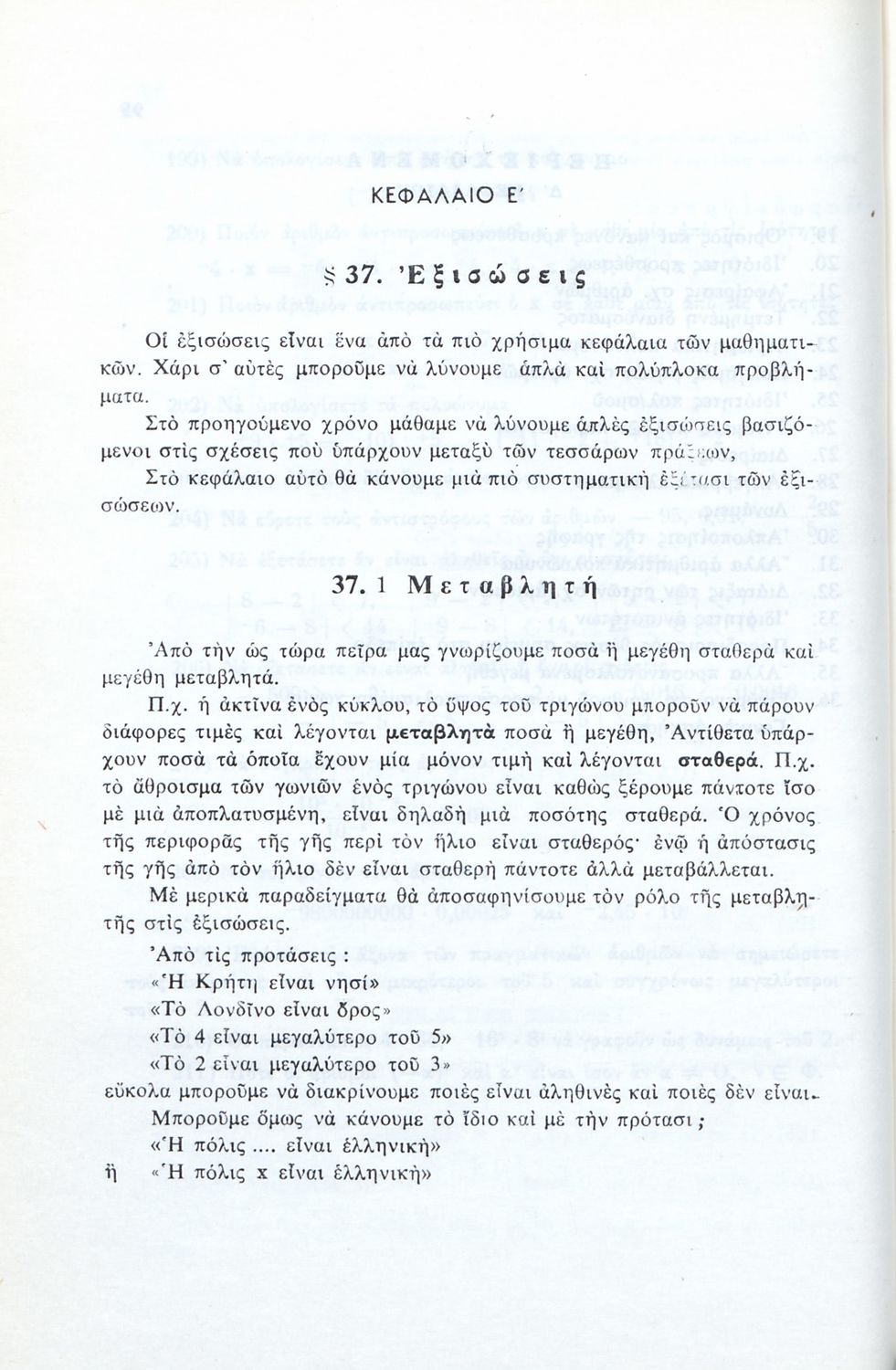 Σχολικό εγχειρίδιο Άλγεβρας για τις Δ΄ και Ε΄ Εξαταξίου Γυμνασίου χωρισμένο σε θεωρία και ασκήσεις που εστιάζει στις αλγεβρικές πράξεις και παραστάσεις, στις εξισώσεις και στις ρίζες.