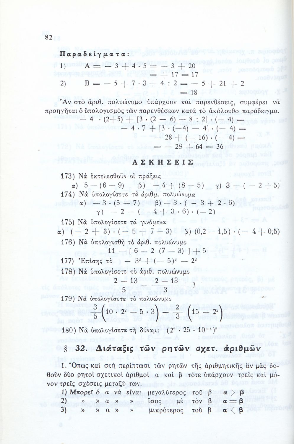 Σχολικό εγχειρίδιο Αριθμητικής για τις Α΄, Β΄, Γ΄ Γυμνασίου που είναι χωρισμένο σε ορισμούς και ασκήσεις και εστιάζει στις ιδιότητες των αριθμητικών πράξεων, τα κλάσματα και την τετραγωνική ρίζα.