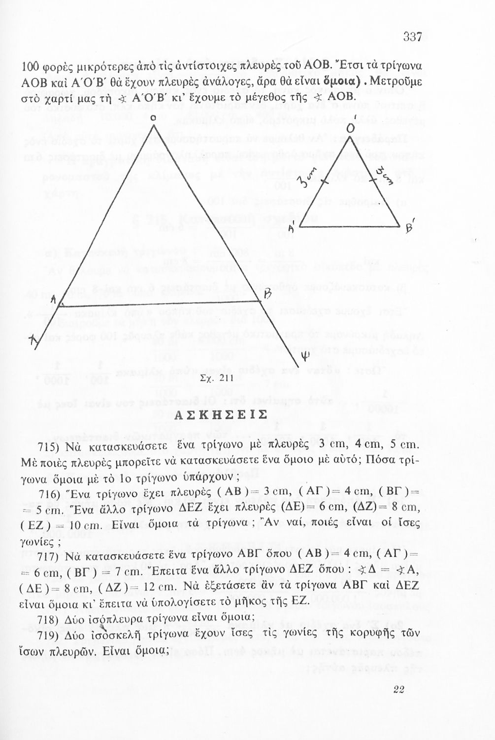 Σχολικό εγχειρίδιο Γεωμετρίας για την Α΄ και Β΄ Γυμνασίου χωρισμένο σε Επιπεδομετρία και Στερεομετρία που περιέχει θεωρία και ασκήσεις.
