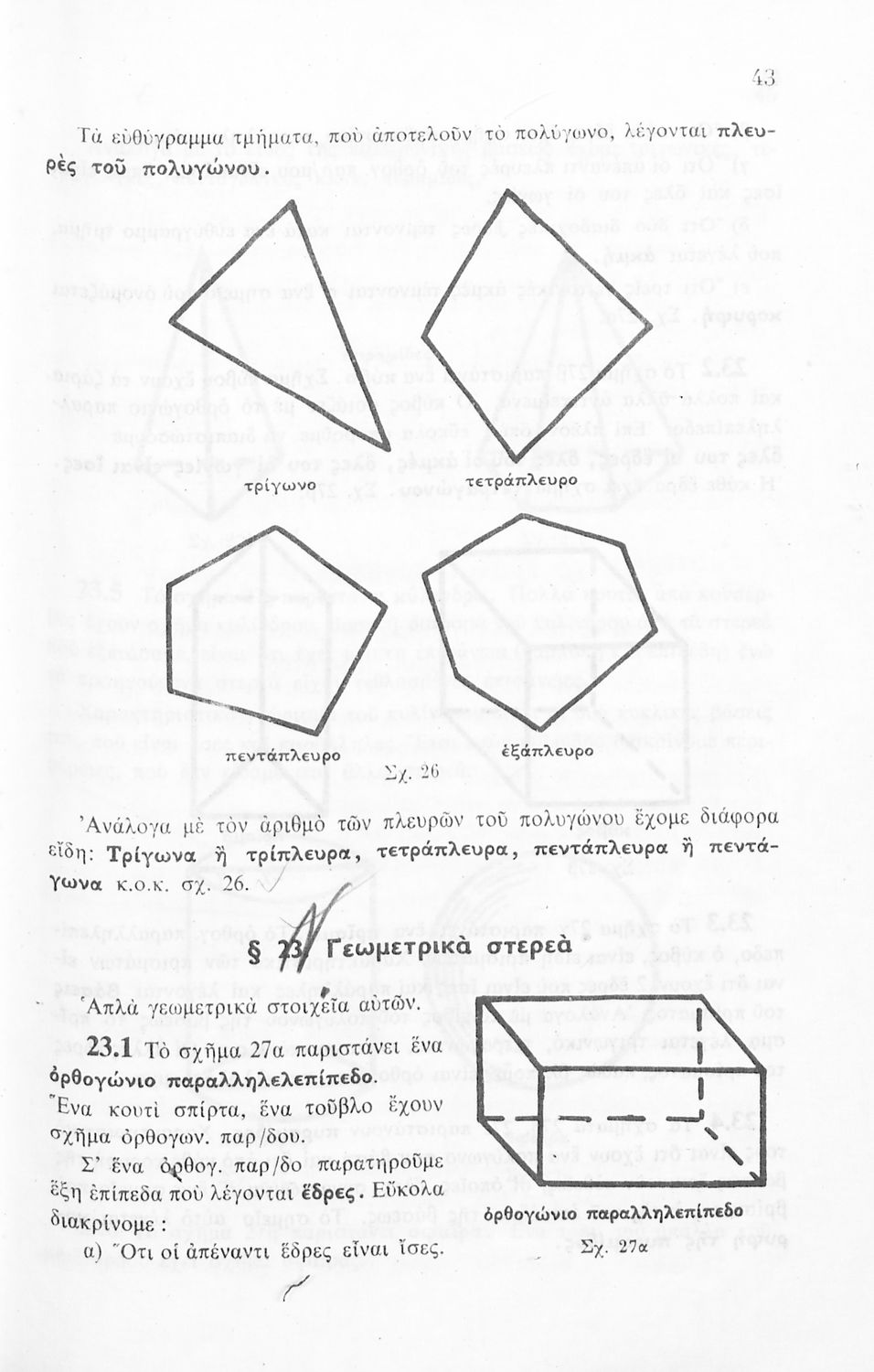Βαθμίδα εκπαίδευσης: Δευτεροβάθμια Τάξη: Α' Γυμνασίου Μάθημα: Μαθηματικά Γλώσσα: Καθαρεύουσα Παρουσίαση περιεχομένου: Μαθητικό βοήθημα Μαθηματικών Α' Γυμνασίου που περιέχει άλγεβρα με έμφαση στις αριθμητικές πράξεις με ακέραιους, δεκαδικούς και κλάσματα, και γεωμετρία με έμφαση στην επιπεδομετρία. Περιέχει και εισαγωγή στη θεωρία των συνόλων. |