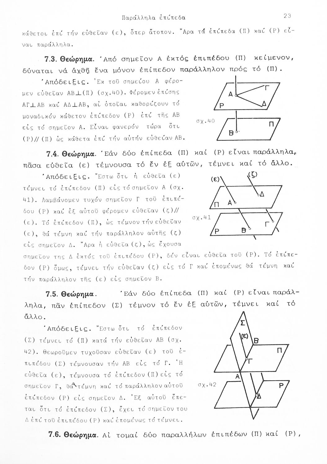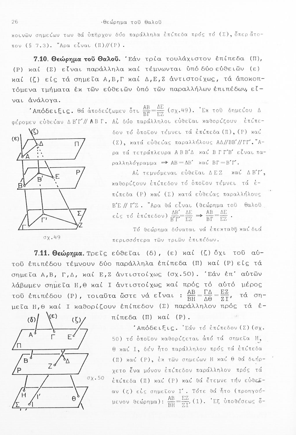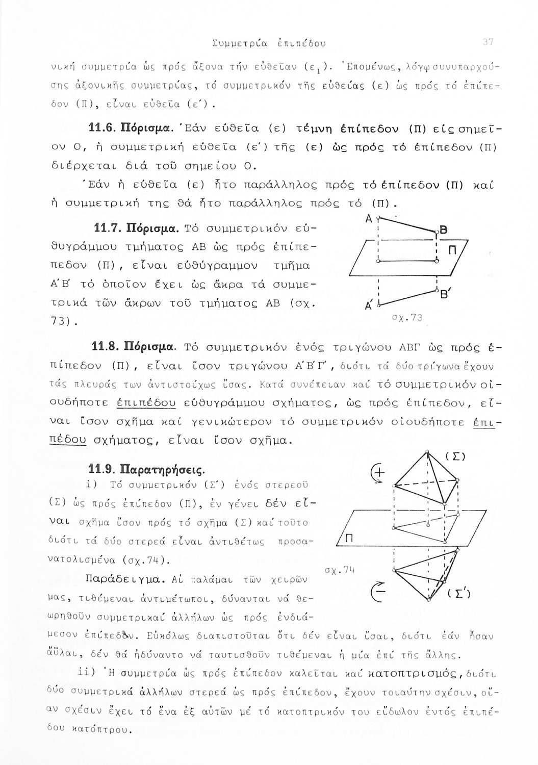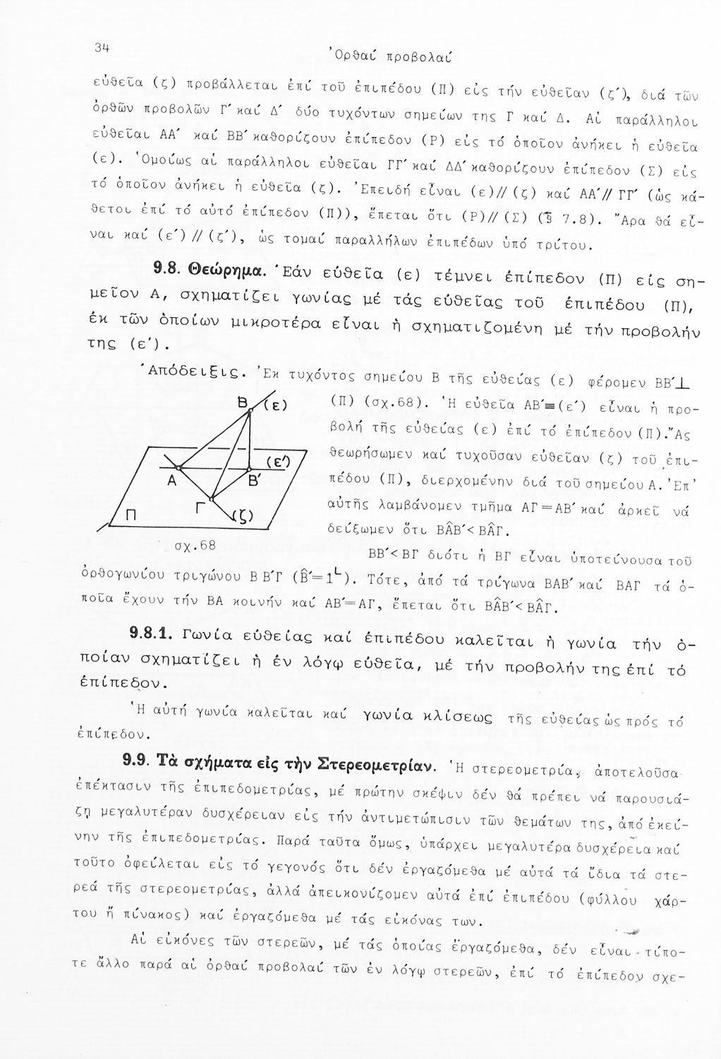 Σχολικό εγχειρίδιο Γεωμετρίας που είναι χωρισμένο σε αξιώματα, θεωρήματα και πορίσματα και εστιάζει στην Επίπεδη Γεωμετρία και τη Στερεομετρία.