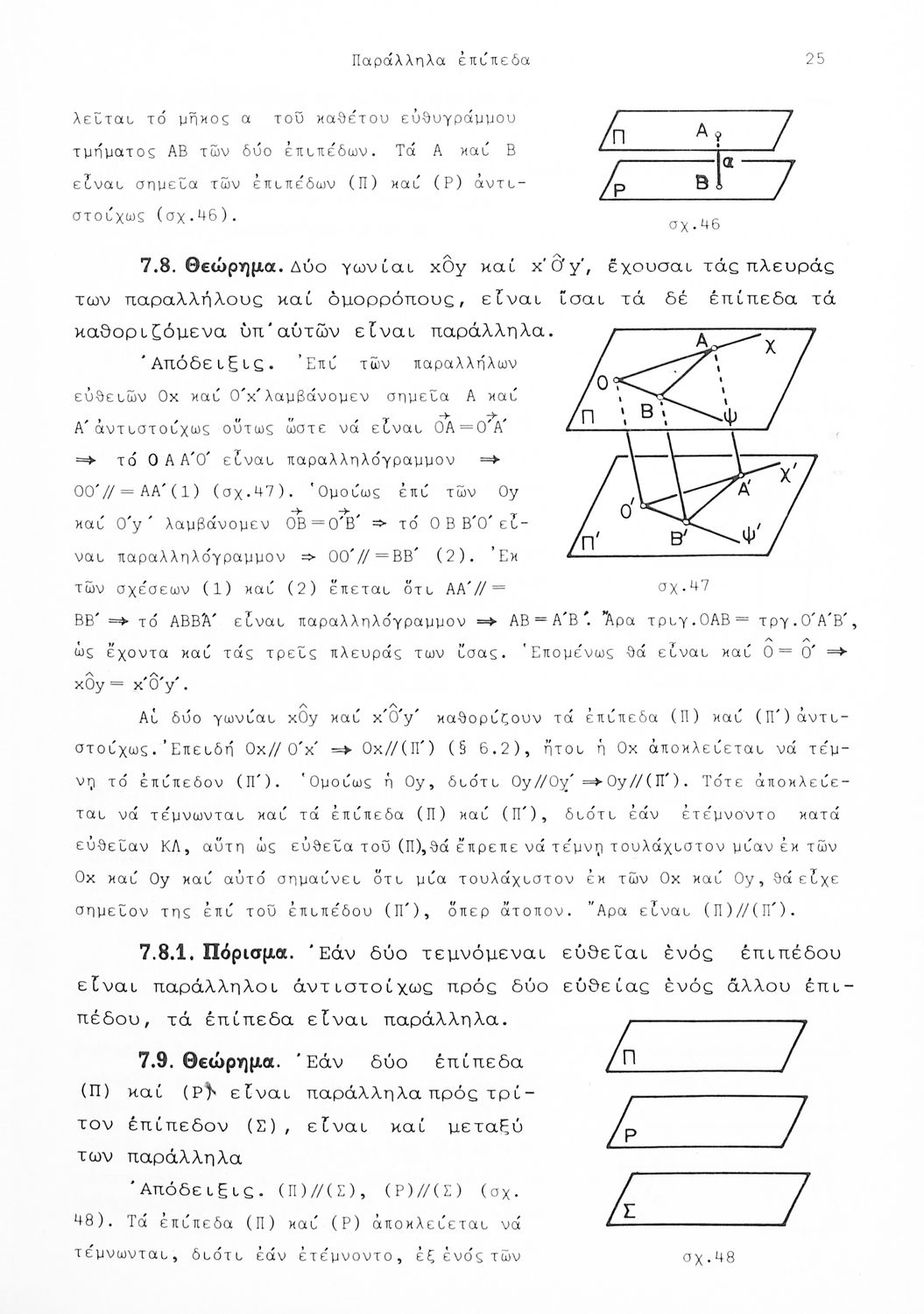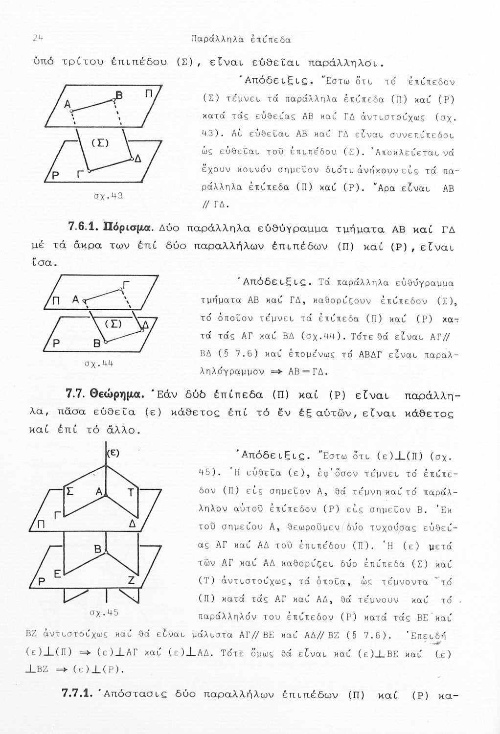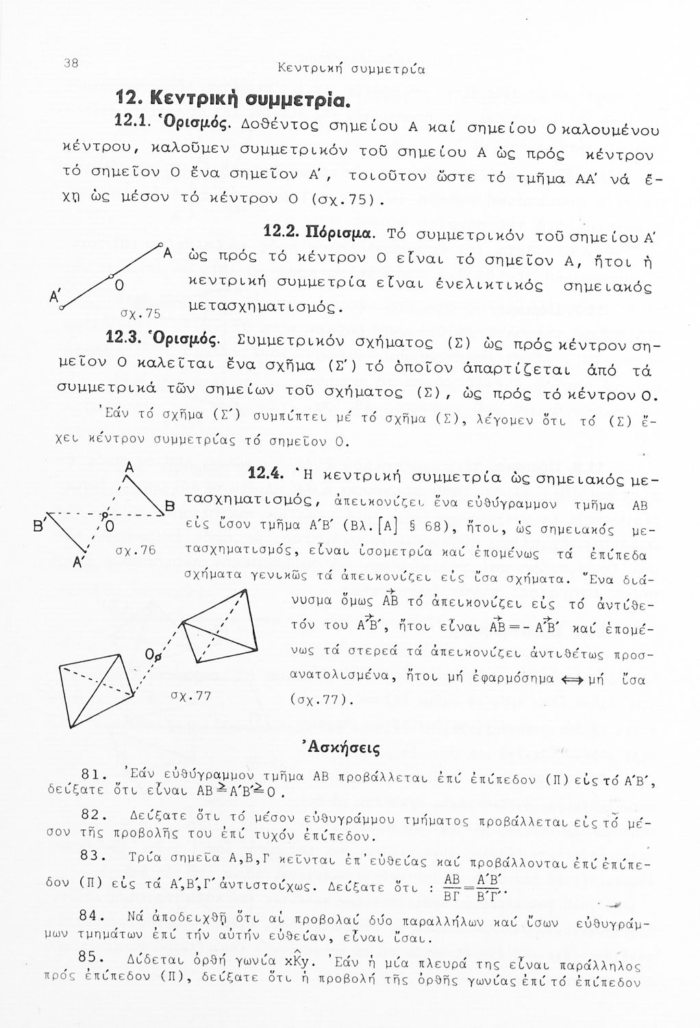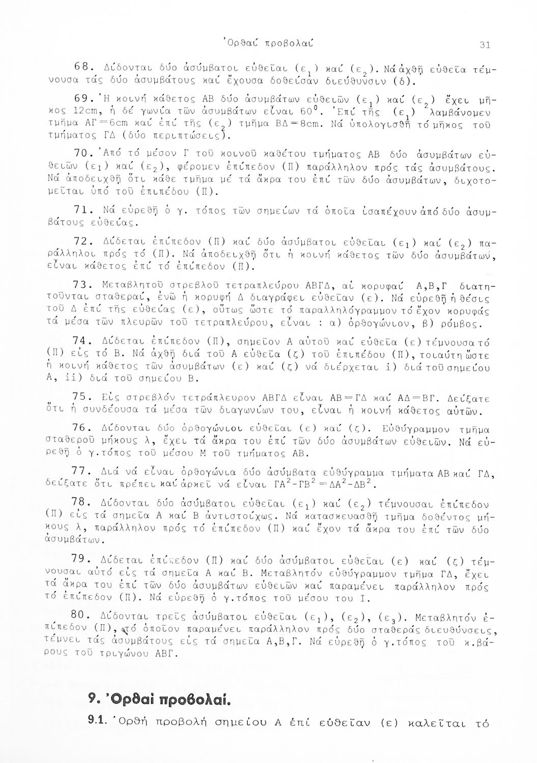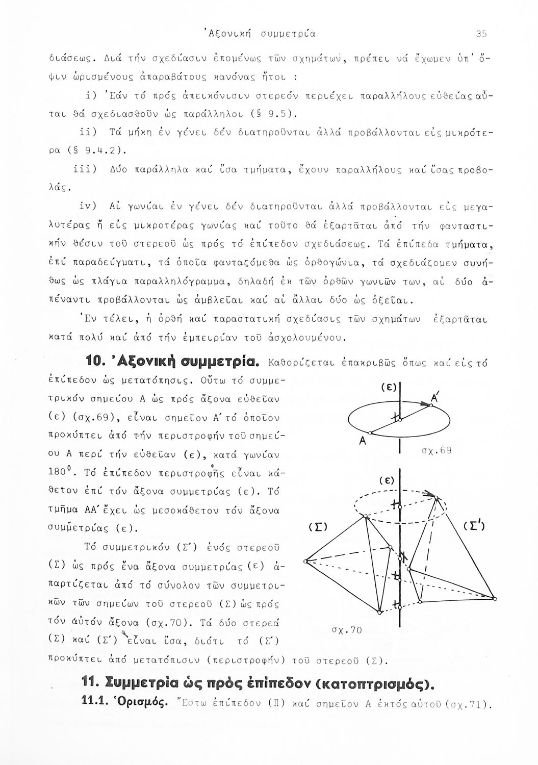 Σχολικό εγχειρίδιο Γεωμετρίας που είναι χωρισμένο σε αξιώματα, θεωρήματα και πορίσματα και εστιάζει στην Επίπεδη Γεωμετρία και τη Στερεομετρία.