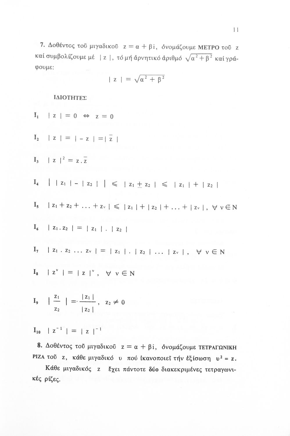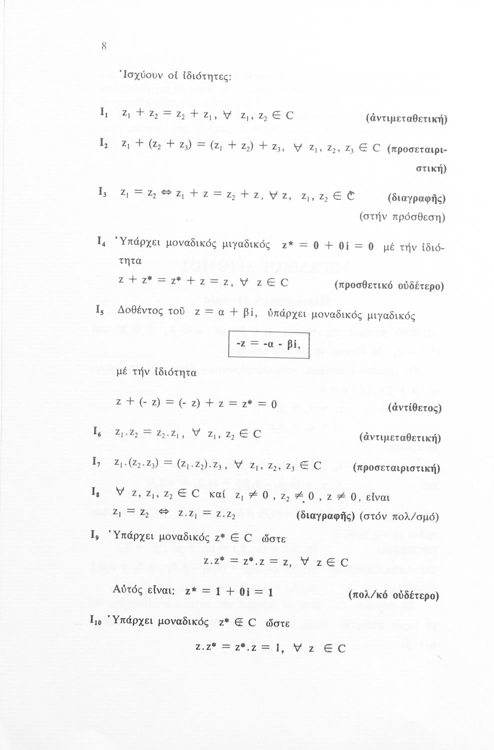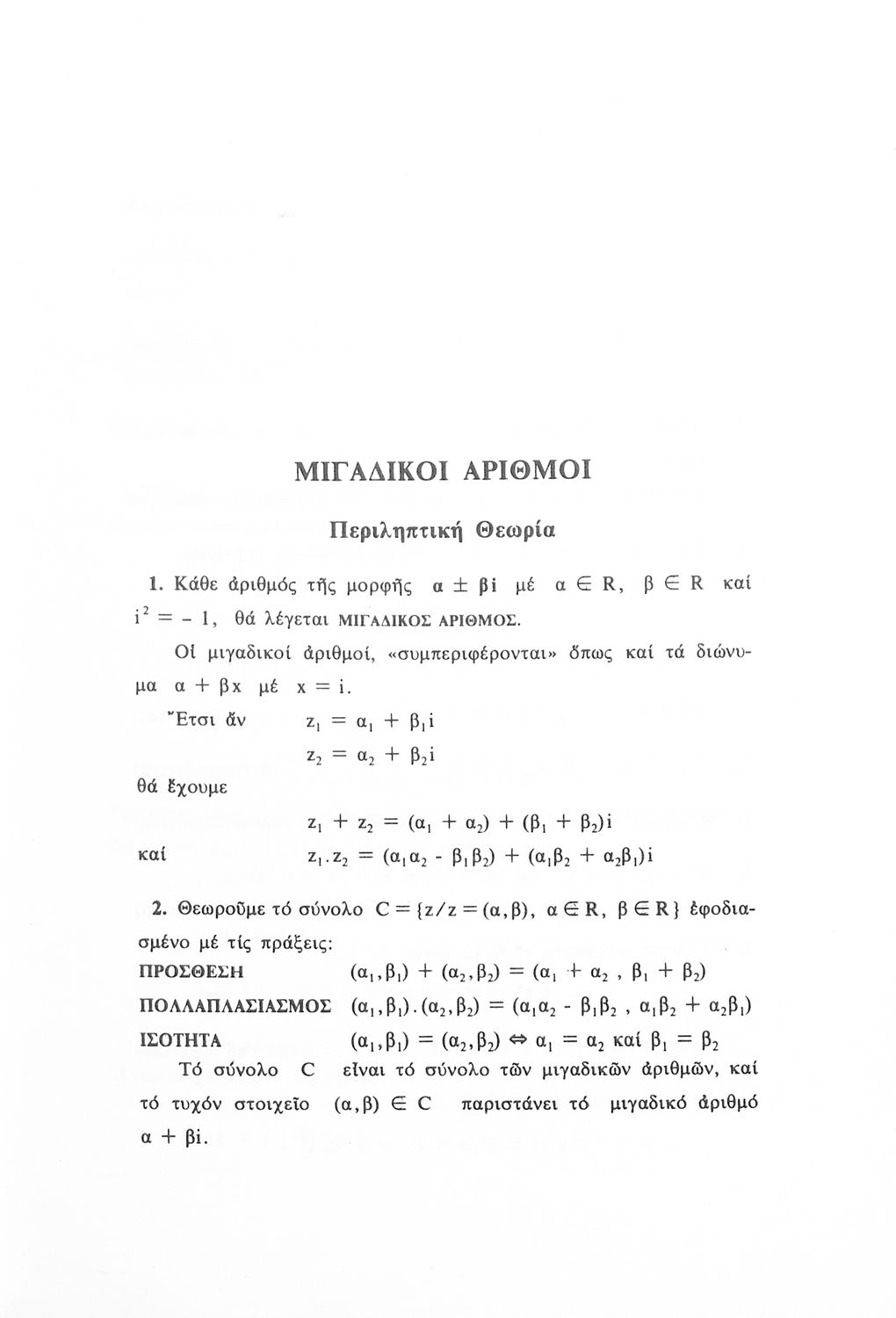 Παιδαγωγικό/ Μαθητικό βοήθημα Μαθηματικών Β΄ Λυκείου που εστιάζει στις ιδιότητες των μιγαδικών αριθμών.