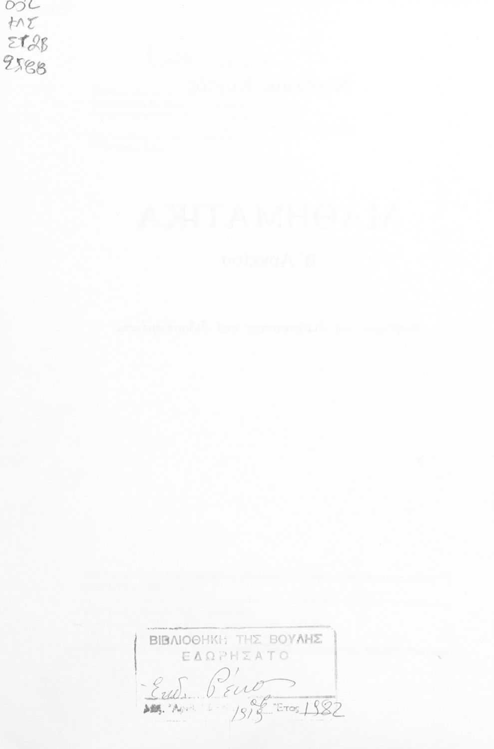 Σχολικό εγχειρίδιο Τριγωνομετρίας για την Β΄ Λυκείου χωρισμένο σε προβλήματα, εφαρμογές και ασκήσεις. Το εγχειρίδιο μεταγλωττίστηκε στη δημοτική από τους Βασίλειο Θεοδωρακόπουλο, Απόστολο Ζορμπά και τον ...