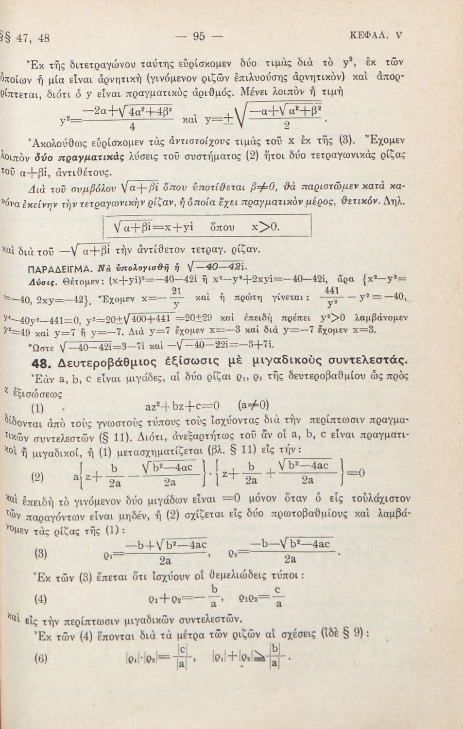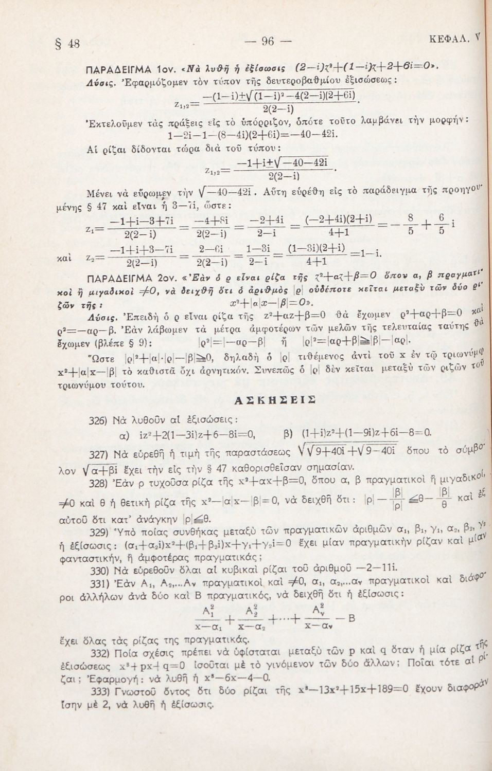 Μαθήματα Άλγεβρας δια τους υποψηφίους των Ανωτάτων Σχολών και τους μαθητάς των πρακτικών Λυκείων