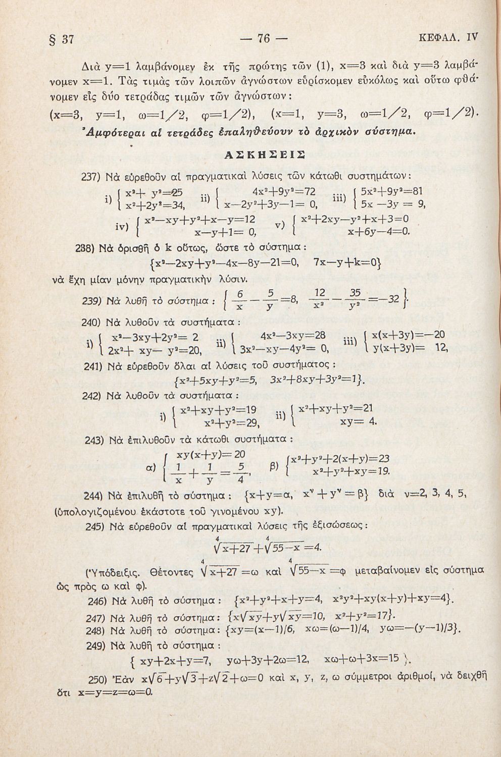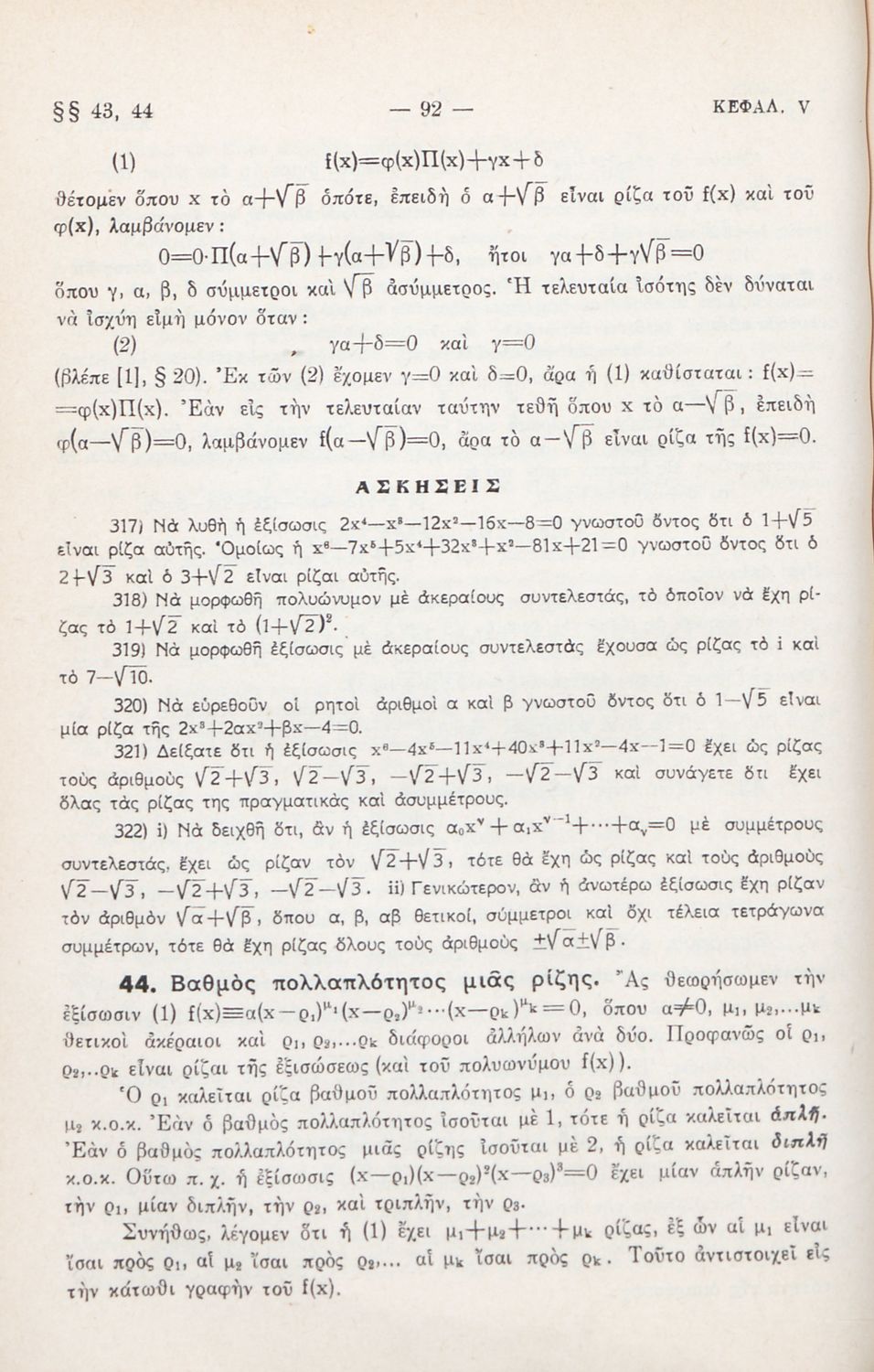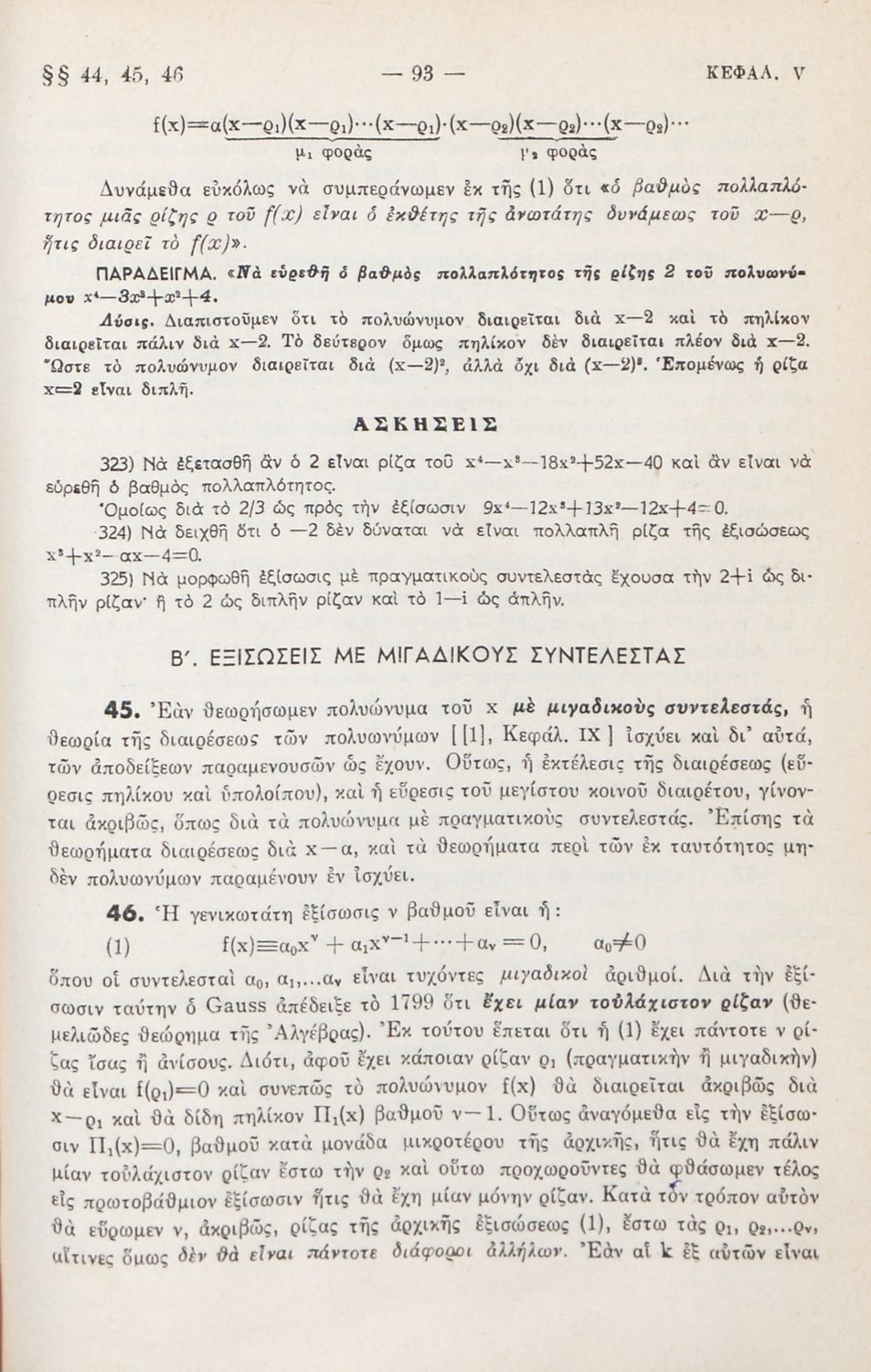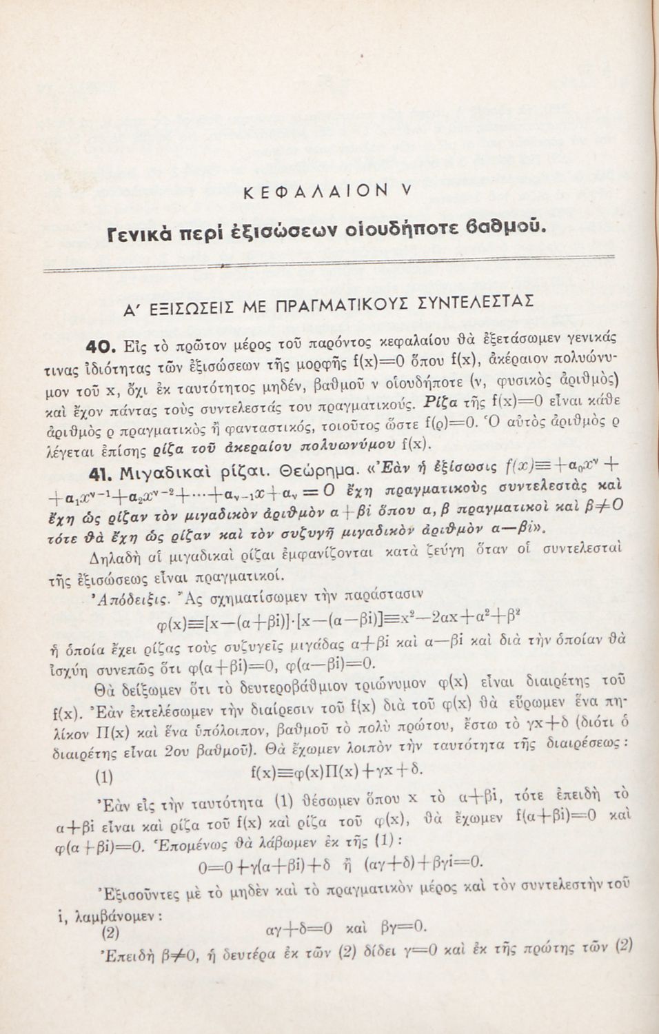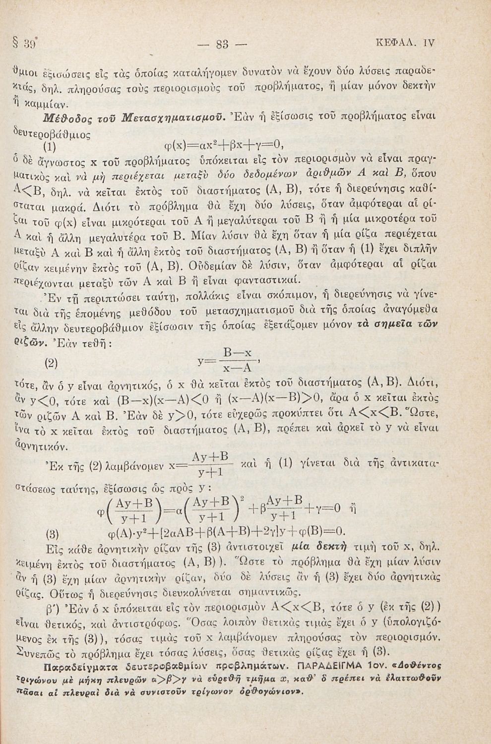 Μαθήματα Άλγεβρας δια τους υποψηφίους των Ανωτάτων Σχολών και τους μαθητάς των πρακτικών Λυκείων