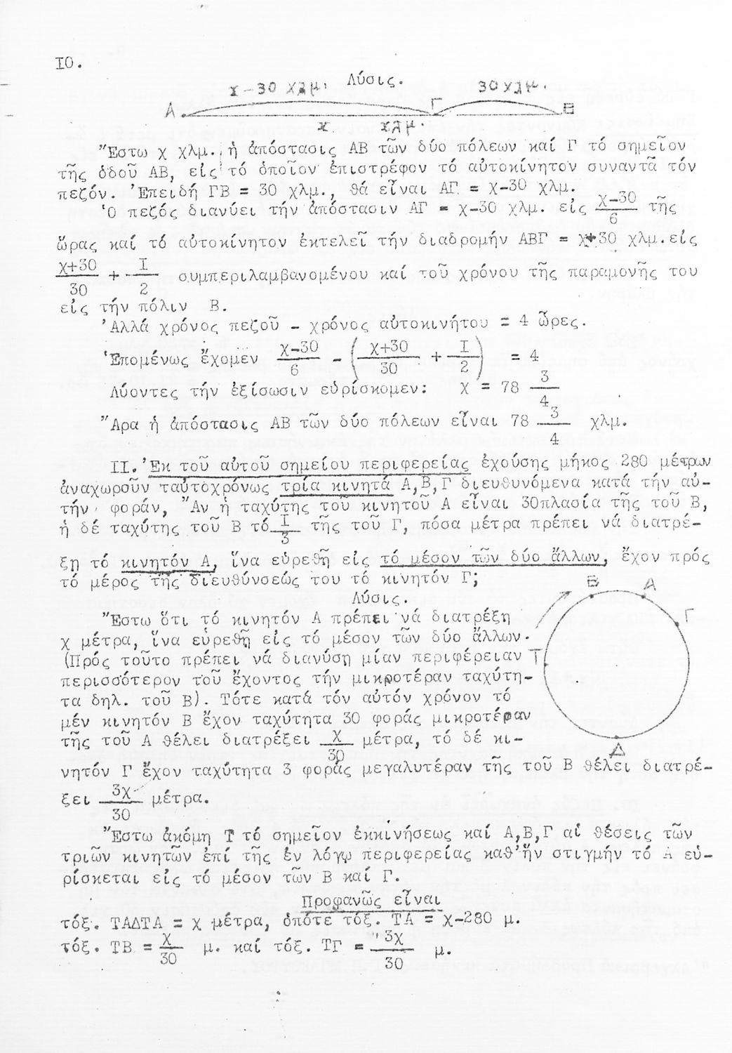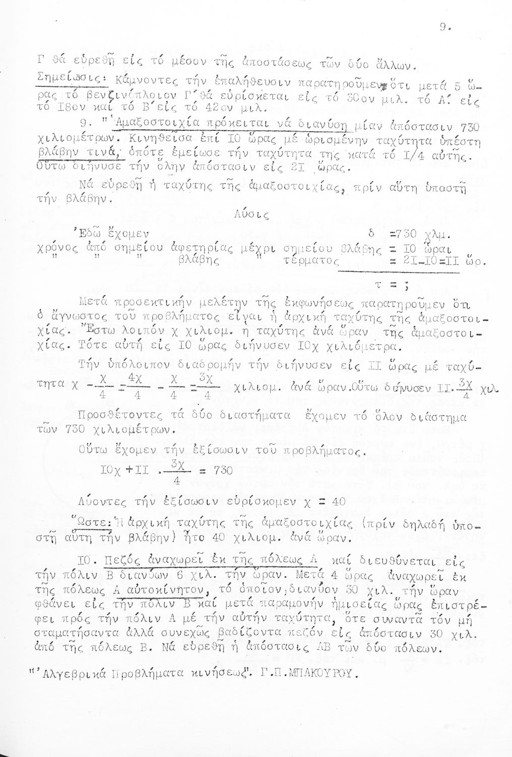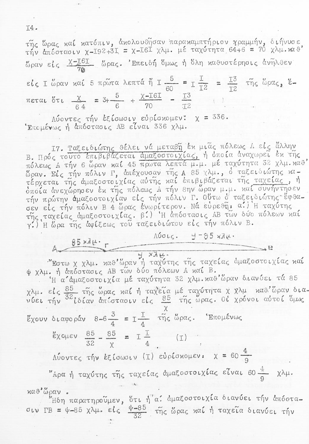 Μαθητικό βοήθημα Μαθηματικών για τους υποψηφίους των ανωτάτων σχολών και τους μαθητές της Μέσης Εκπαίδευσης που περιλαμβάνει αλγεβρικές λύσεις σε προβλήματα υπολογισμού ταχύτητας και κίνησης.