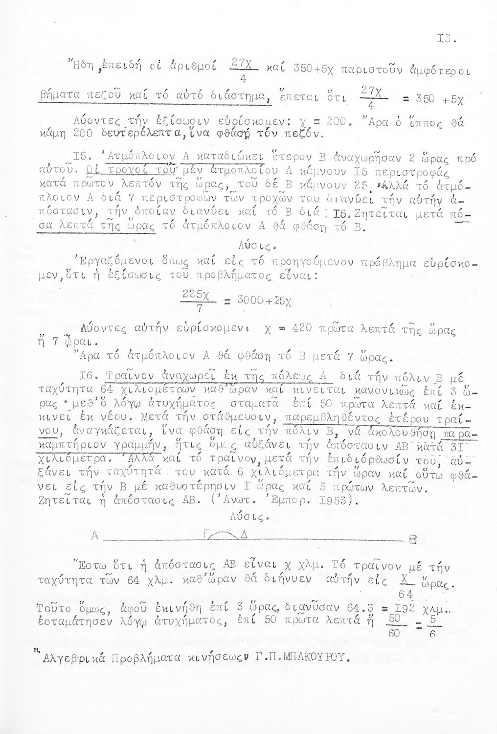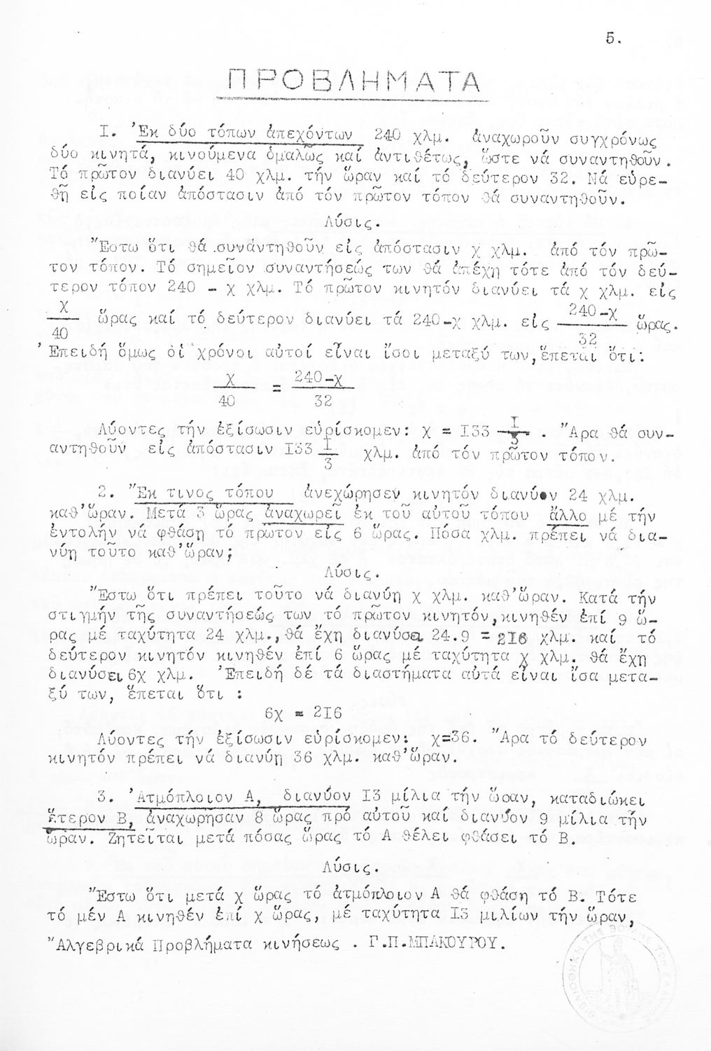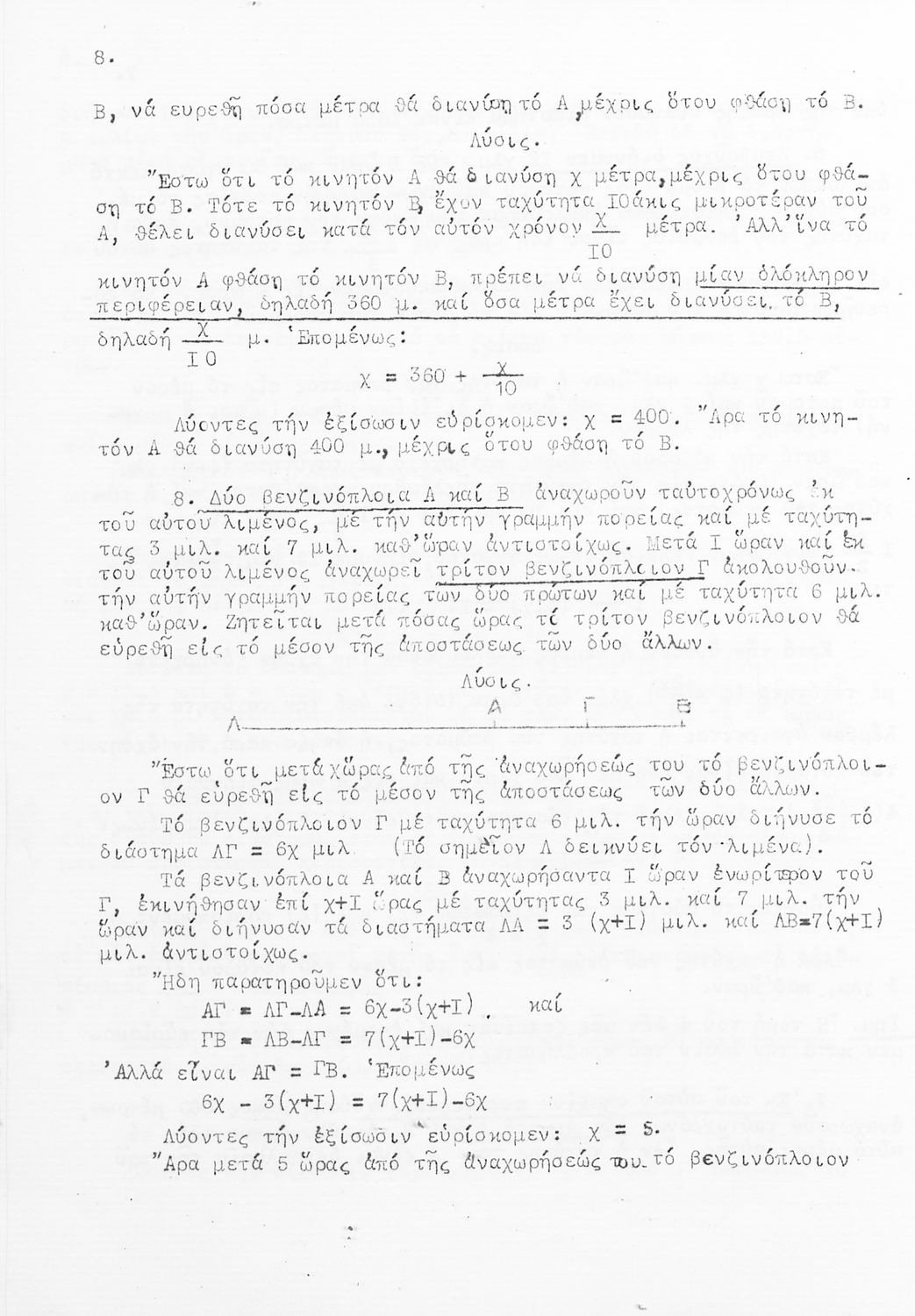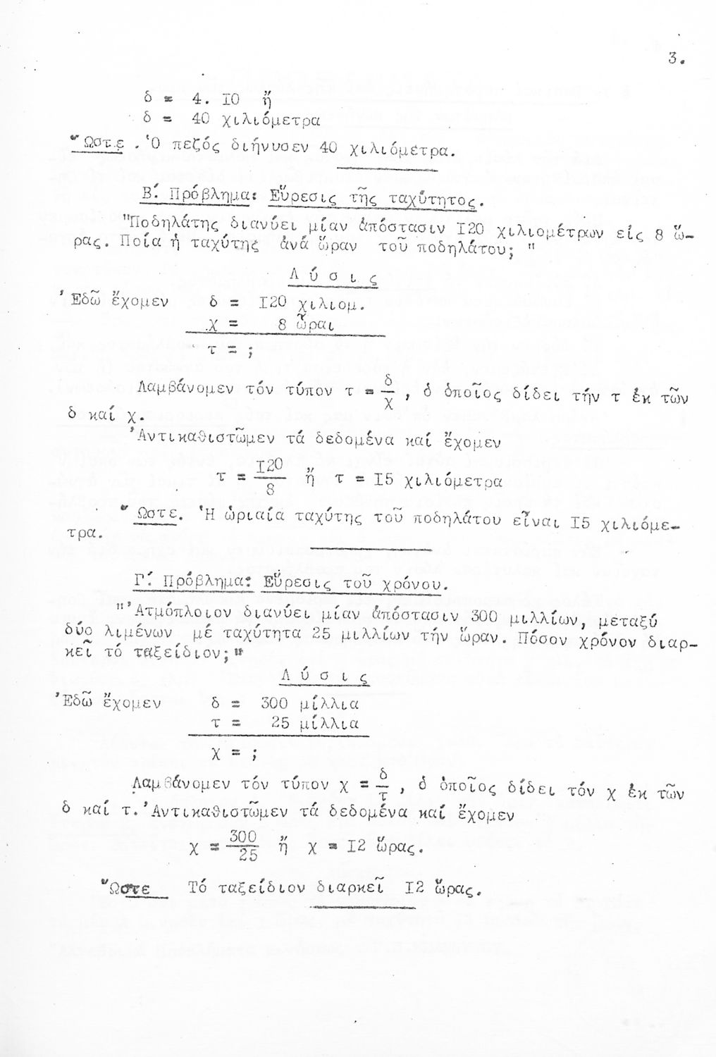 Μαθητικό βοήθημα Μαθηματικών για τους υποψηφίους των ανωτάτων σχολών και τους μαθητές της Μέσης Εκπαίδευσης που περιλαμβάνει αλγεβρικές λύσεις σε προβλήματα υπολογισμού ταχύτητας και κίνησης.