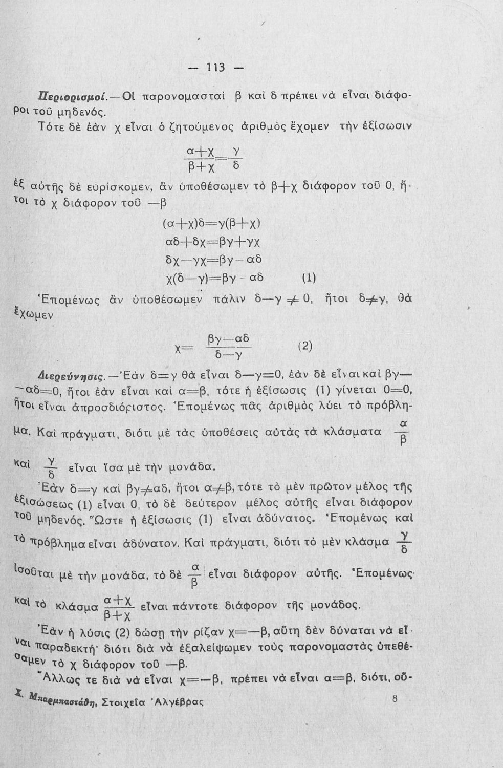 Στοιχεία Άλγεβρας προς χρήσιν των μαθητών των Γυμνασίων, των πρακτικών λυκείων και των υποψηφίων δια τας ανωτέρας του κράτους σχολάς