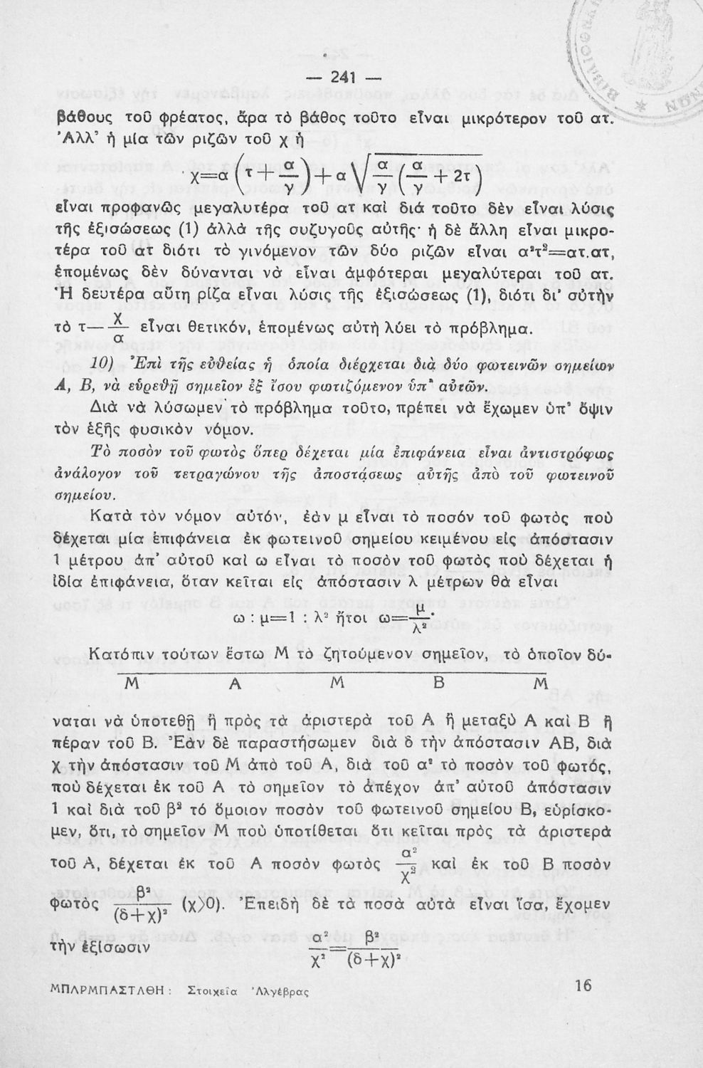 Στοιχεία Άλγεβρας προς χρήσιν των μαθητών των Γυμνασίων, των πρακτικών λυκείων και των υποψηφίων δια τας ανωτέρας του κράτους σχολάς