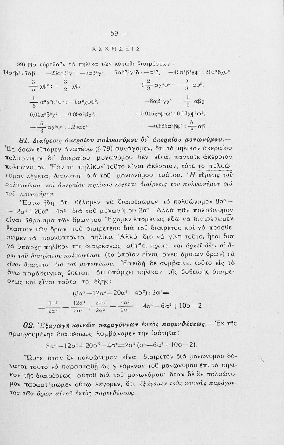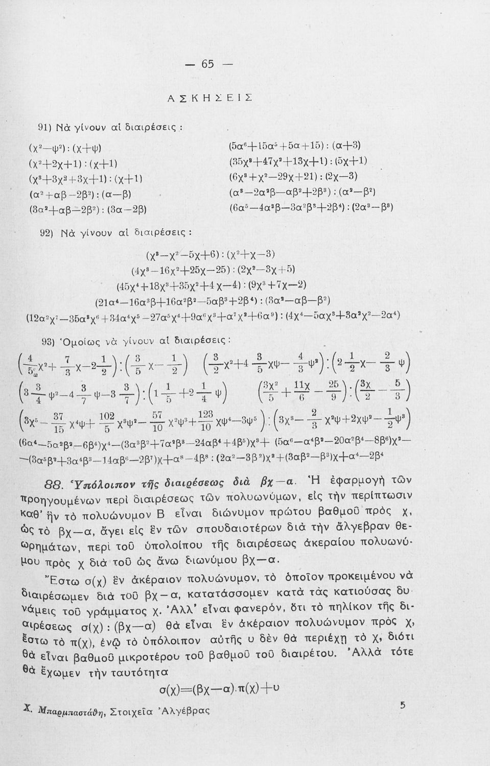 Στοιχεία Άλγεβρας προς χρήσιν των μαθητών των Γυμνασίων, των πρακτικών λυκείων και των υποψηφίων δια τας ανωτέρας του κράτους σχολάς