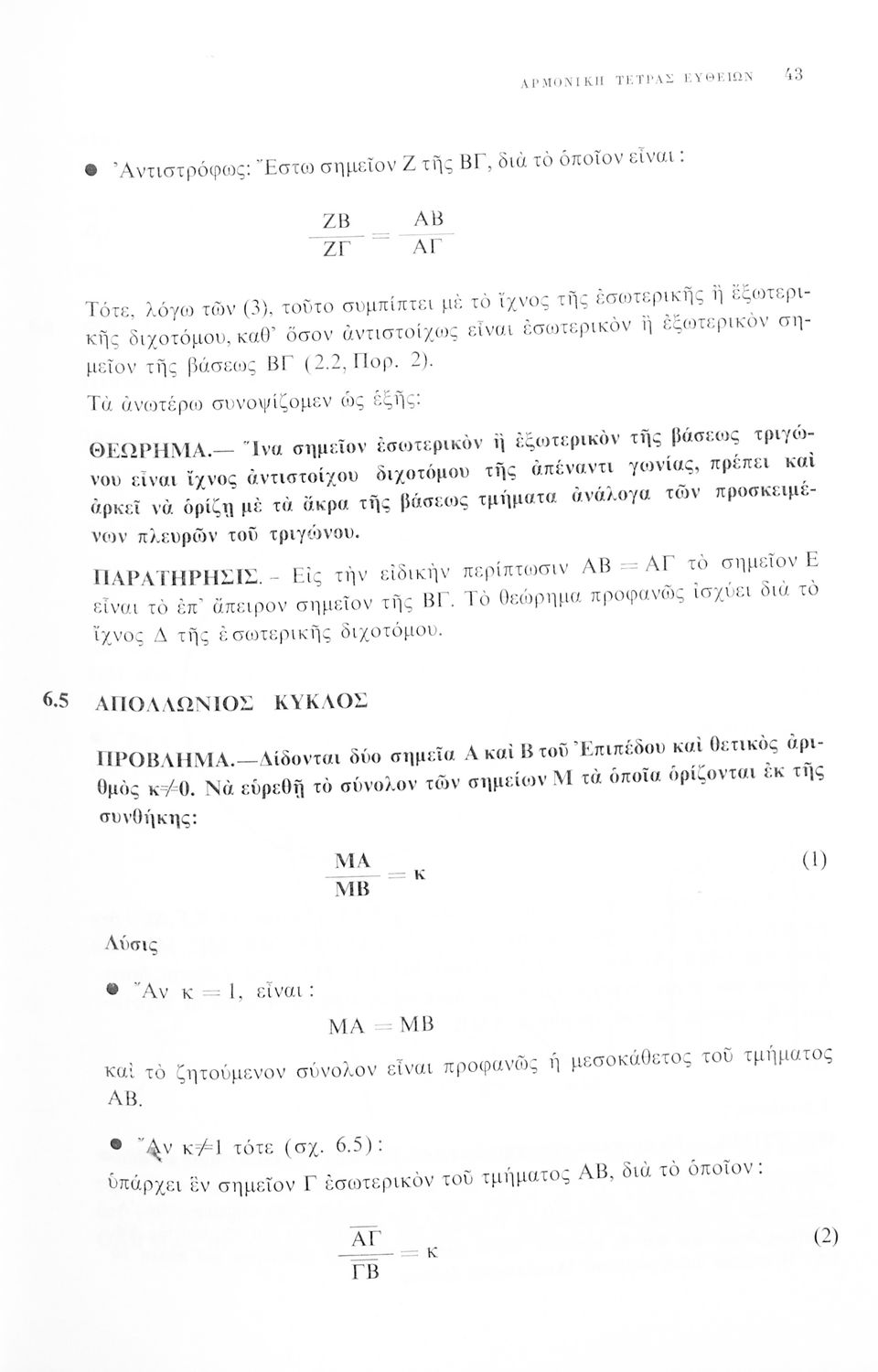 Συμπλήρωμα Γεωμετρίας δια τους μαθητάς της έκτης Γυμνασίου και τους υποψηφίους σχολών θετικών επιστημών
