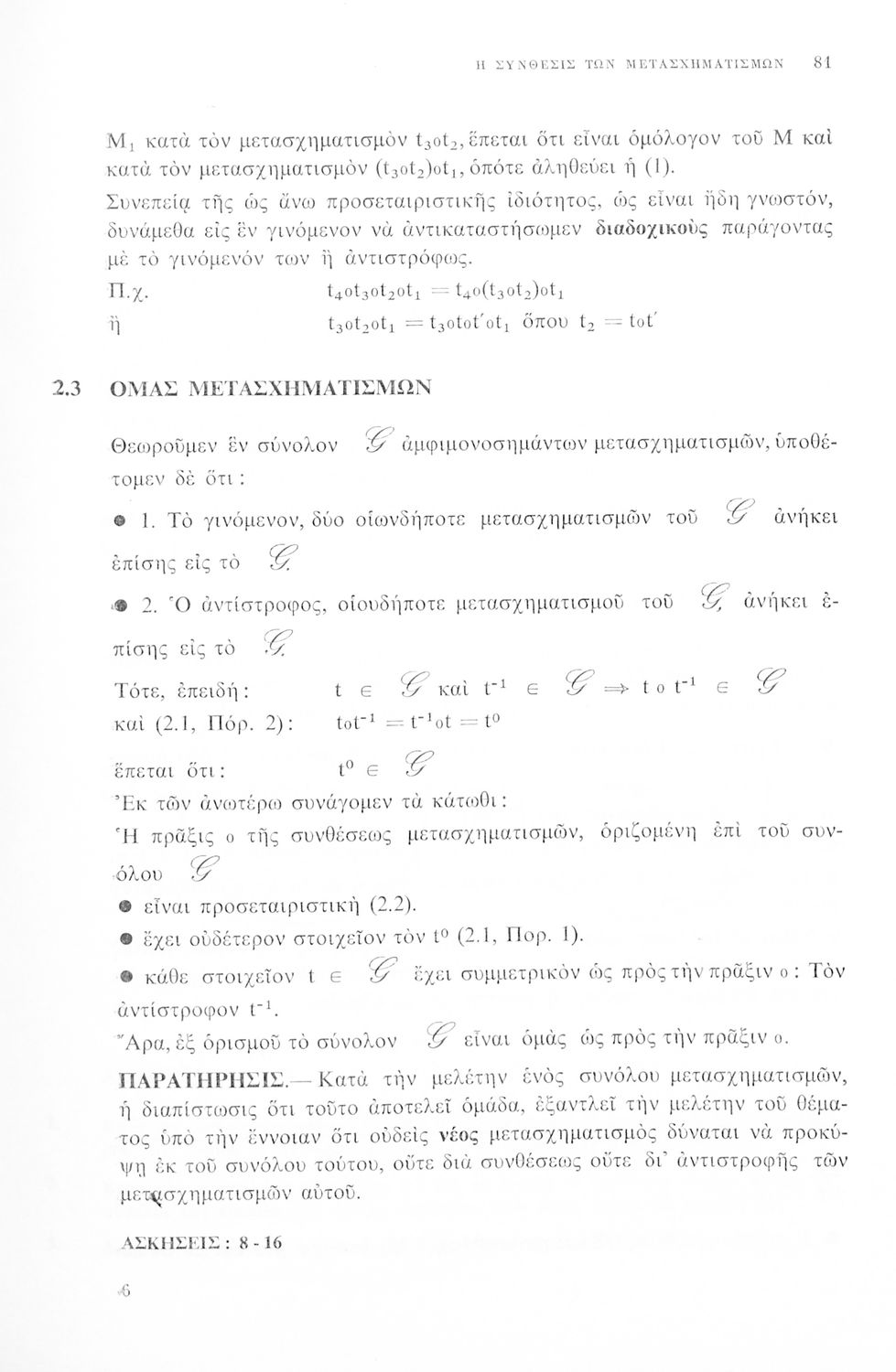 Συμπλήρωμα Γεωμετρίας δια τους μαθητάς της έκτης Γυμνασίου και τους υποψηφίους σχολών θετικών επιστημών