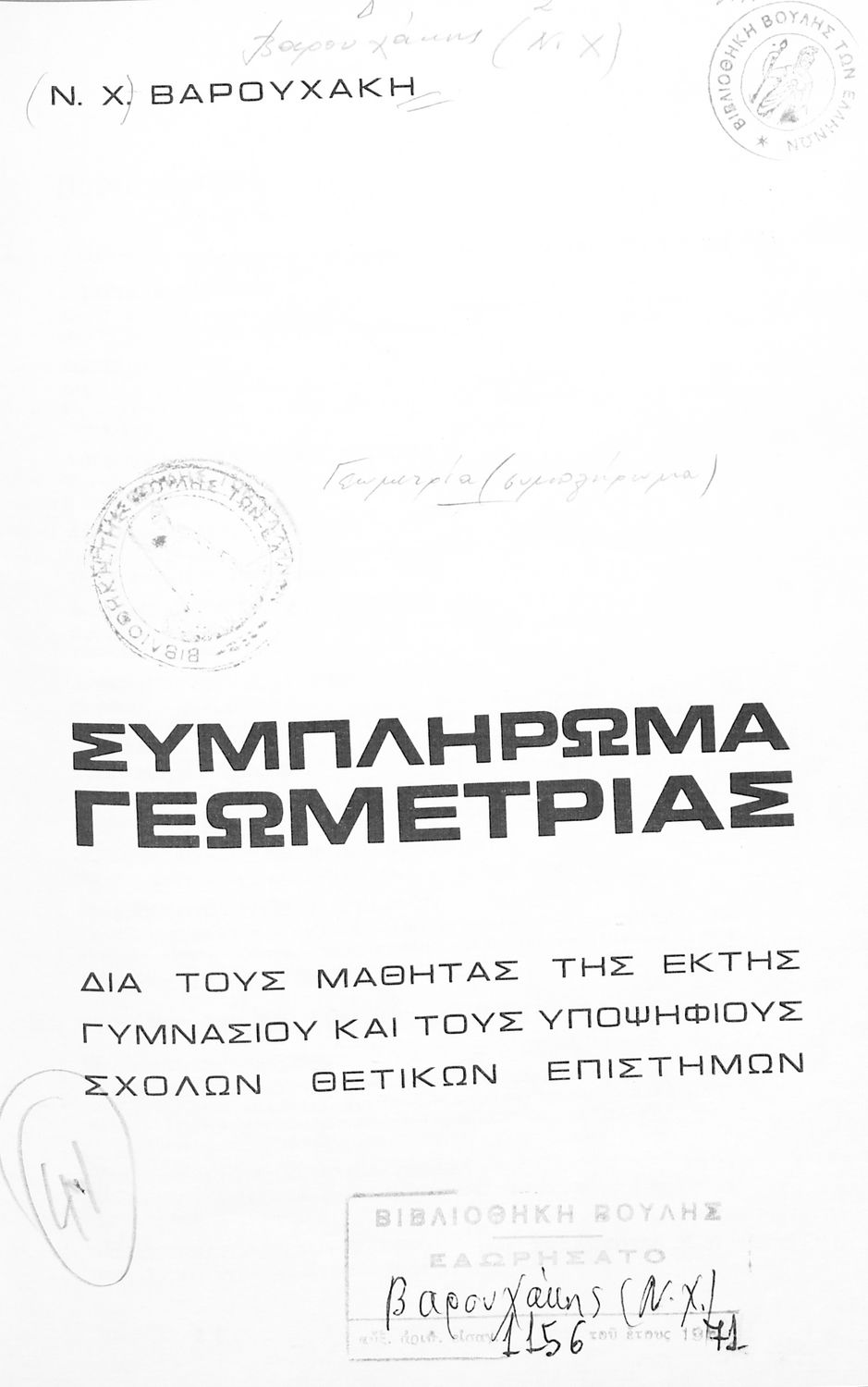 Τίτλος: Συμπλήρωμα Γεωμετρίας δια τους μαθητάς της έκτης Γυμνασίου και τους υποψηφίους σχολών θετικών επιστημών