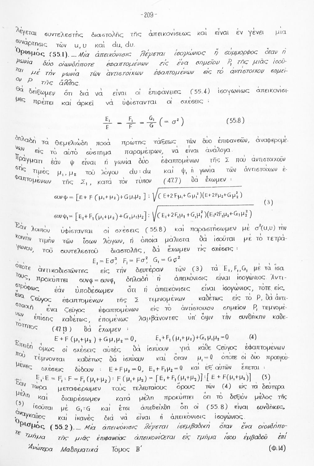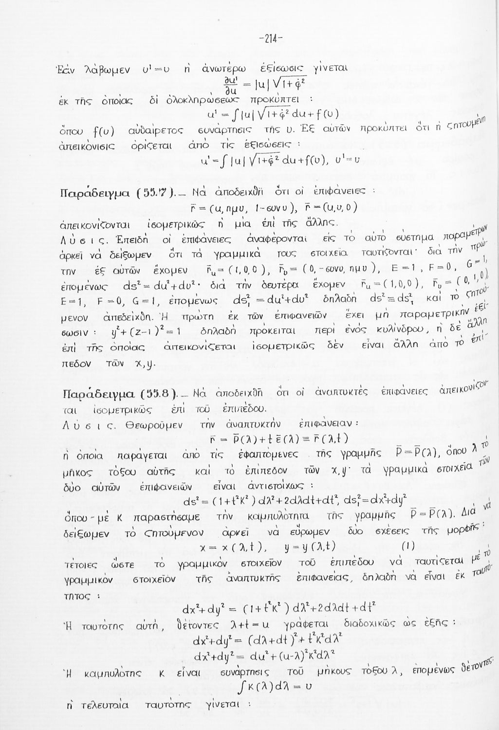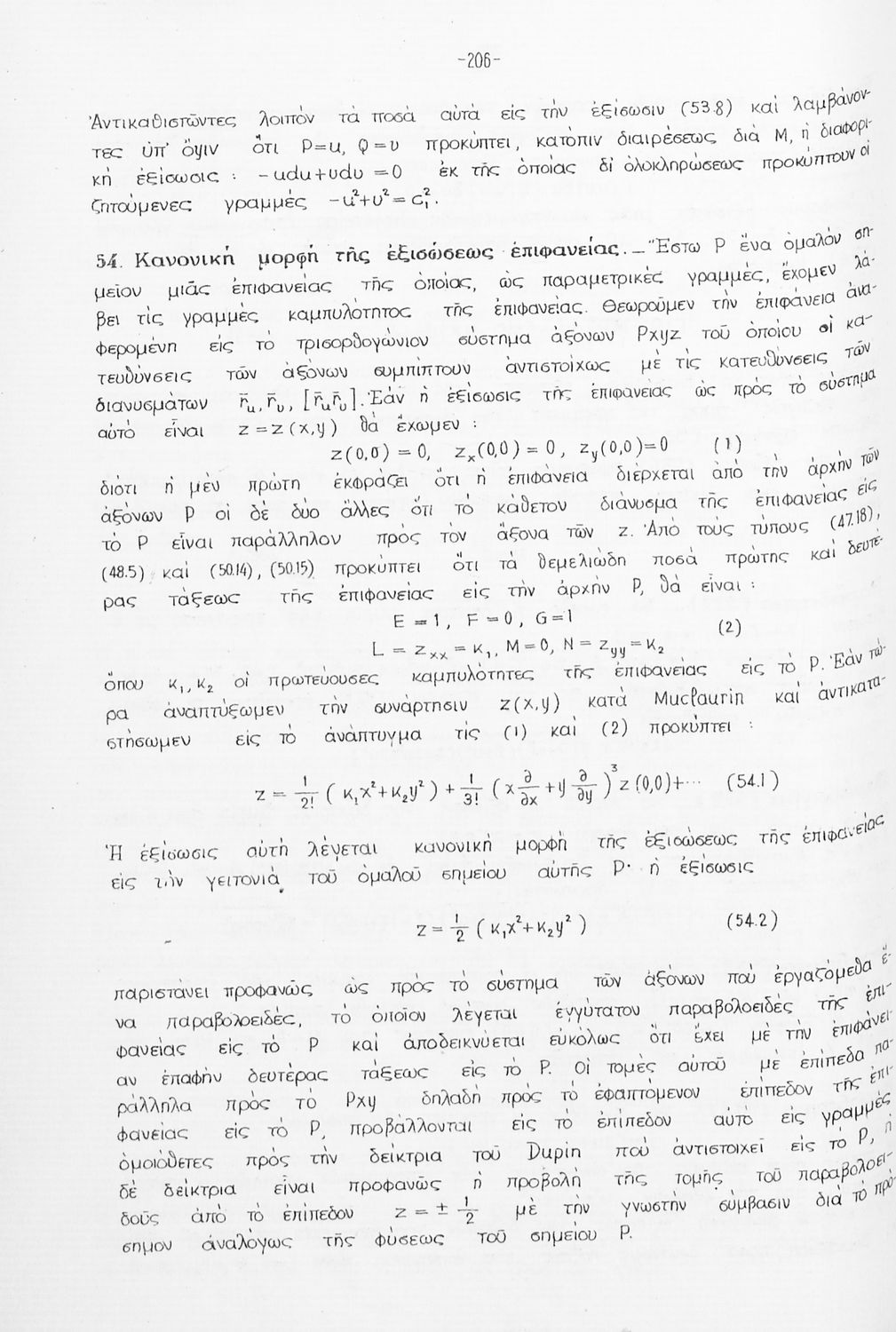 Σχολικό εγχειρίδιο Μαθηματικών για τους σπουδαστές των Πολυτεχνείων, Πανεπιστημίων και Ανωτάτων Σχολών που περιλαμβάνει στοιχεία διαφορικού λογισμού συναρτήσεων πολλών μεταβλητών, διαφορικής γεωμετρίας, και ολοκληρωτικού λογισμού συναρτήσεων πολλών μεταβλητών.