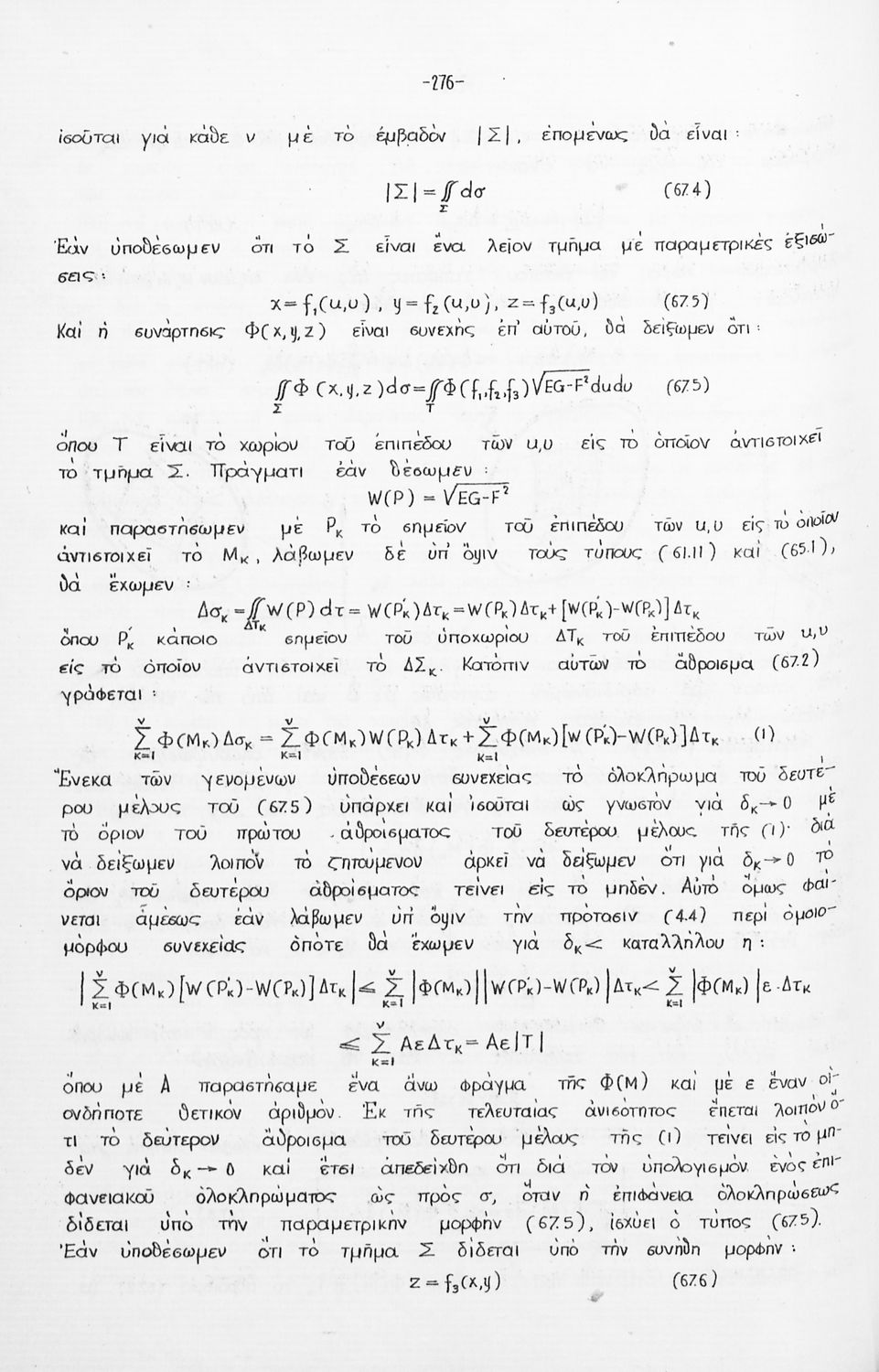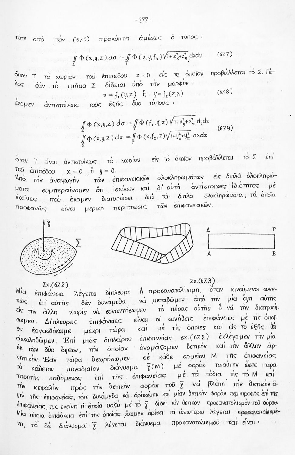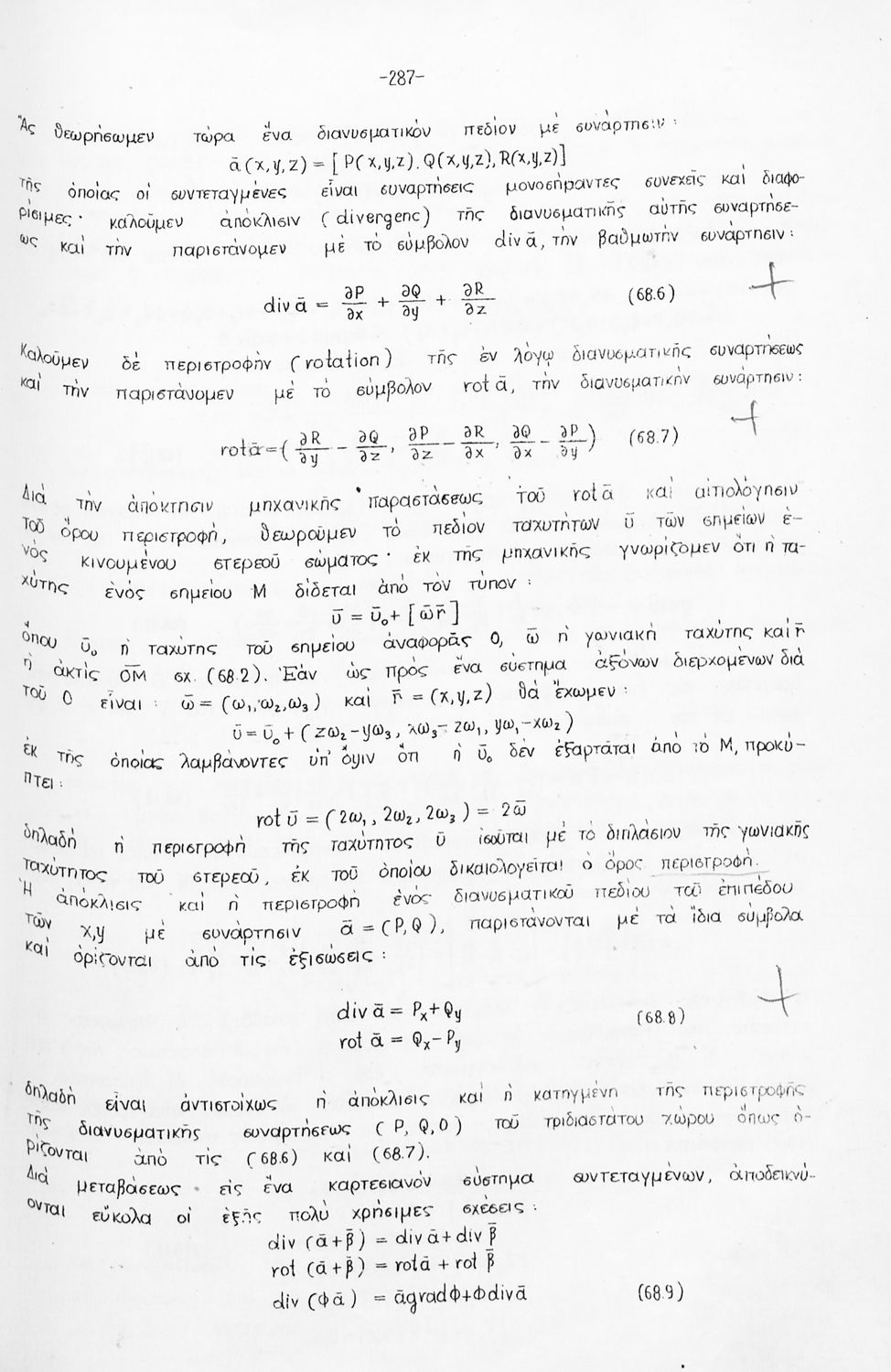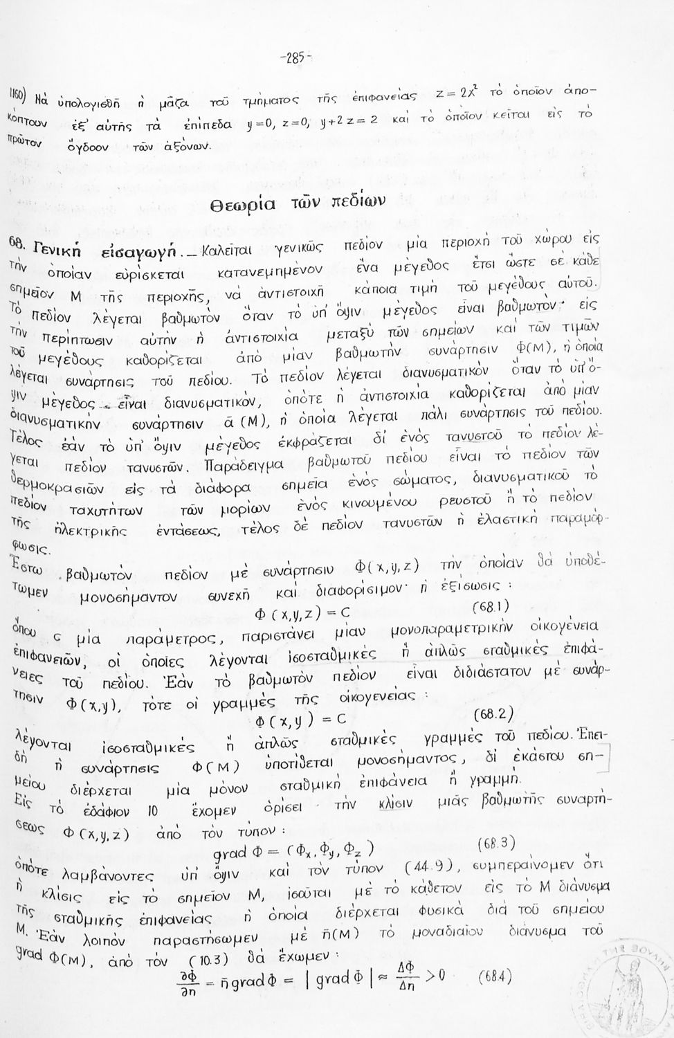Σχολικό εγχειρίδιο Μαθηματικών για τους σπουδαστές των Πολυτεχνείων, Πανεπιστημίων και Ανωτάτων Σχολών που περιλαμβάνει στοιχεία διαφορικού λογισμού συναρτήσεων πολλών μεταβλητών, διαφορικής γεωμετρίας, και ολοκληρωτικού λογισμού συναρτήσεων πολλών μεταβλητών.