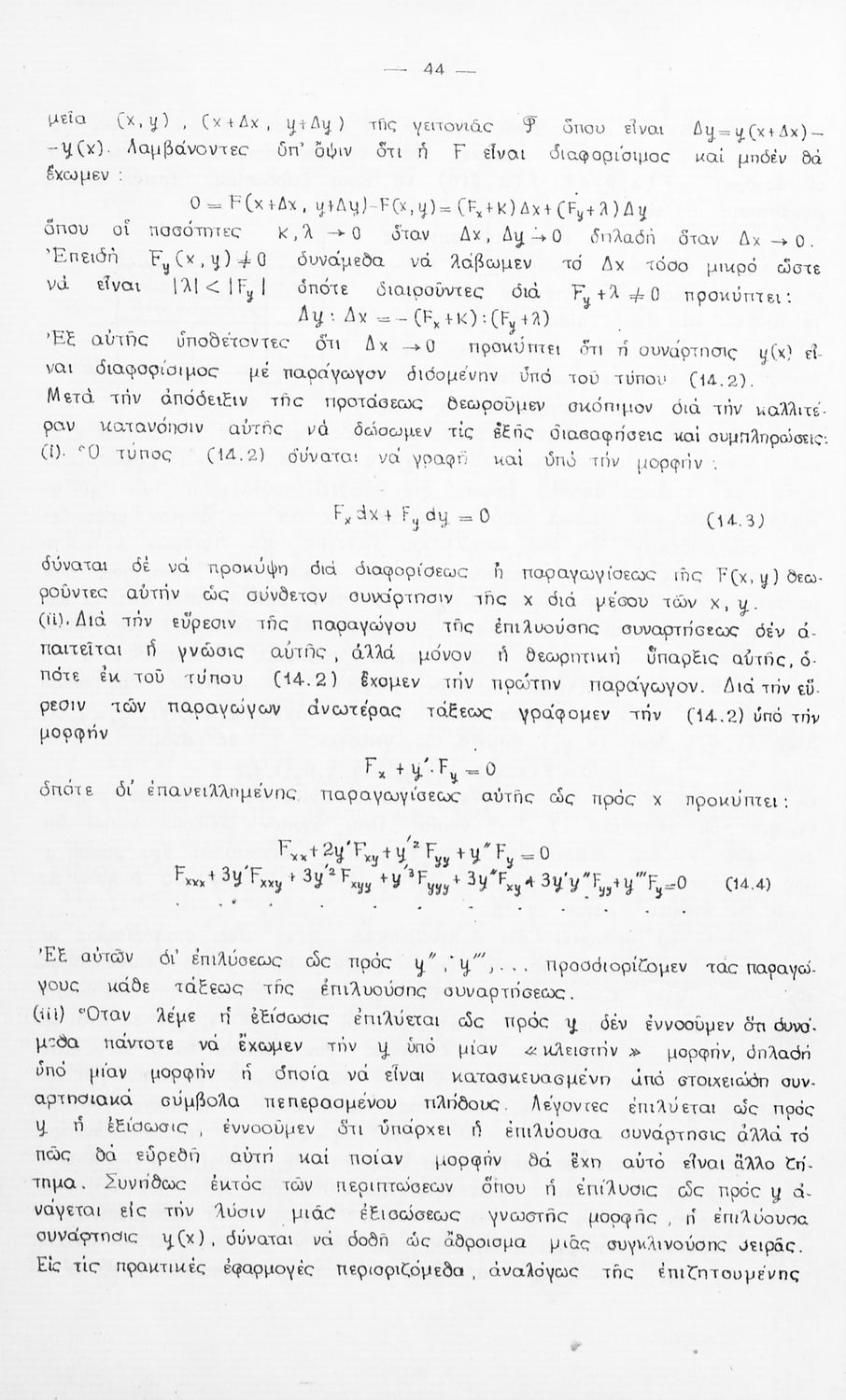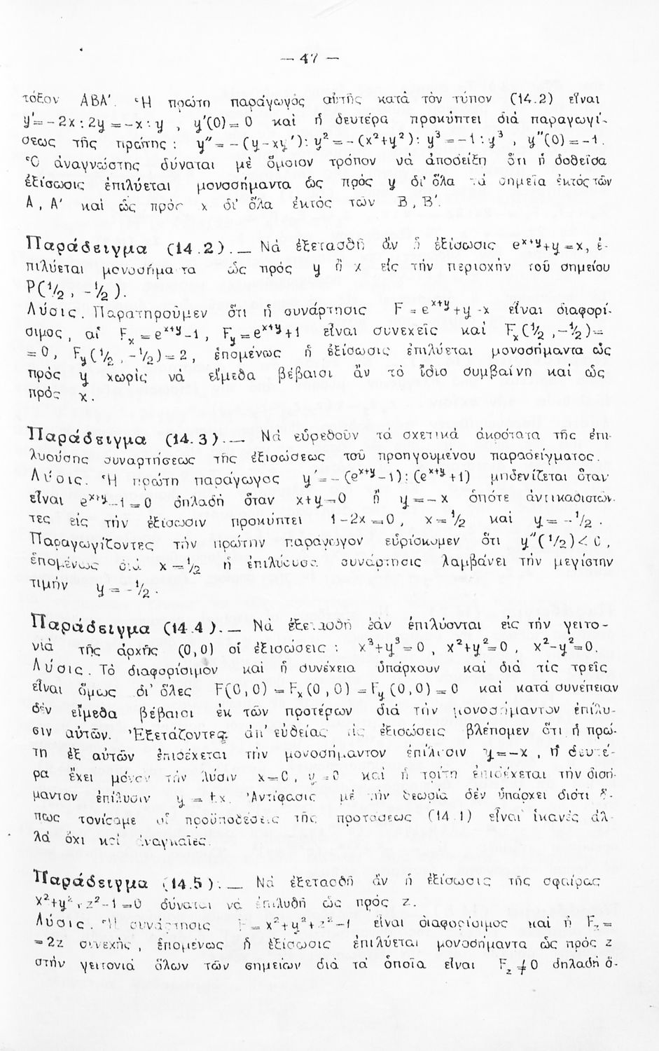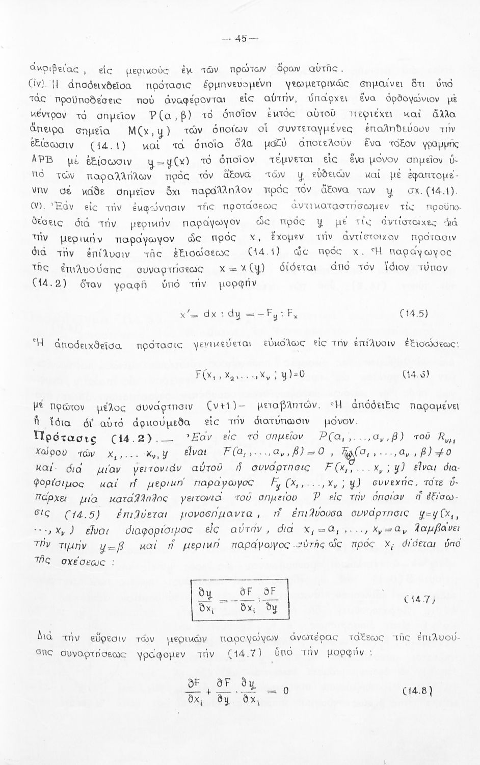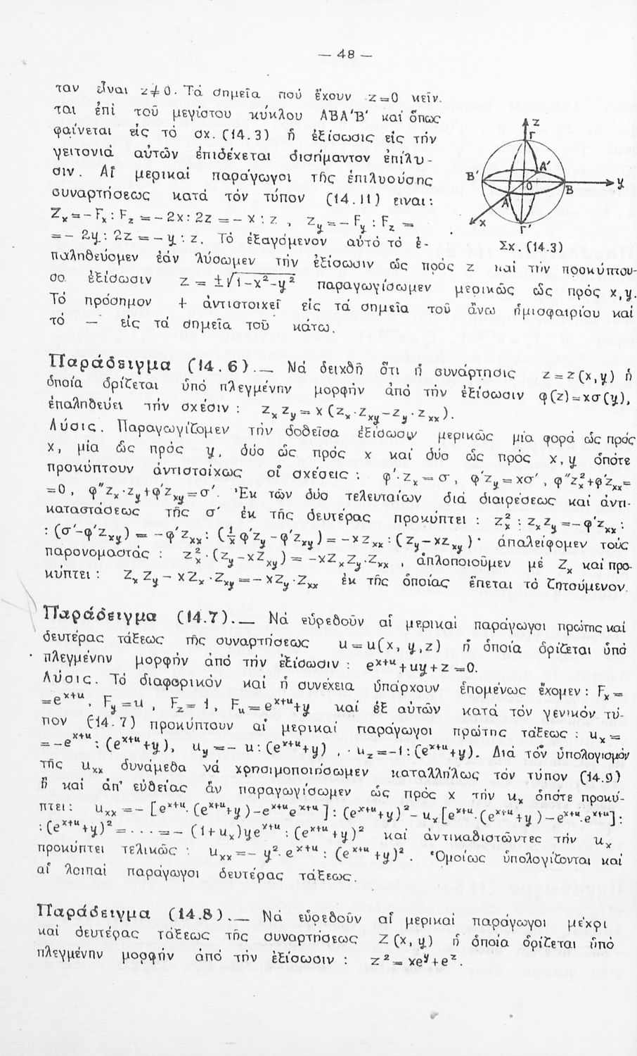 Σχολικό εγχειρίδιο Μαθηματικών για τους σπουδαστές των Πολυτεχνείων, Πανεπιστημίων και Ανωτάτων Σχολών που περιλαμβάνει στοιχεία διαφορικού λογισμού συναρτήσεων πολλών μεταβλητών, διαφορικής γεωμετρίας, και ολοκληρωτικού λογισμού συναρτήσεων πολλών μεταβλητών.