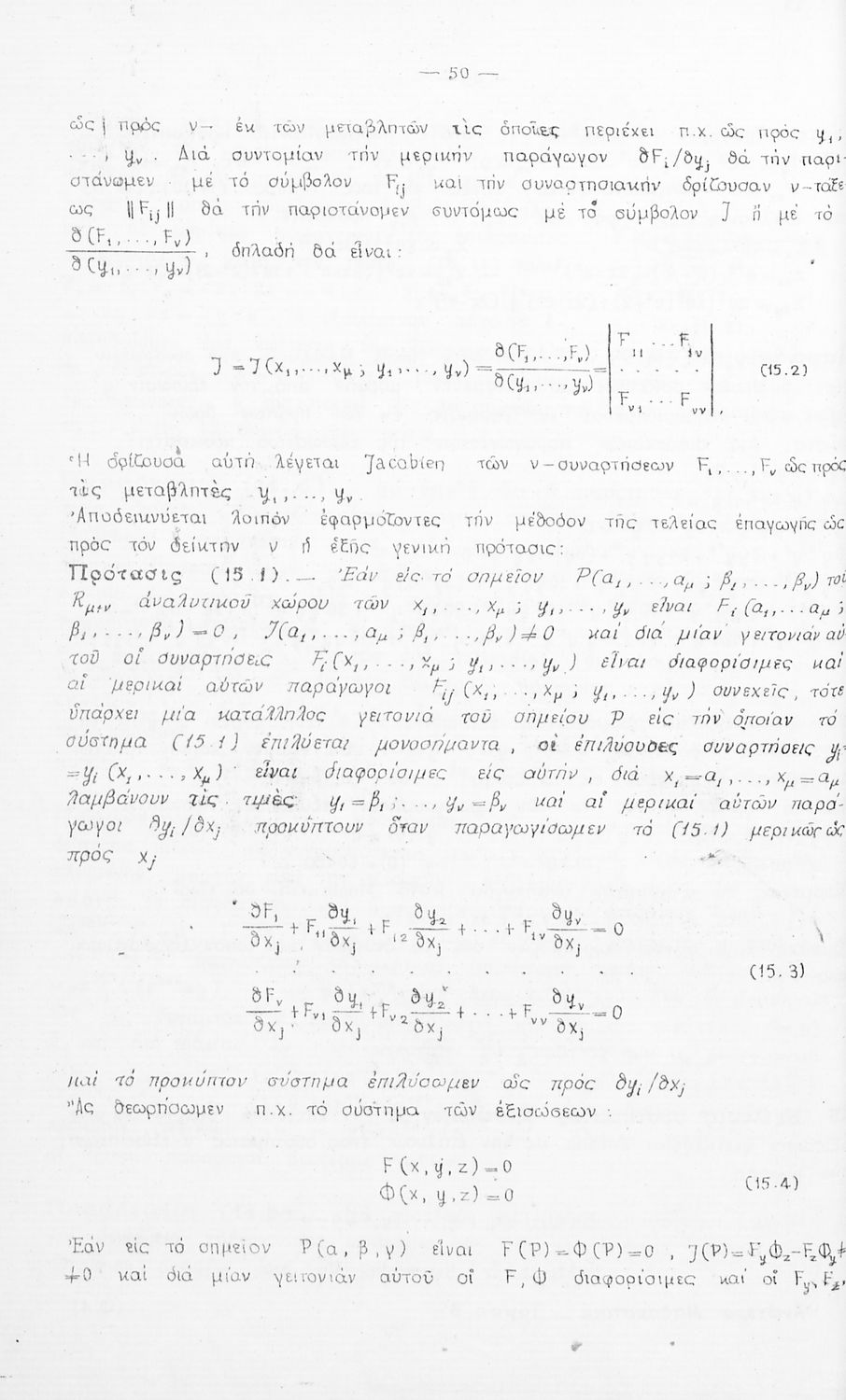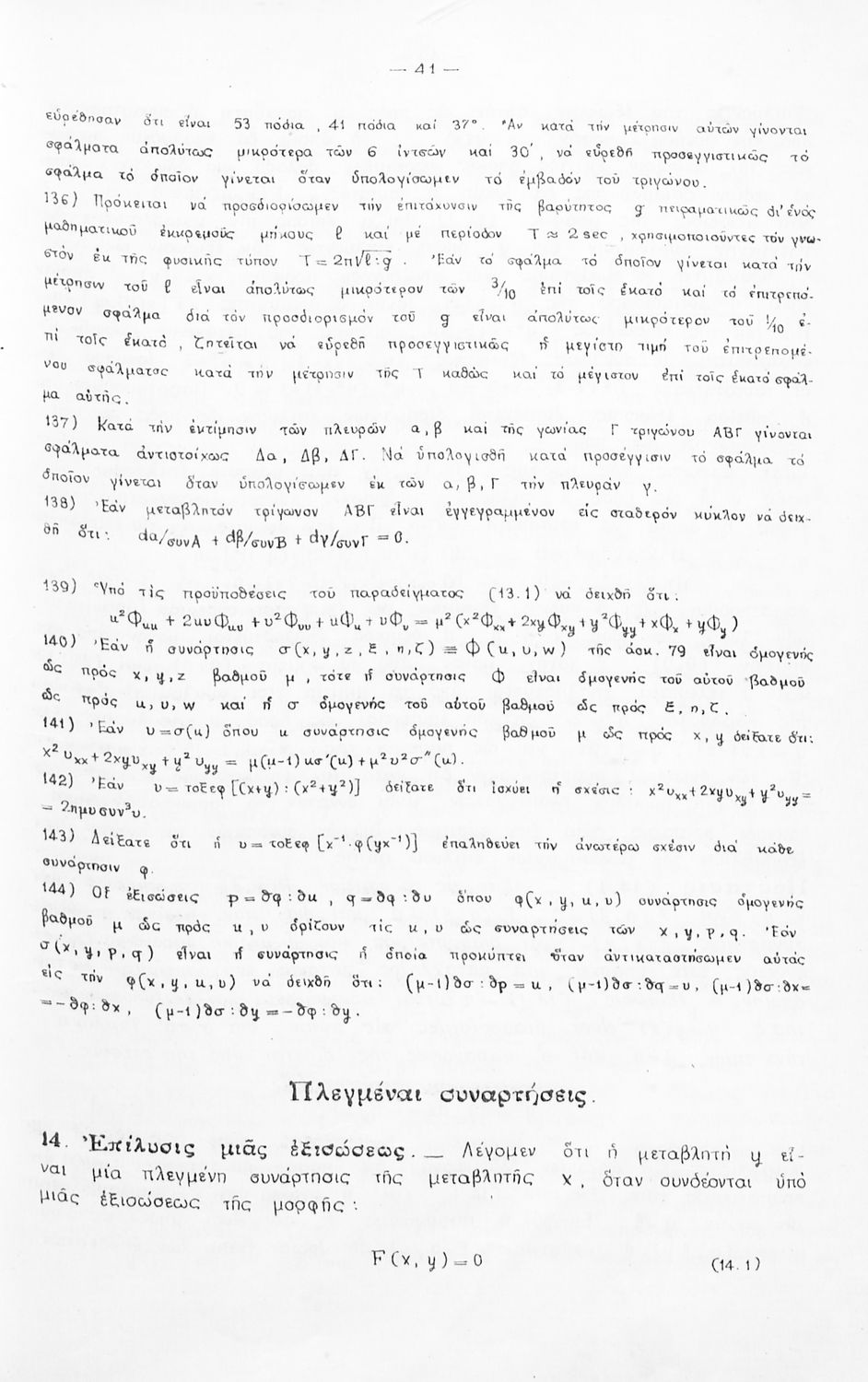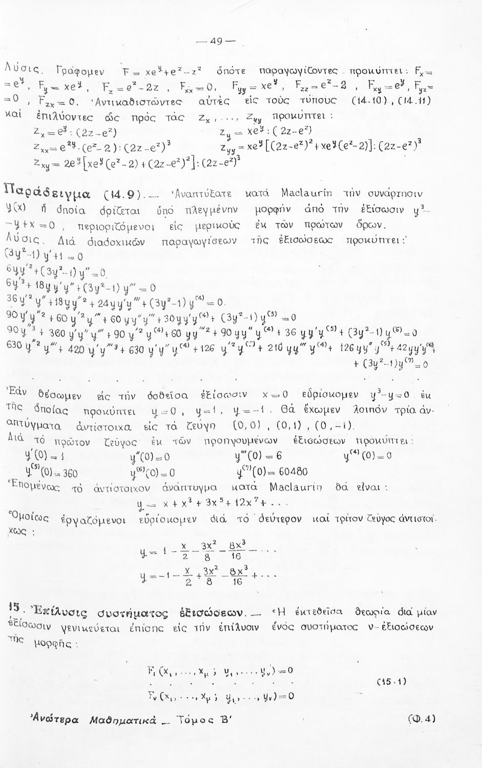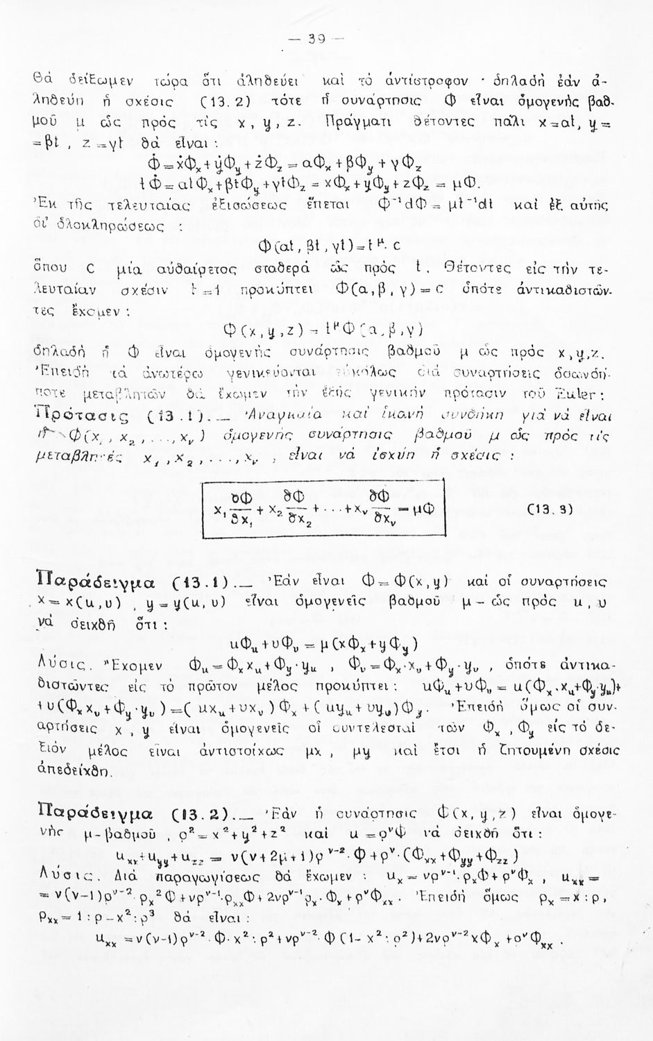 Σχολικό εγχειρίδιο Μαθηματικών για τους σπουδαστές των Πολυτεχνείων, Πανεπιστημίων και Ανωτάτων Σχολών που περιλαμβάνει στοιχεία διαφορικού λογισμού συναρτήσεων πολλών μεταβλητών, διαφορικής γεωμετρίας, και ολοκληρωτικού λογισμού συναρτήσεων πολλών μεταβλητών.